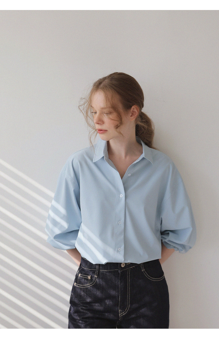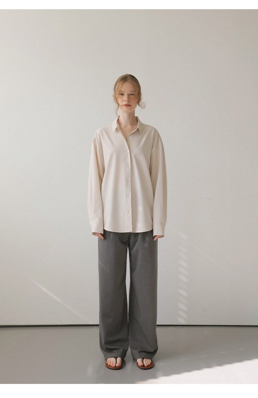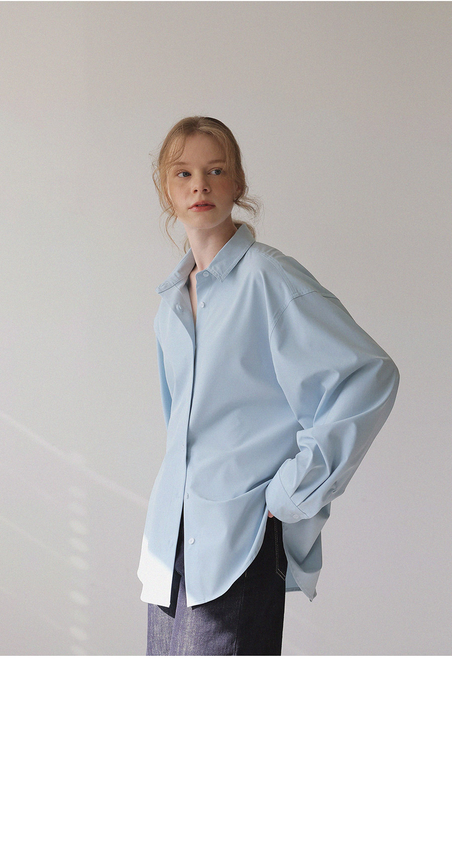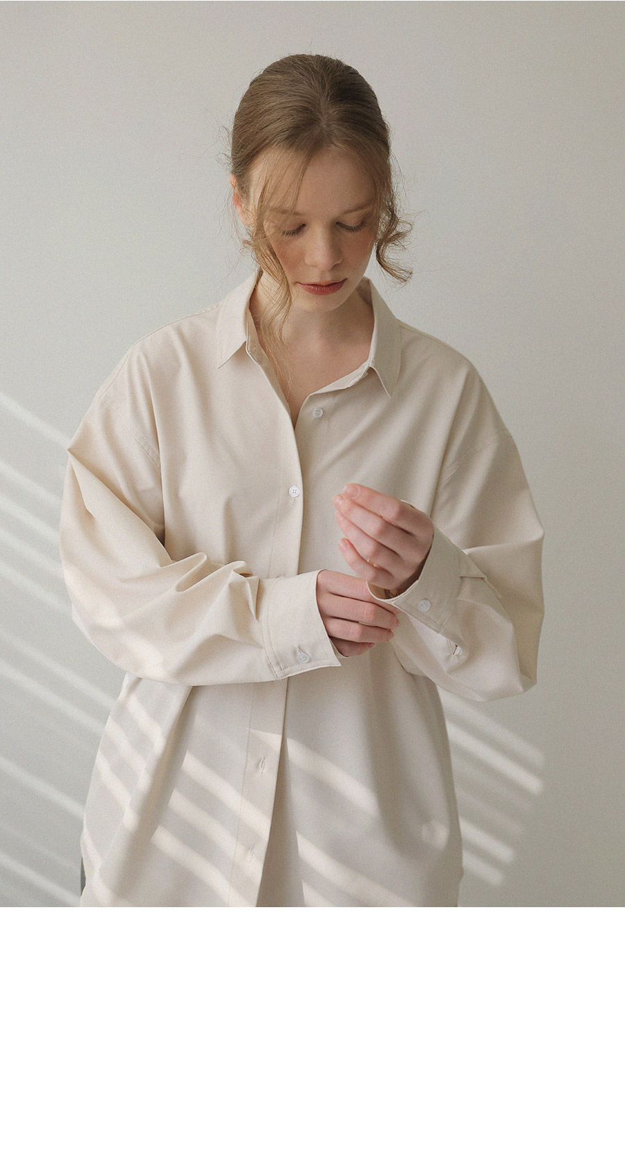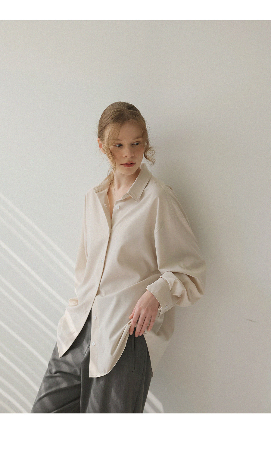 - 베이직한 디자인에 텐셤감 있는 소재를 더해 편안한 착용감을 제공하는 셔츠