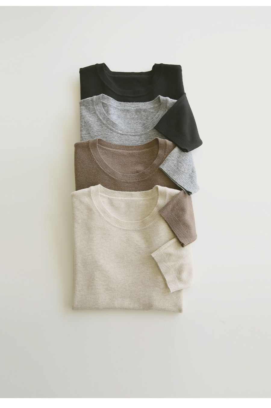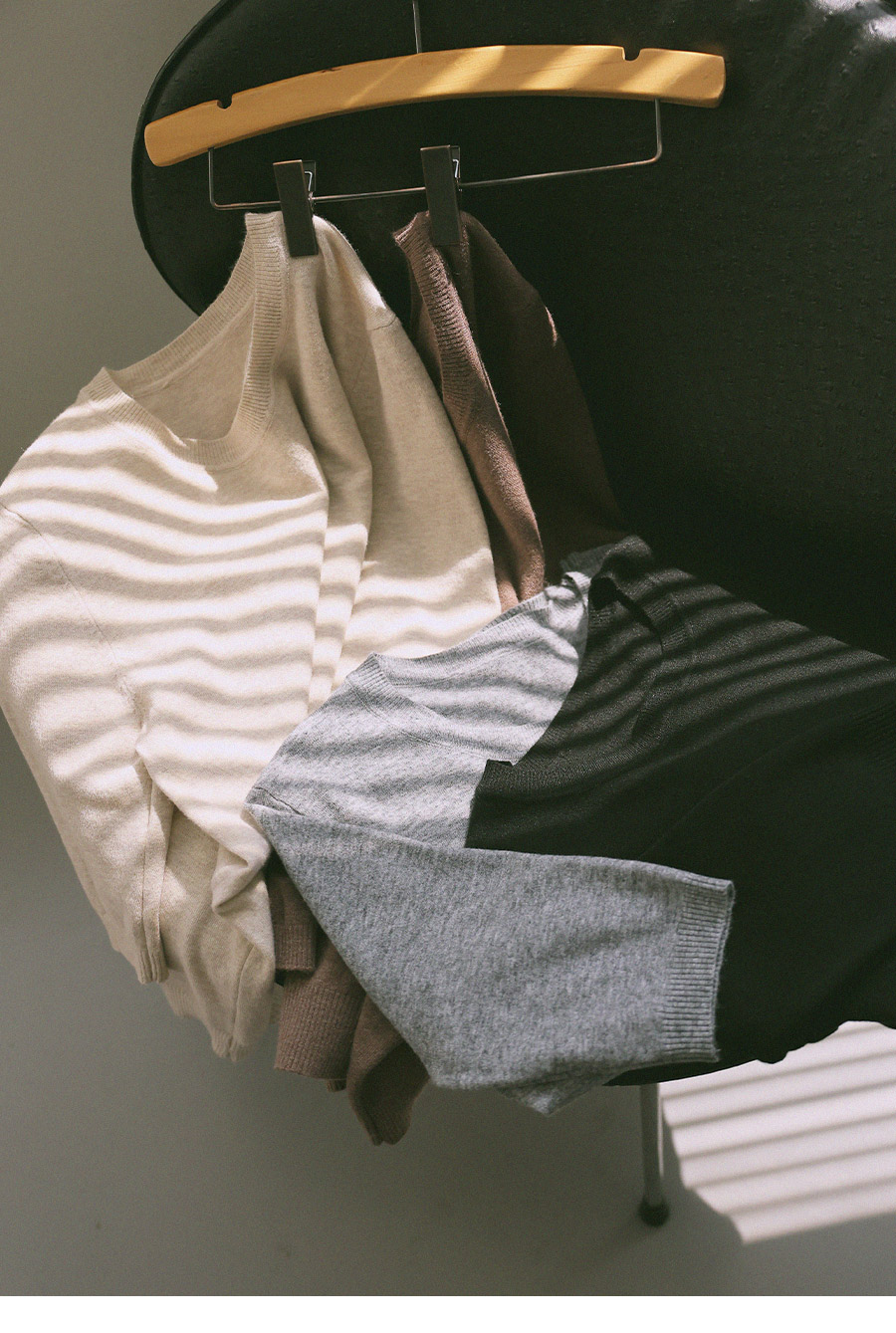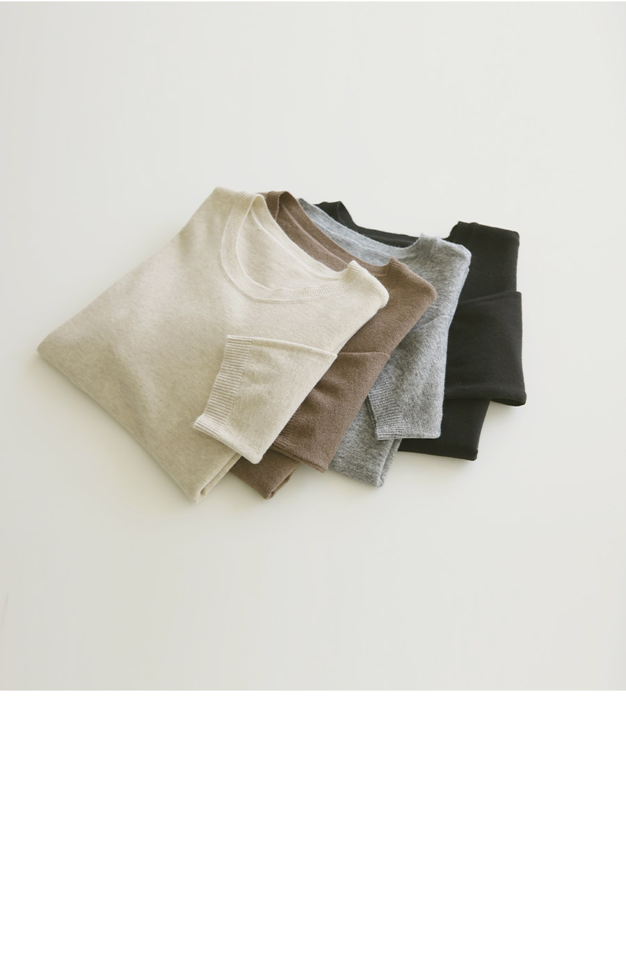 "부드러운 터치감의 시즌별 활용도가 높은 미니멀 라운드 니트탑"