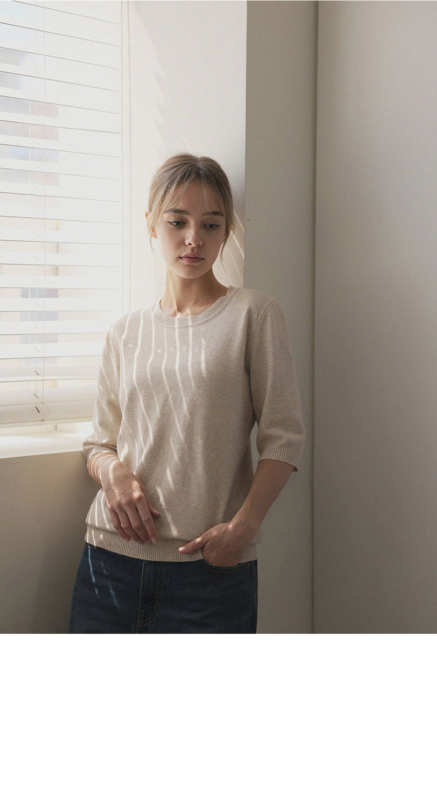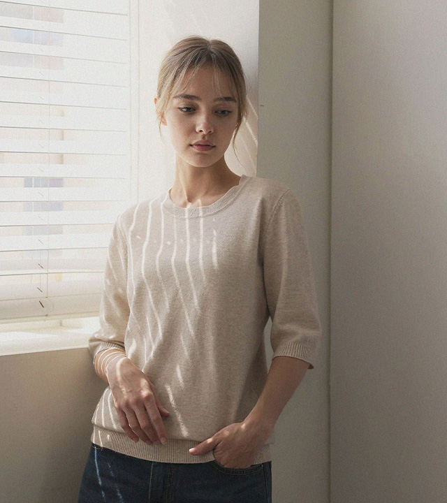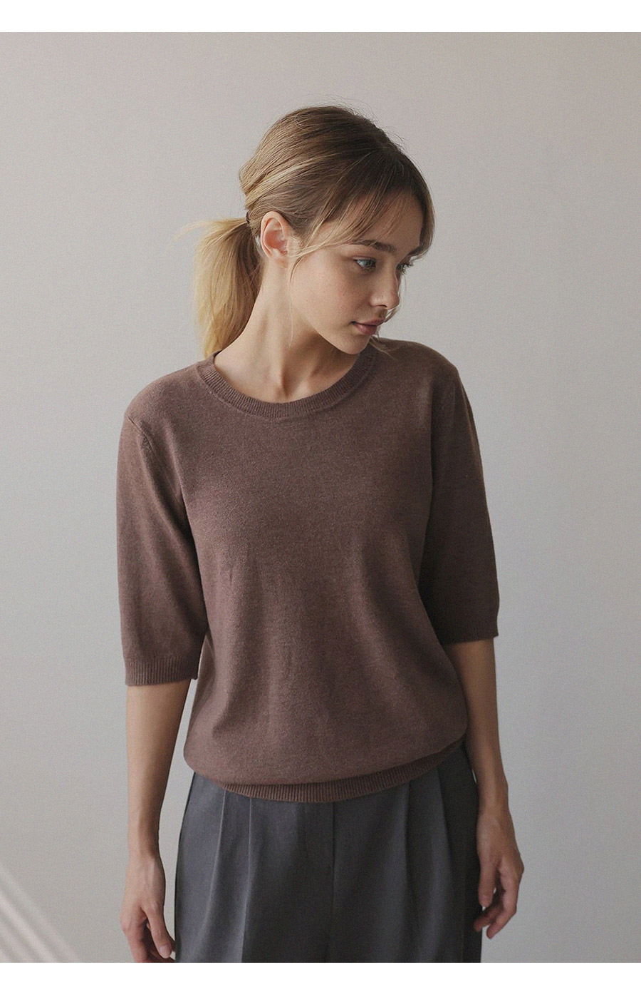 "부드러운 터치감의 시즌별 활용도가 높은 미니멀 라운드 니트탑"