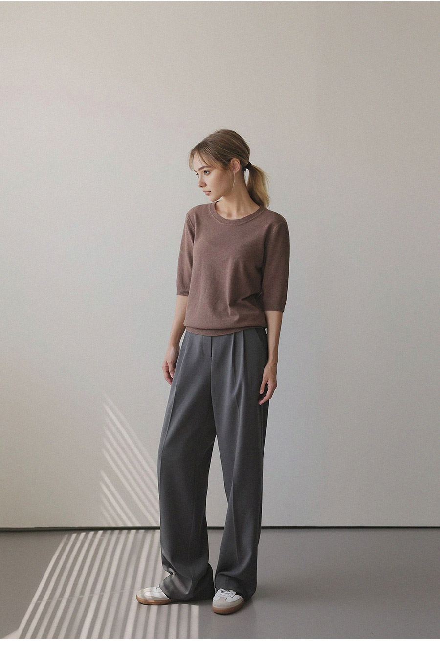 - 미니멀한 라운드 넥 디자인으로 깔끔하면서도 단정한 무드