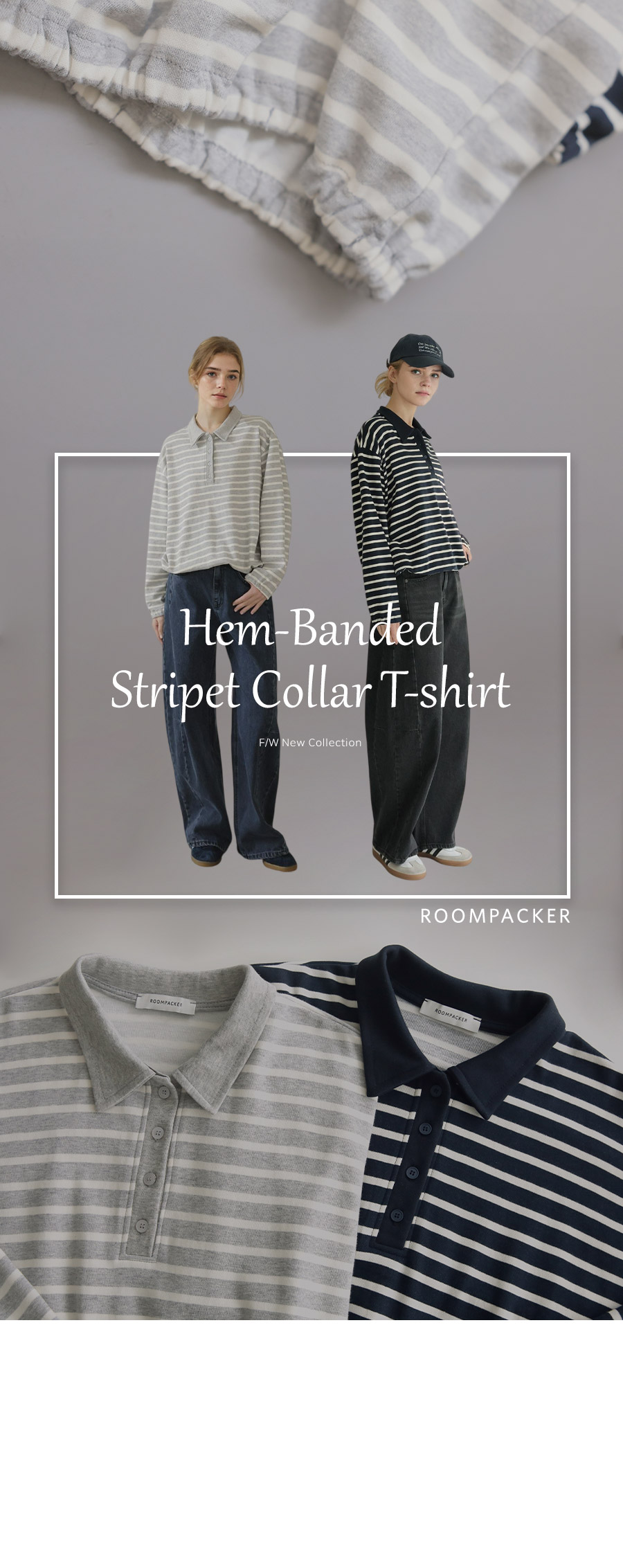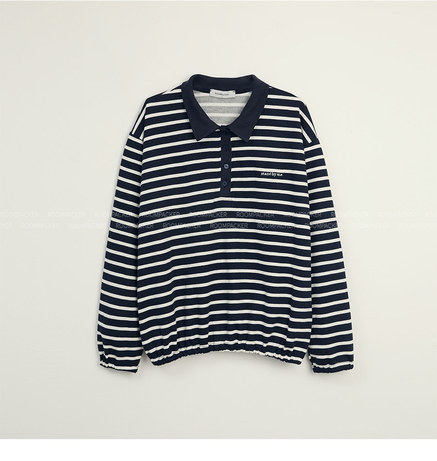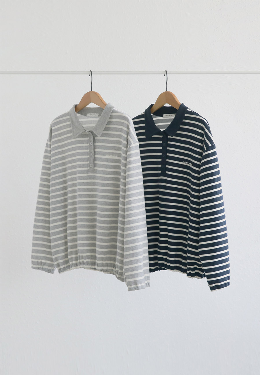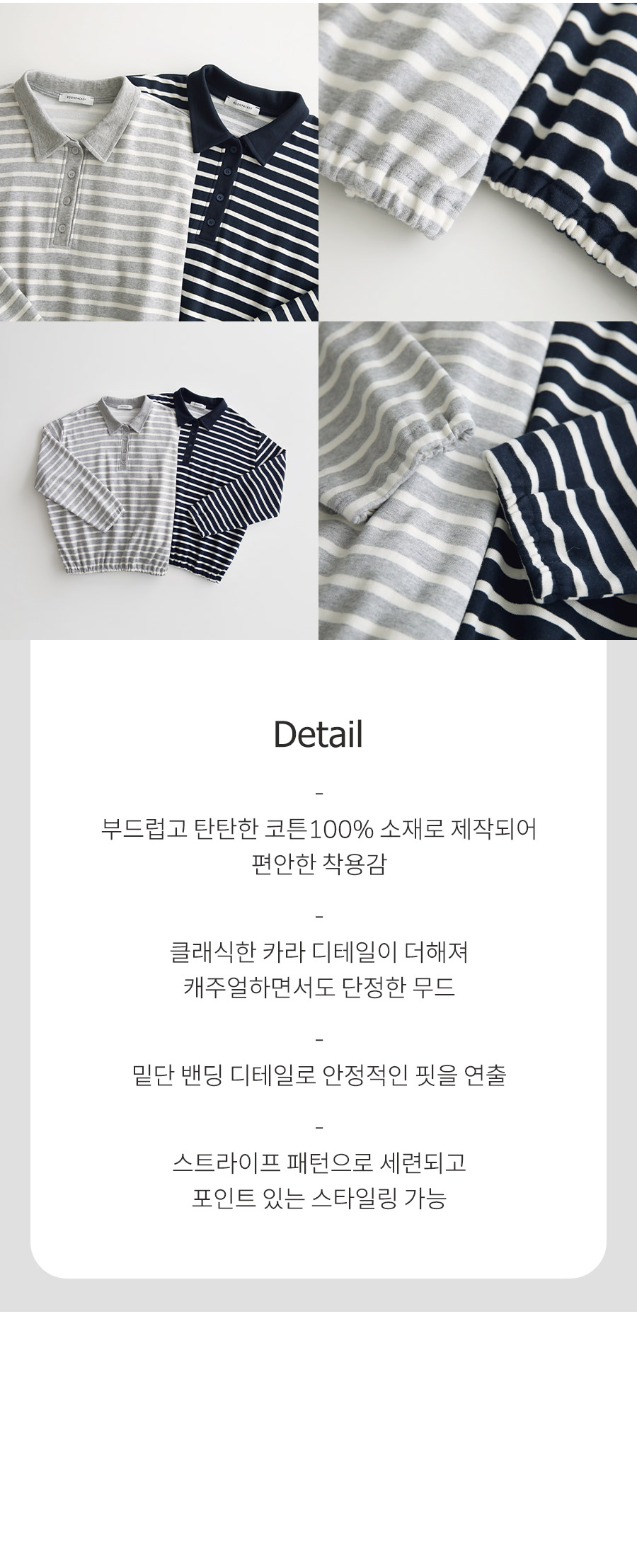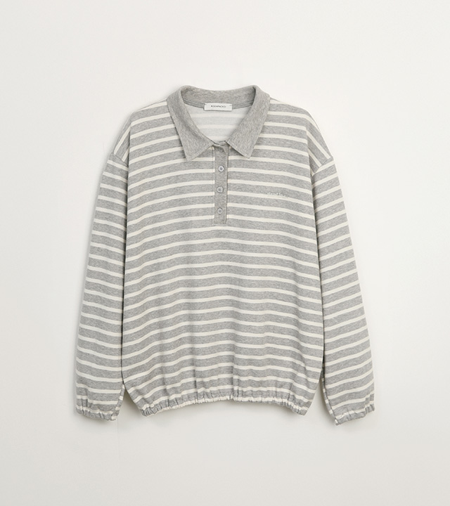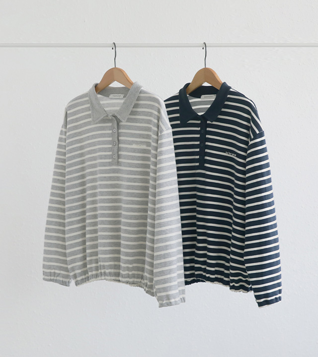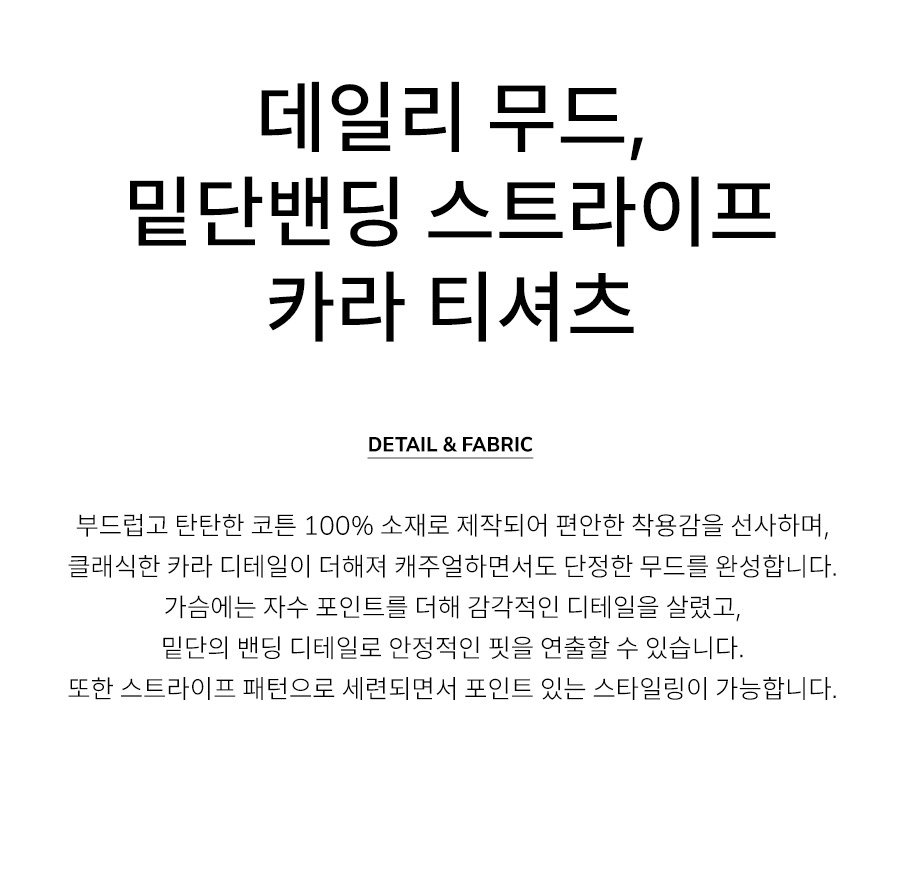 "데일리 무드, 밑단밴딩 스트라이프 카라 티셔츠"