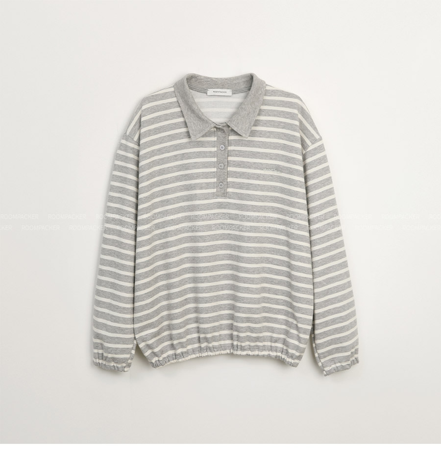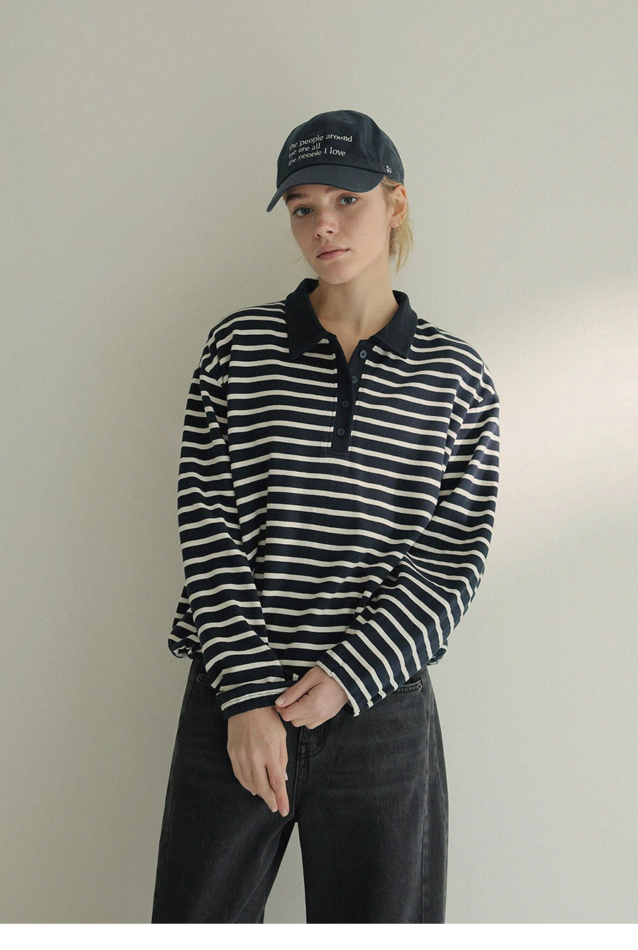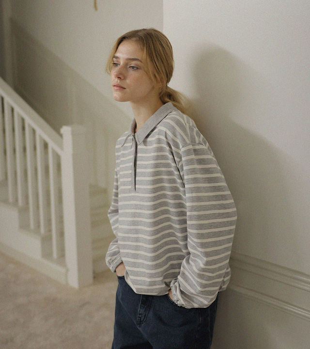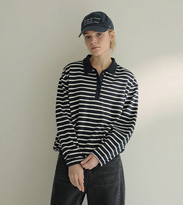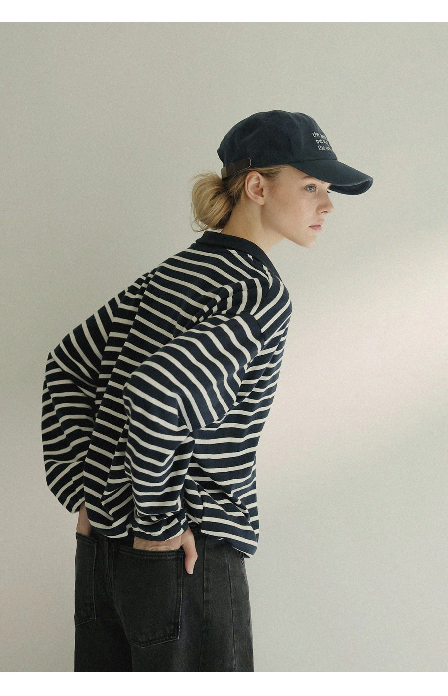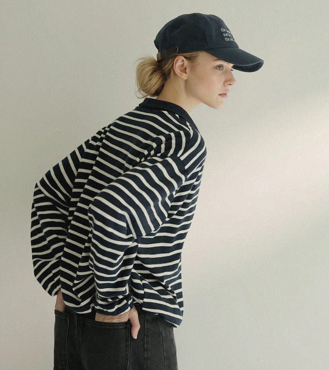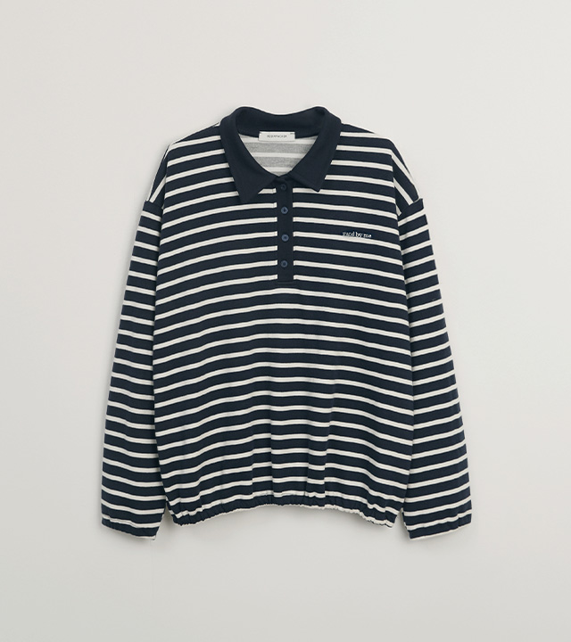 "데일리 무드, 밑단밴딩 스트라이프 카라 티셔츠"