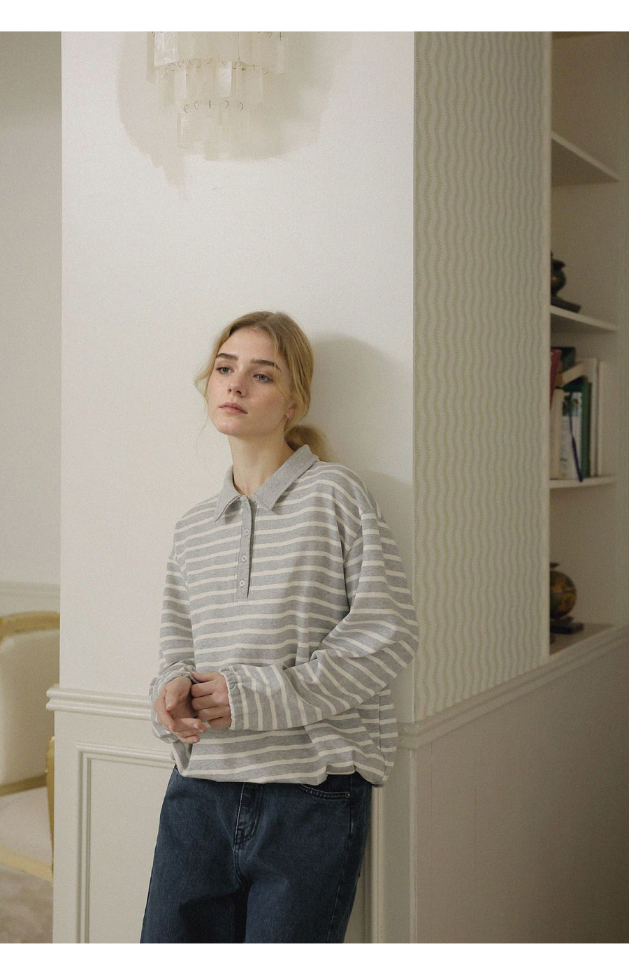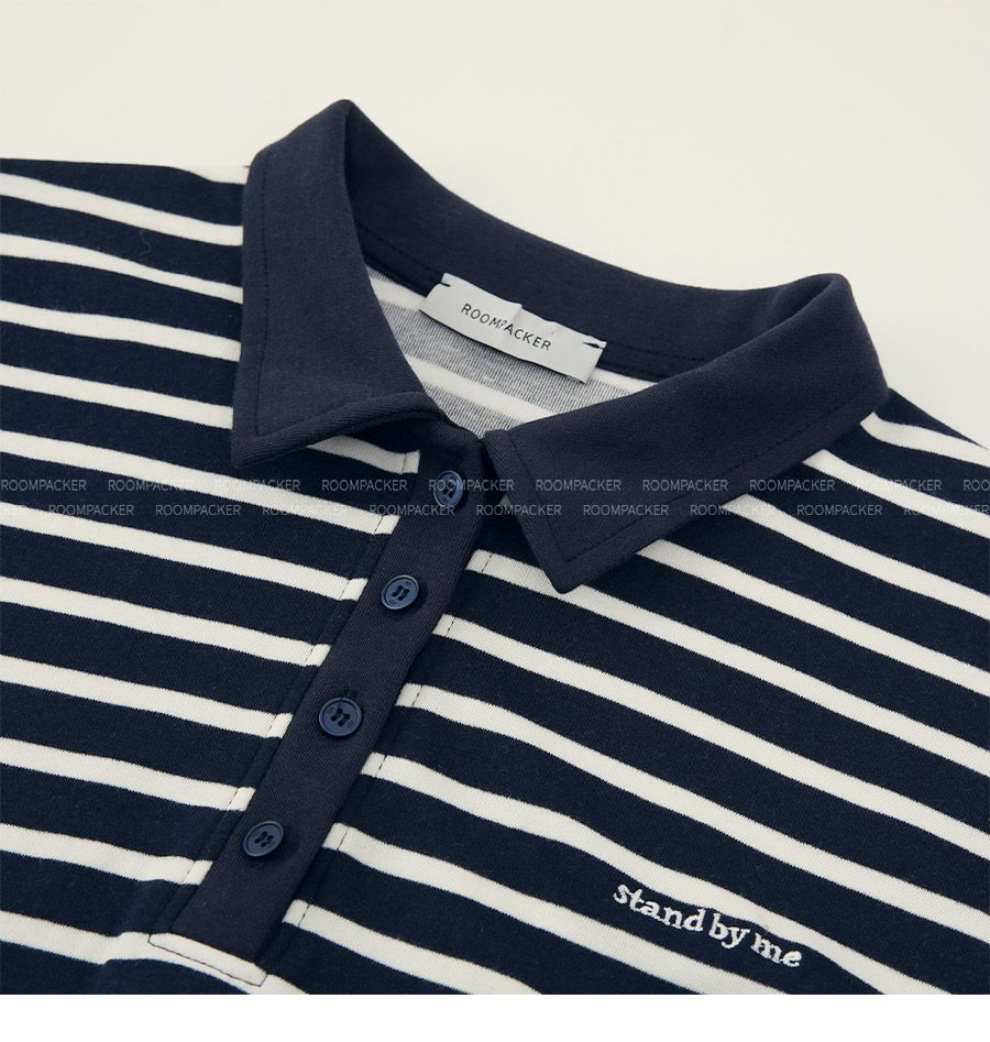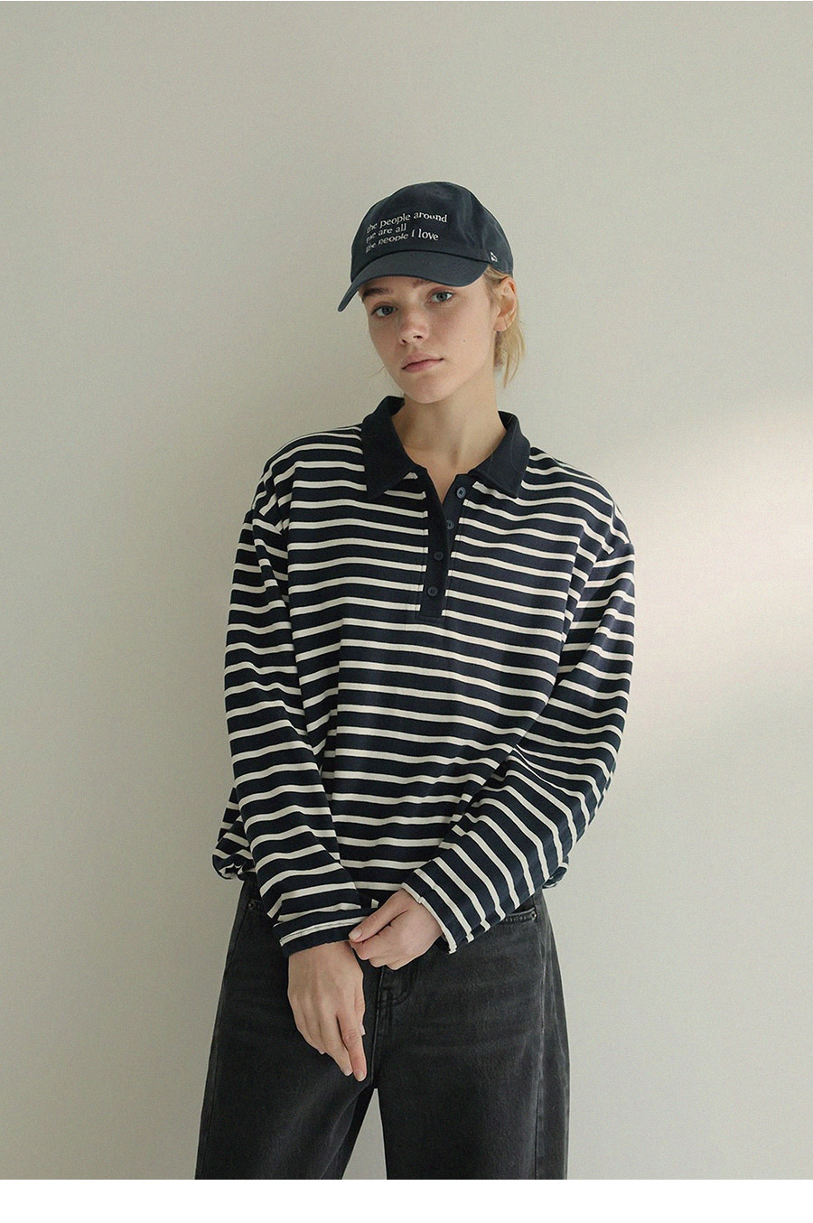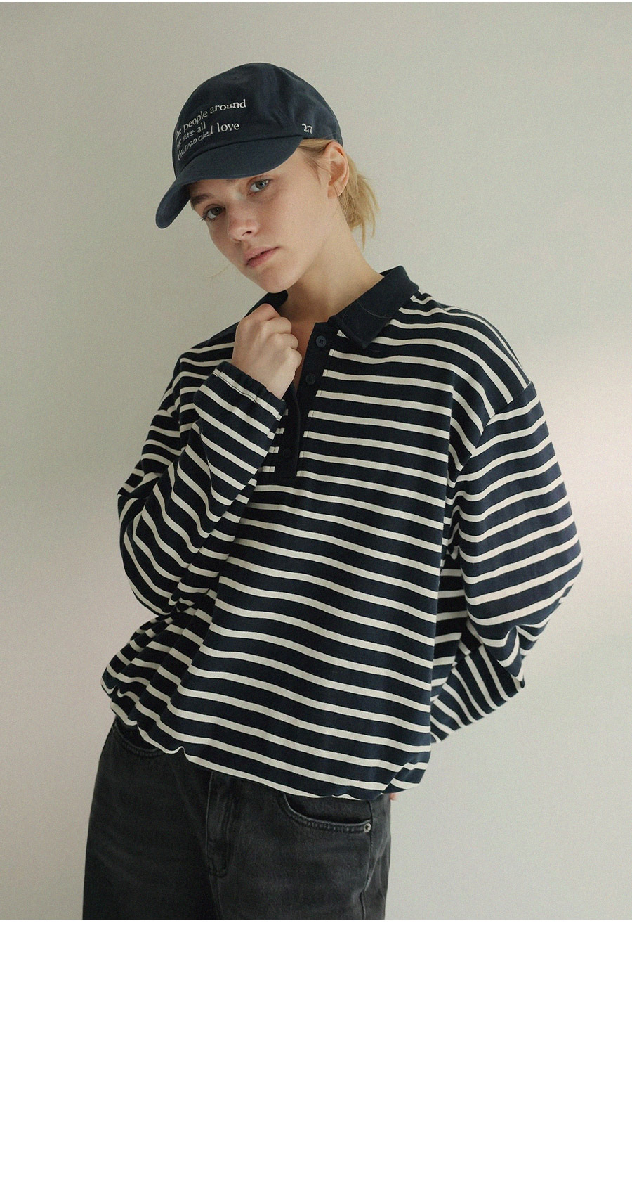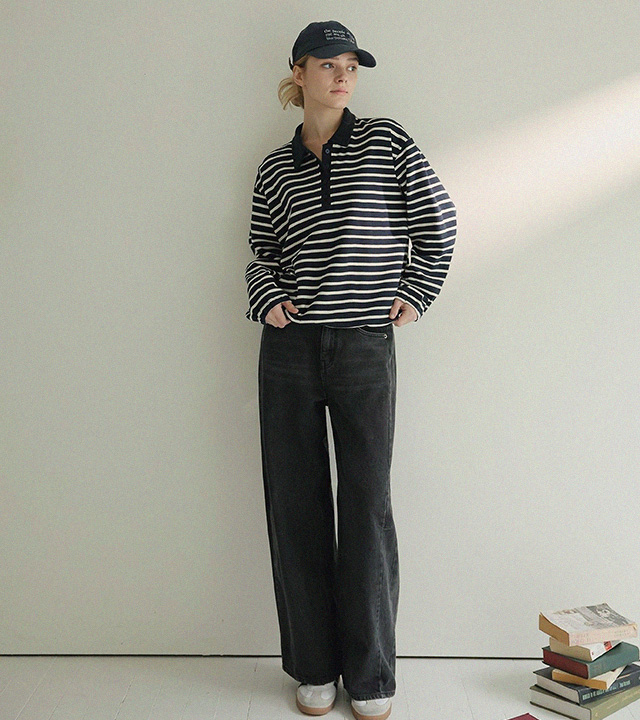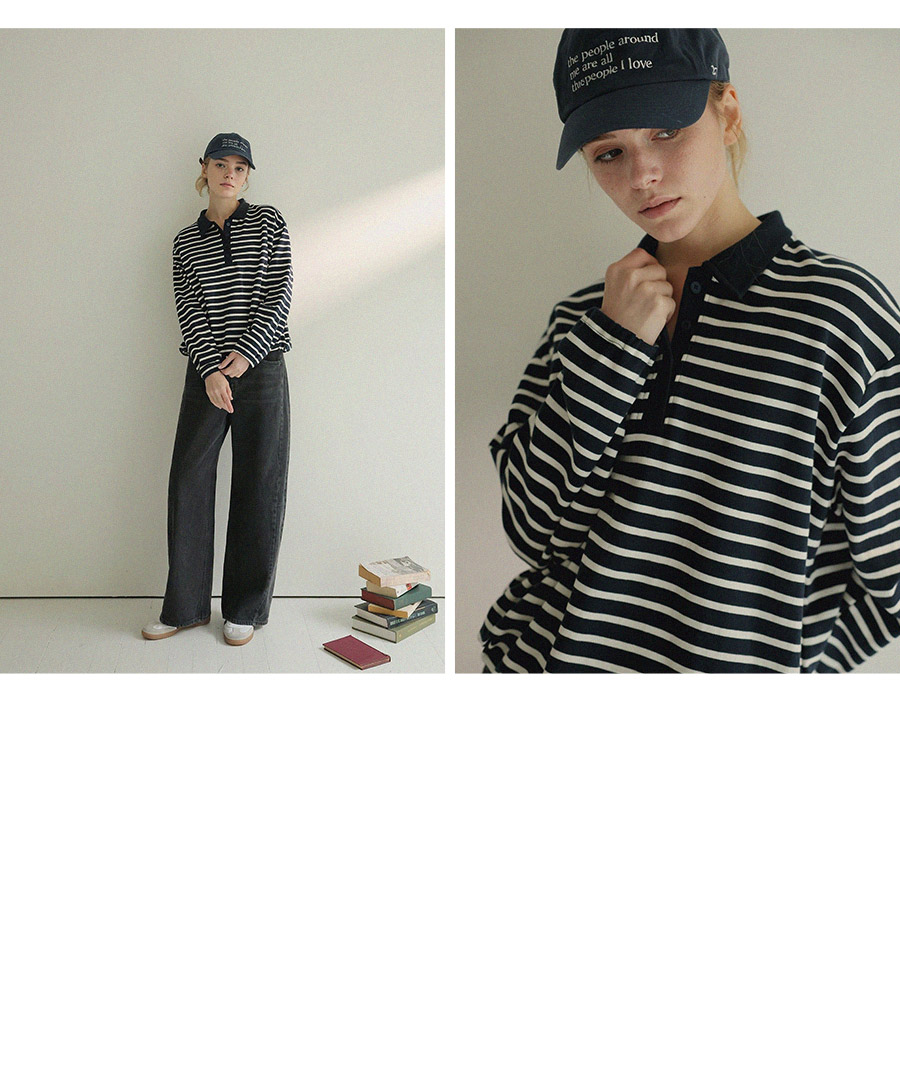 "데일리 무드, 밑단밴딩 스트라이프 카라 티셔츠"