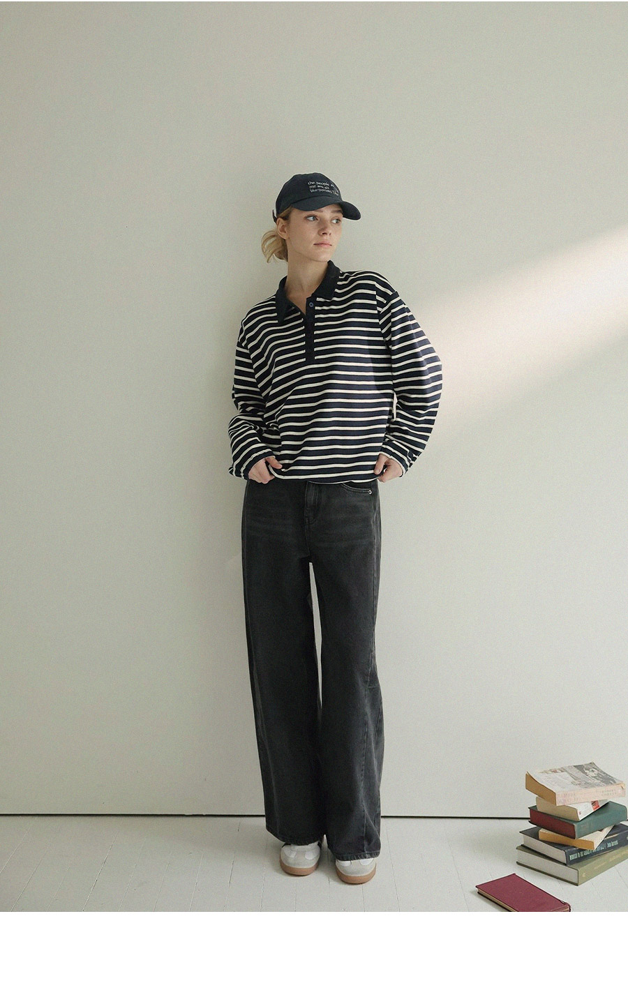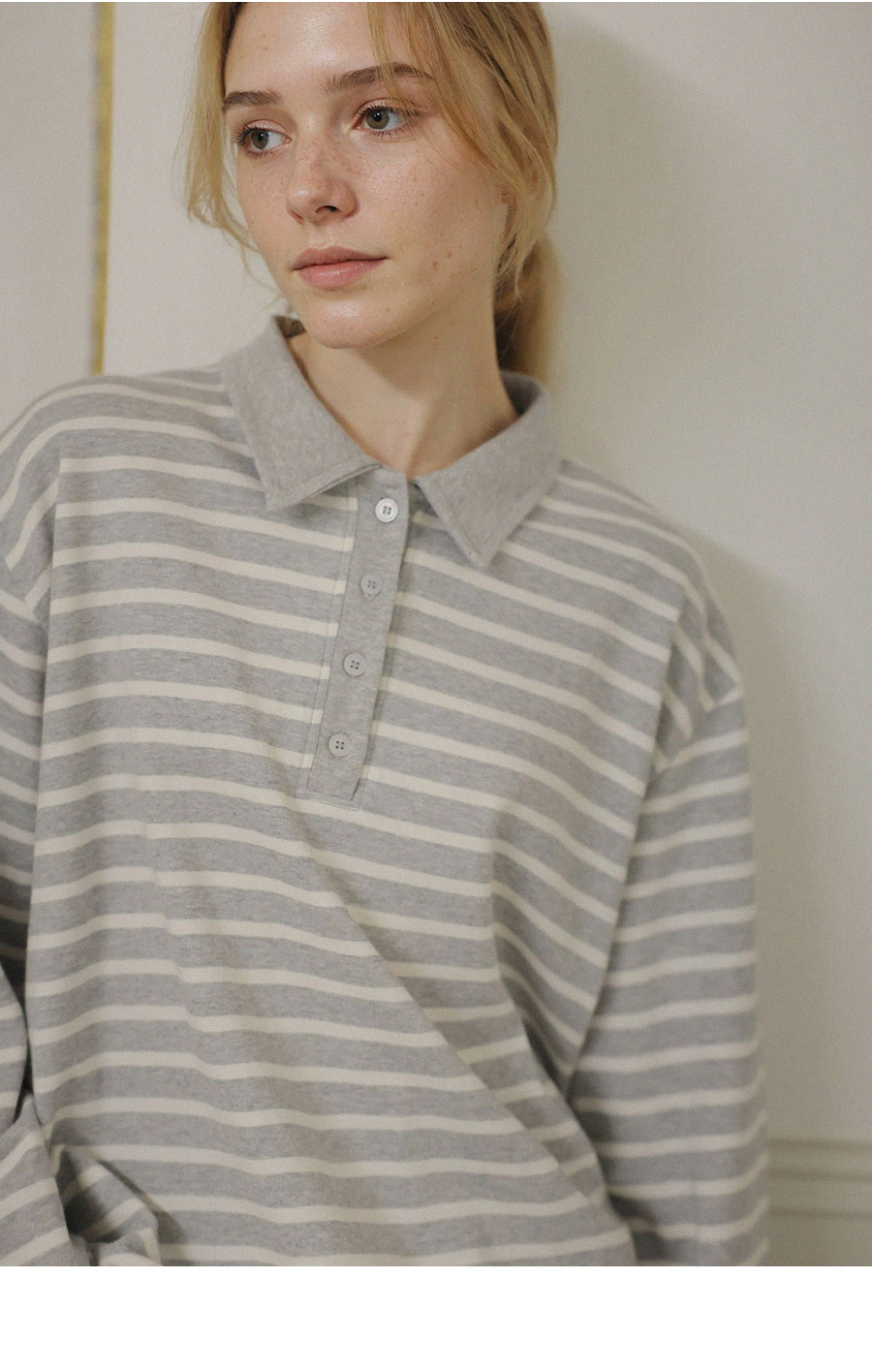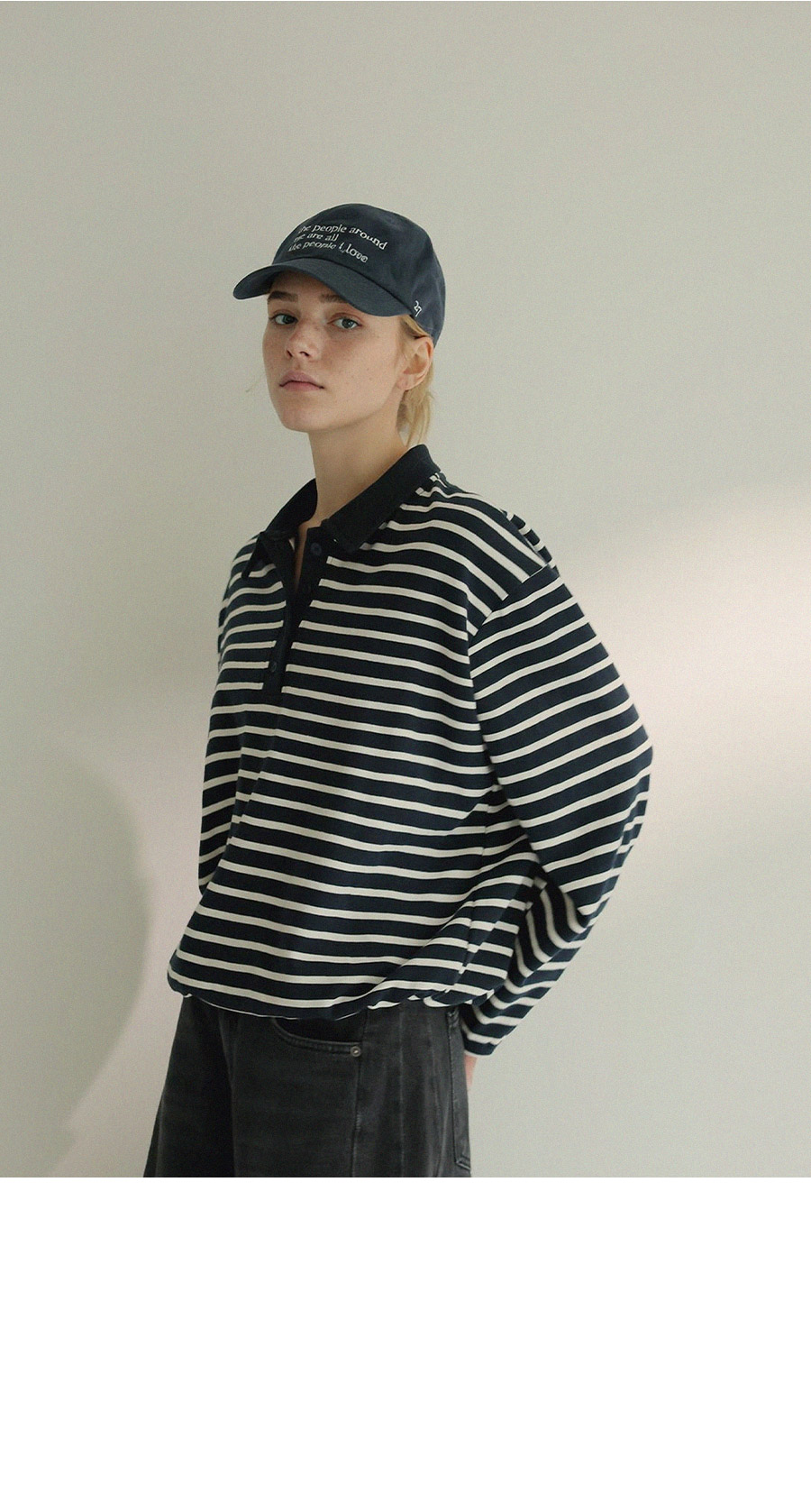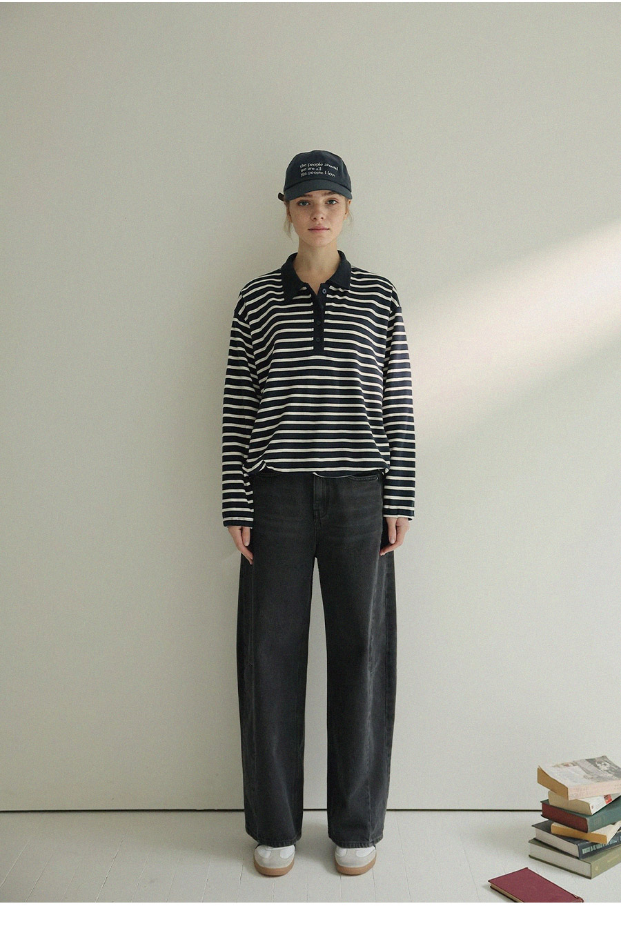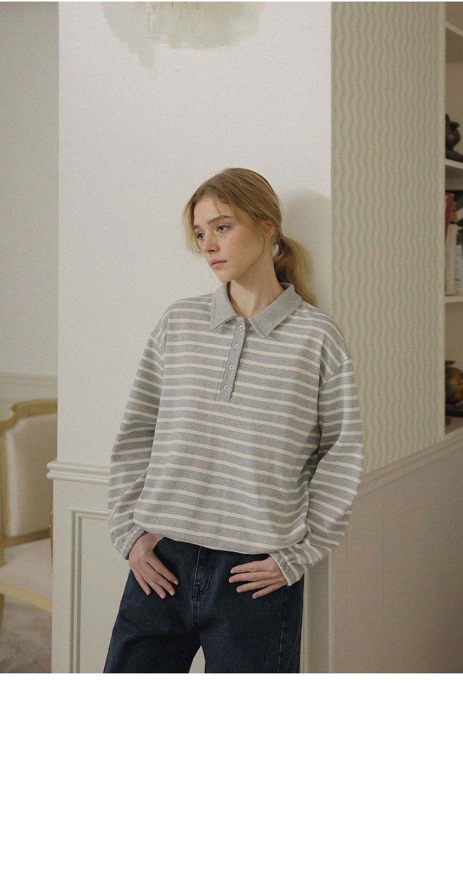 "데일리 무드, 밑단밴딩 스트라이프 카라 티셔츠"