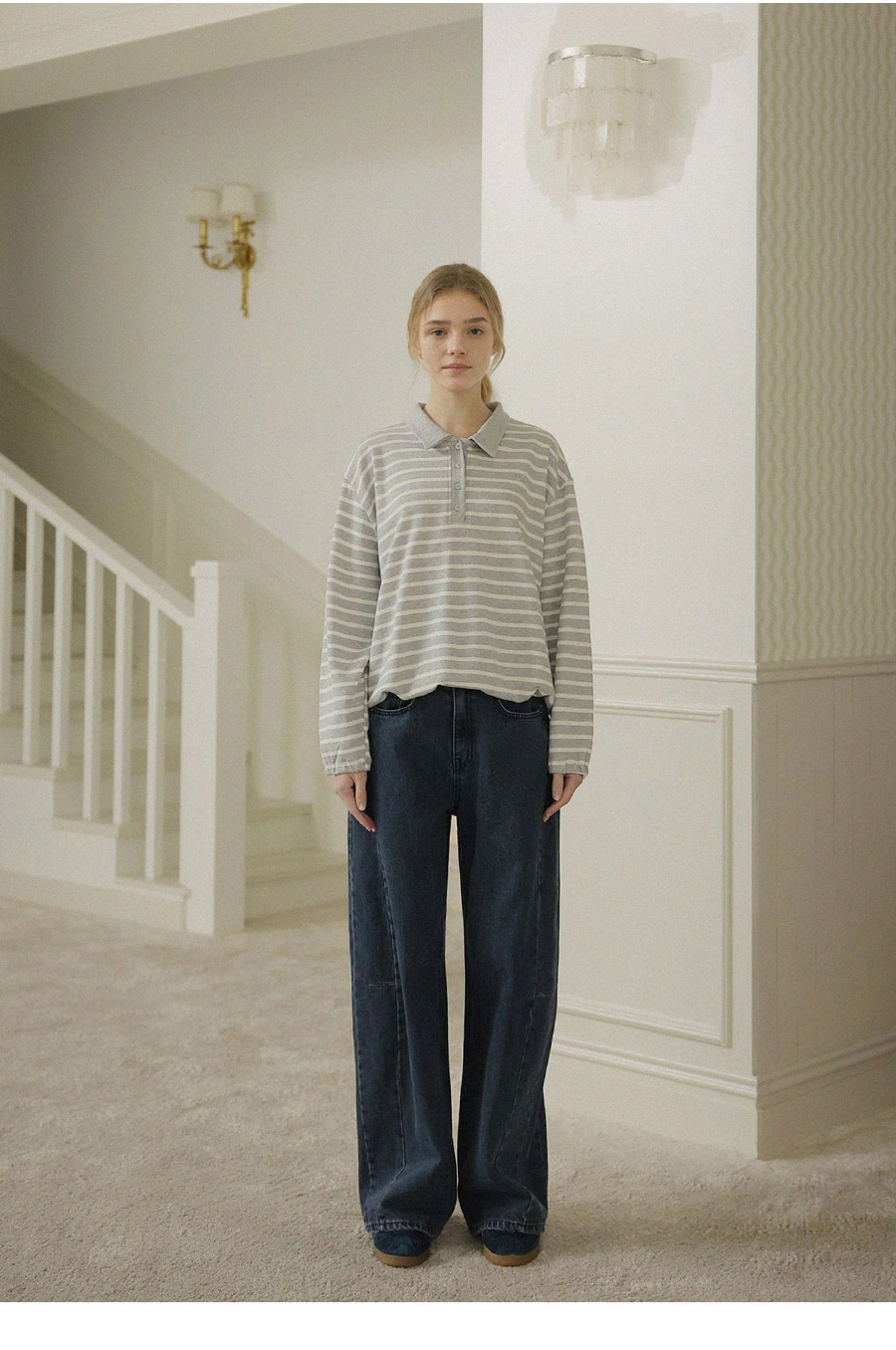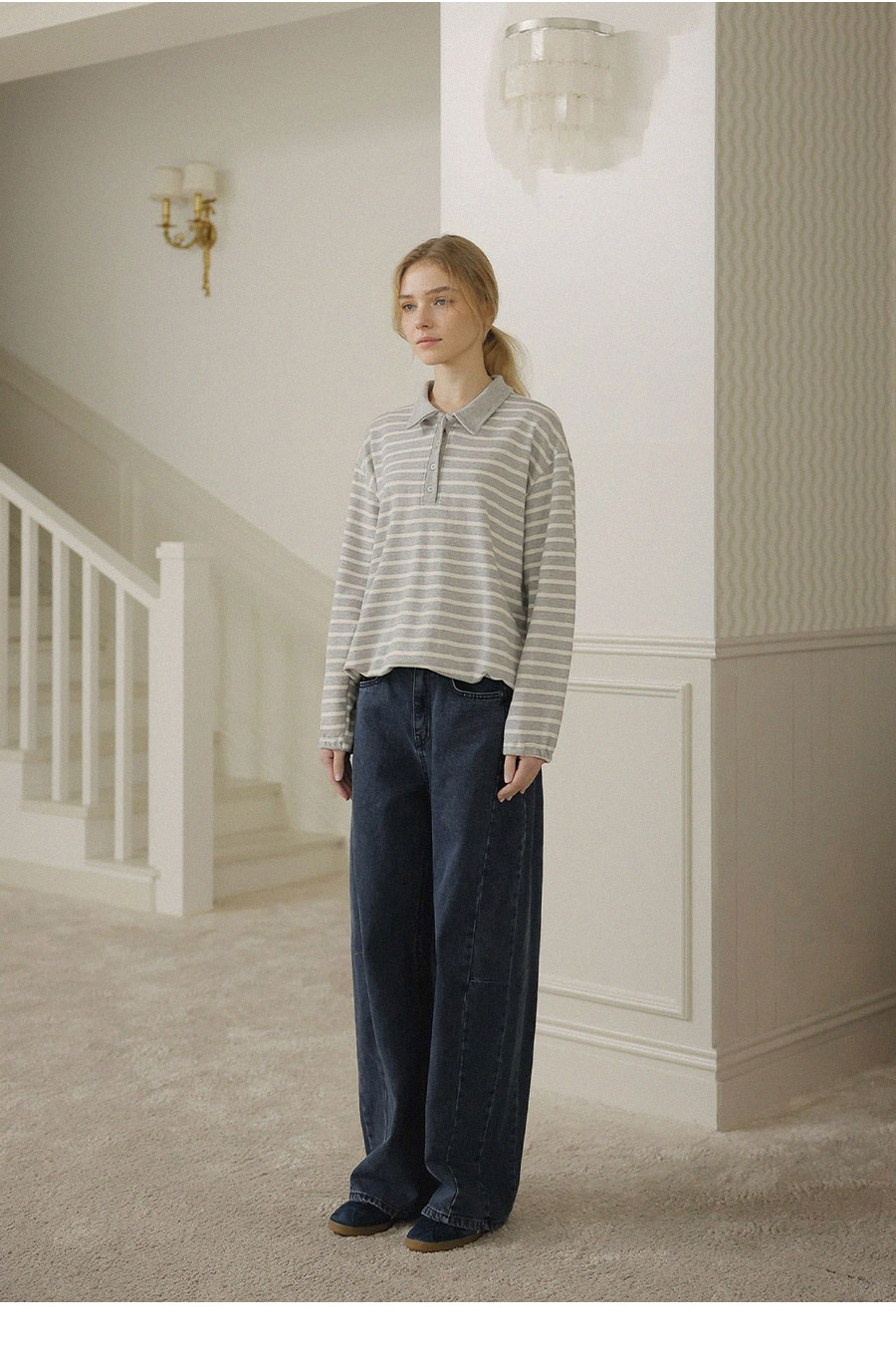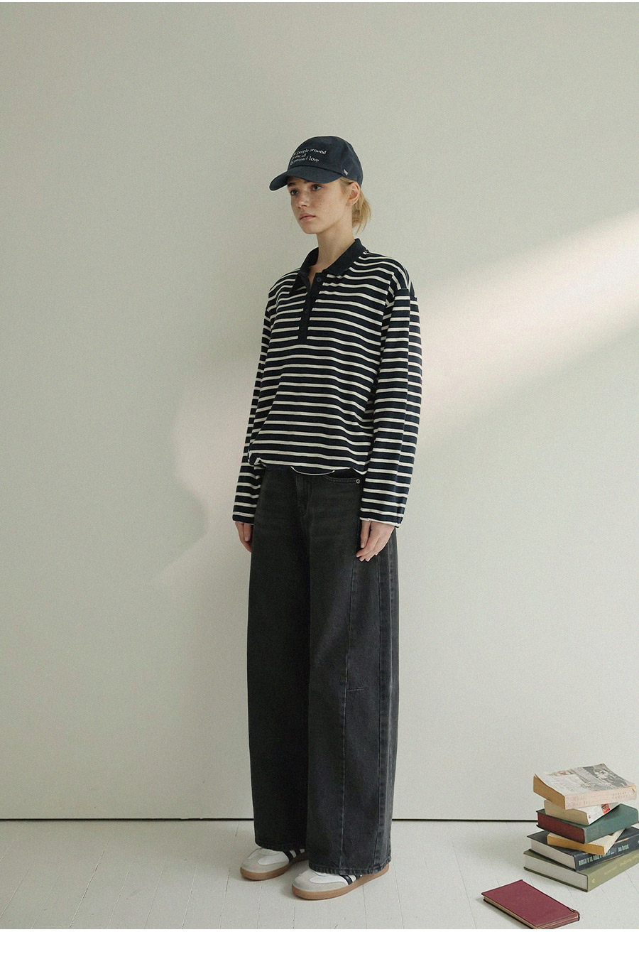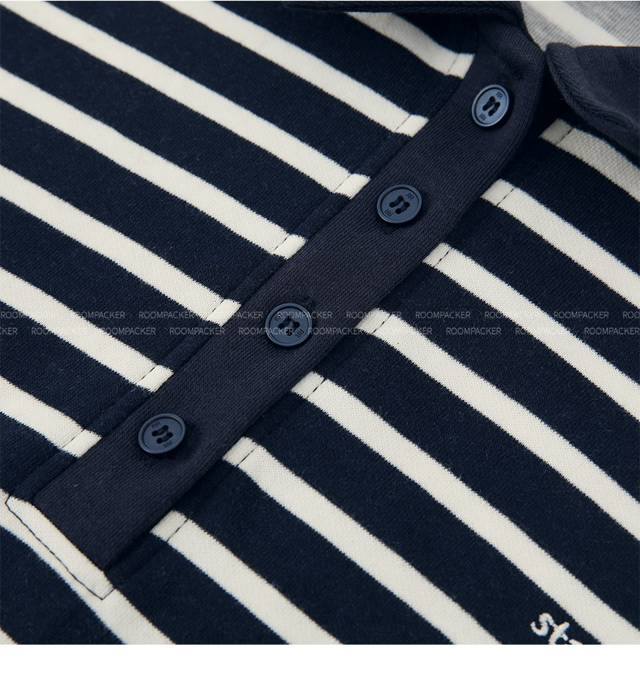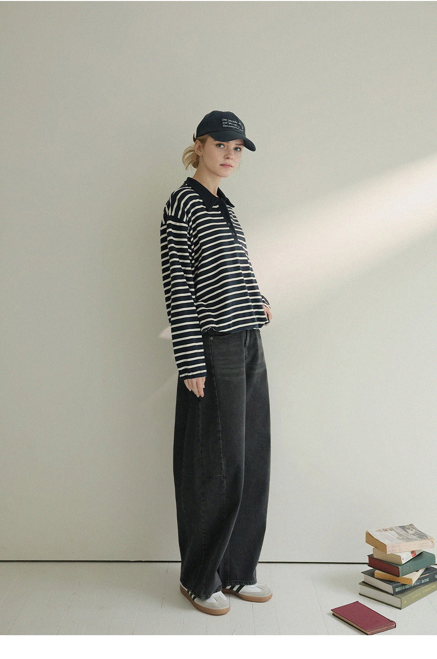 "데일리 무드, 밑단밴딩 스트라이프 카라 티셔츠"