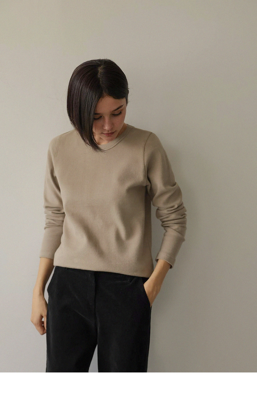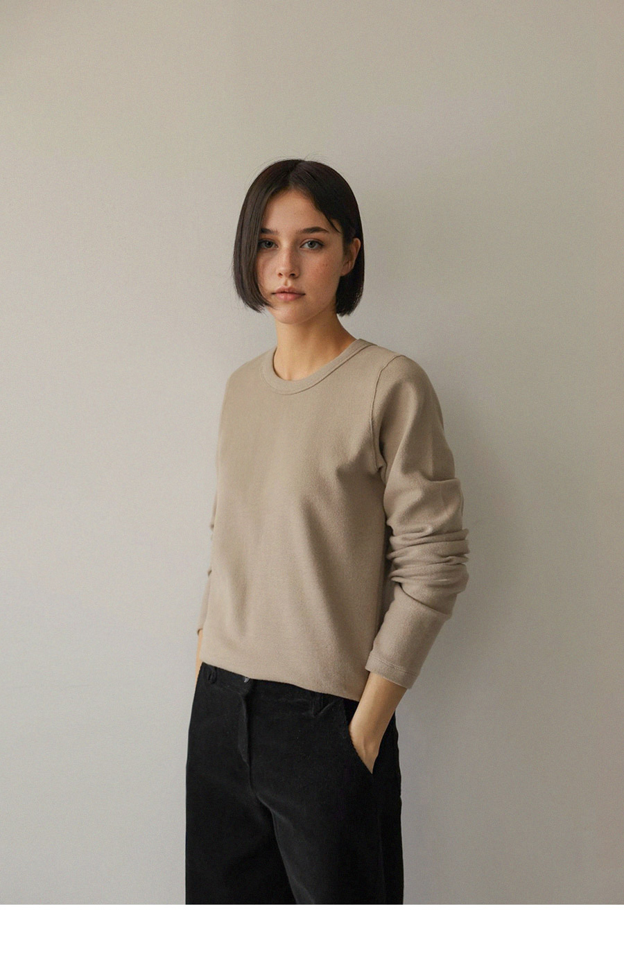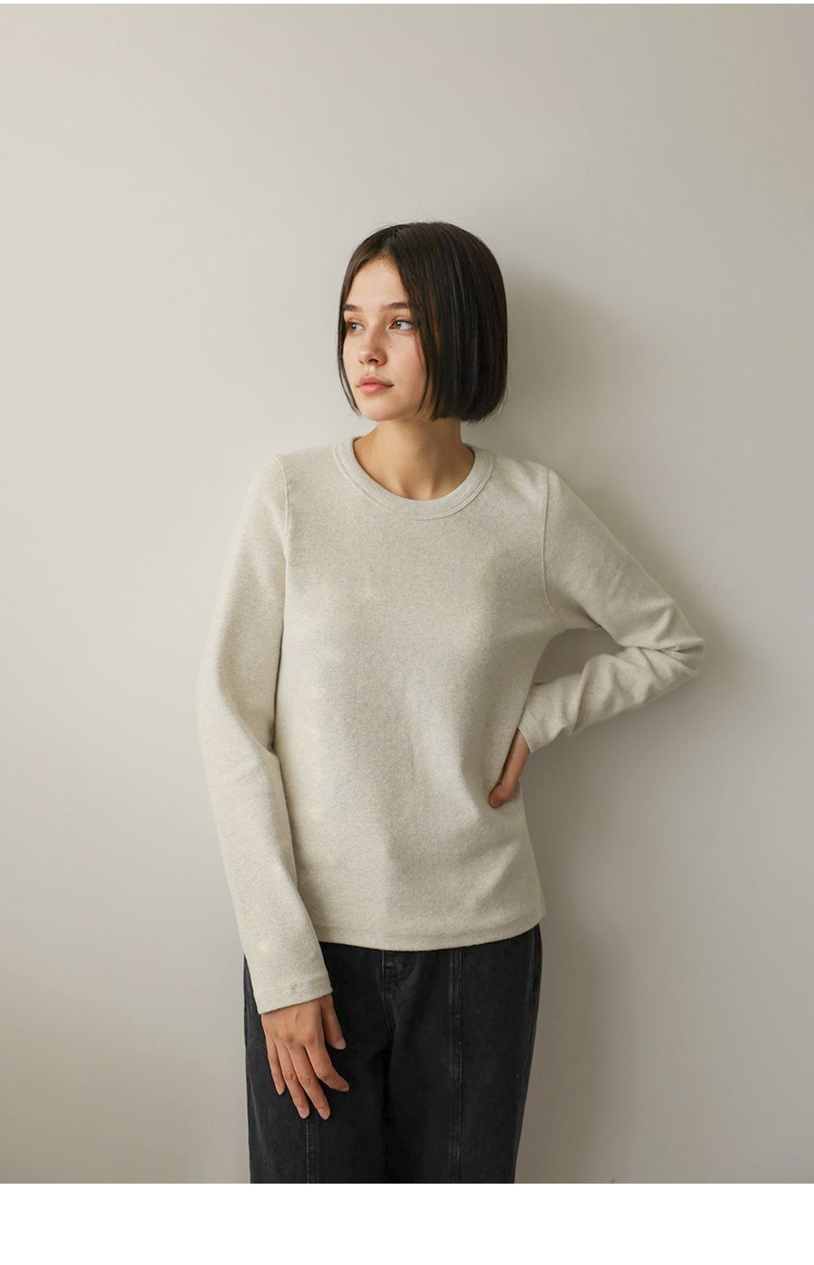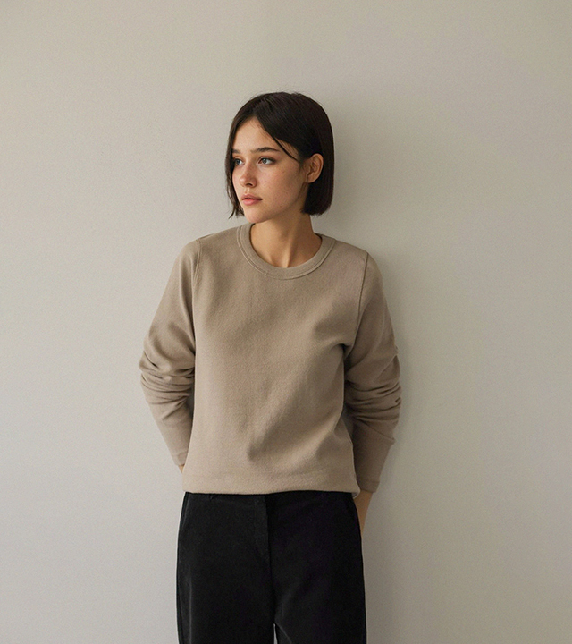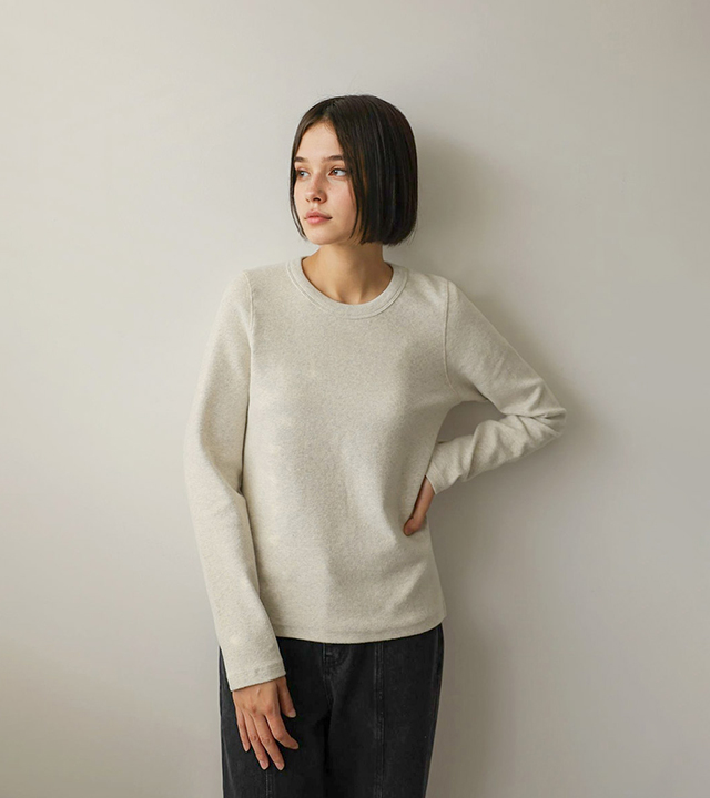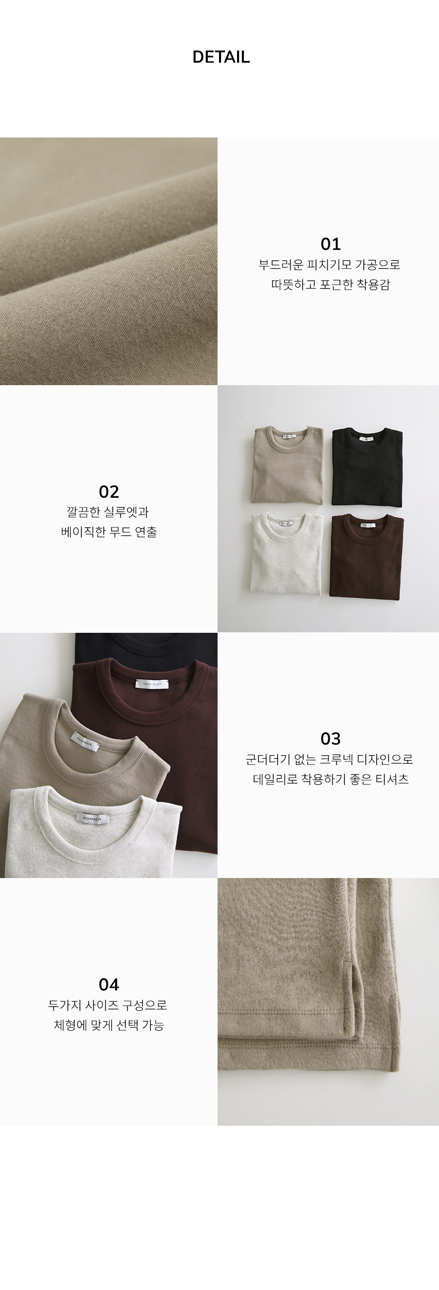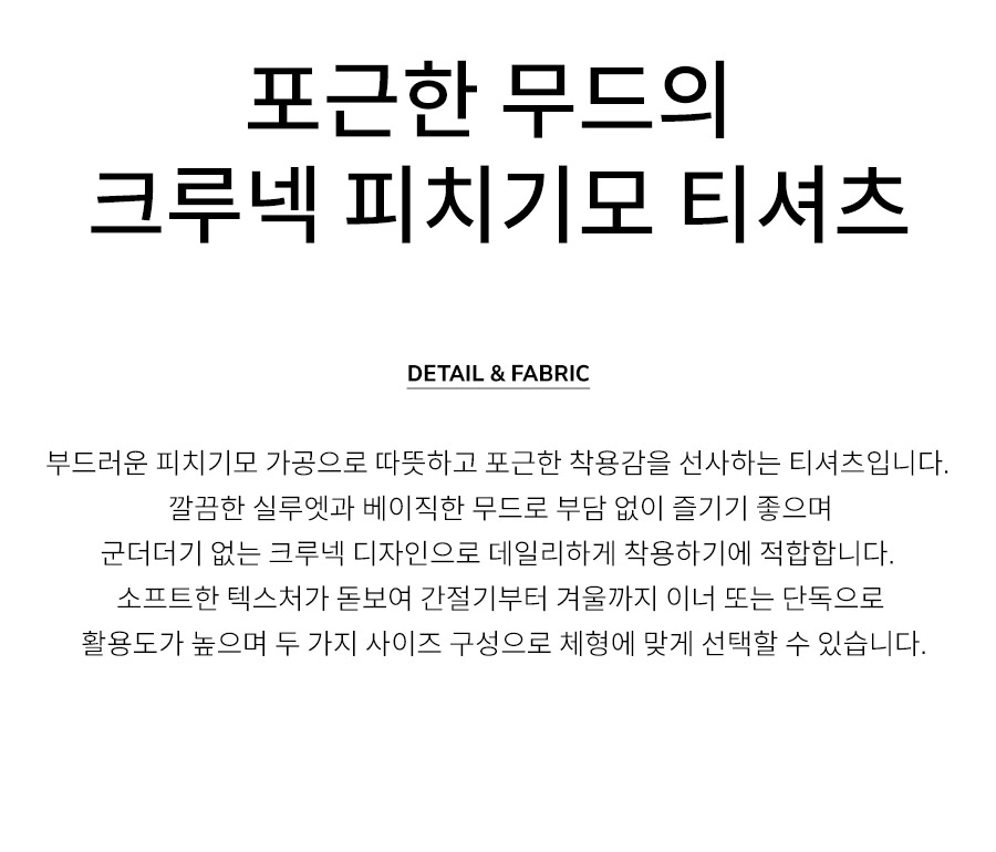 "포근한 무드의 크루넥 피치기모 티셔츠"