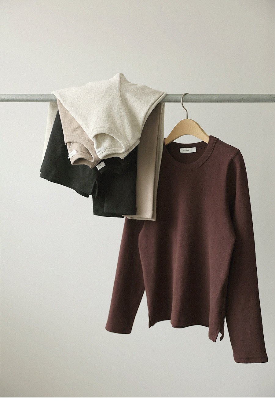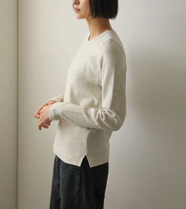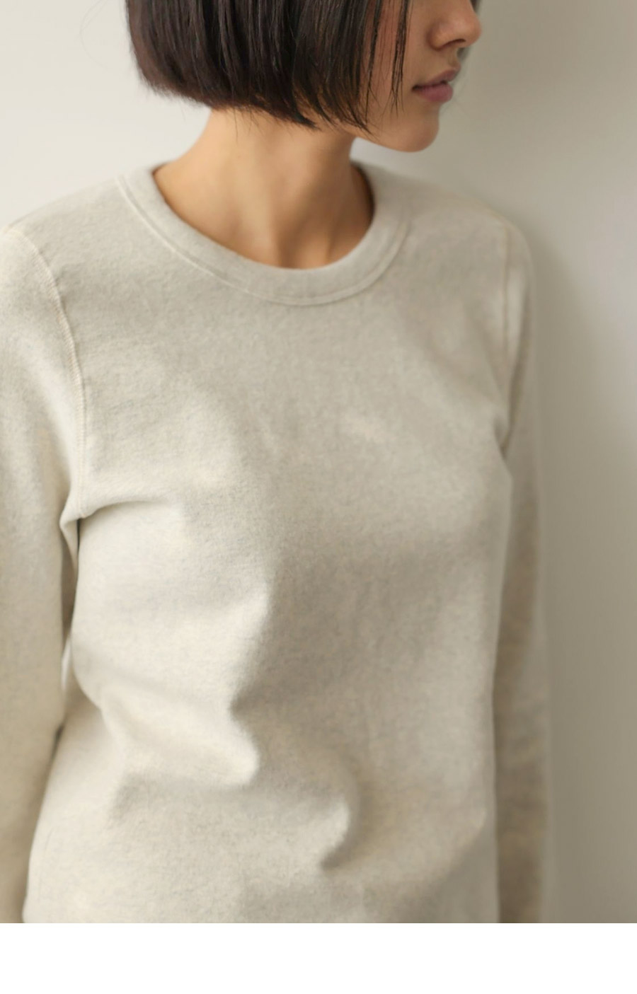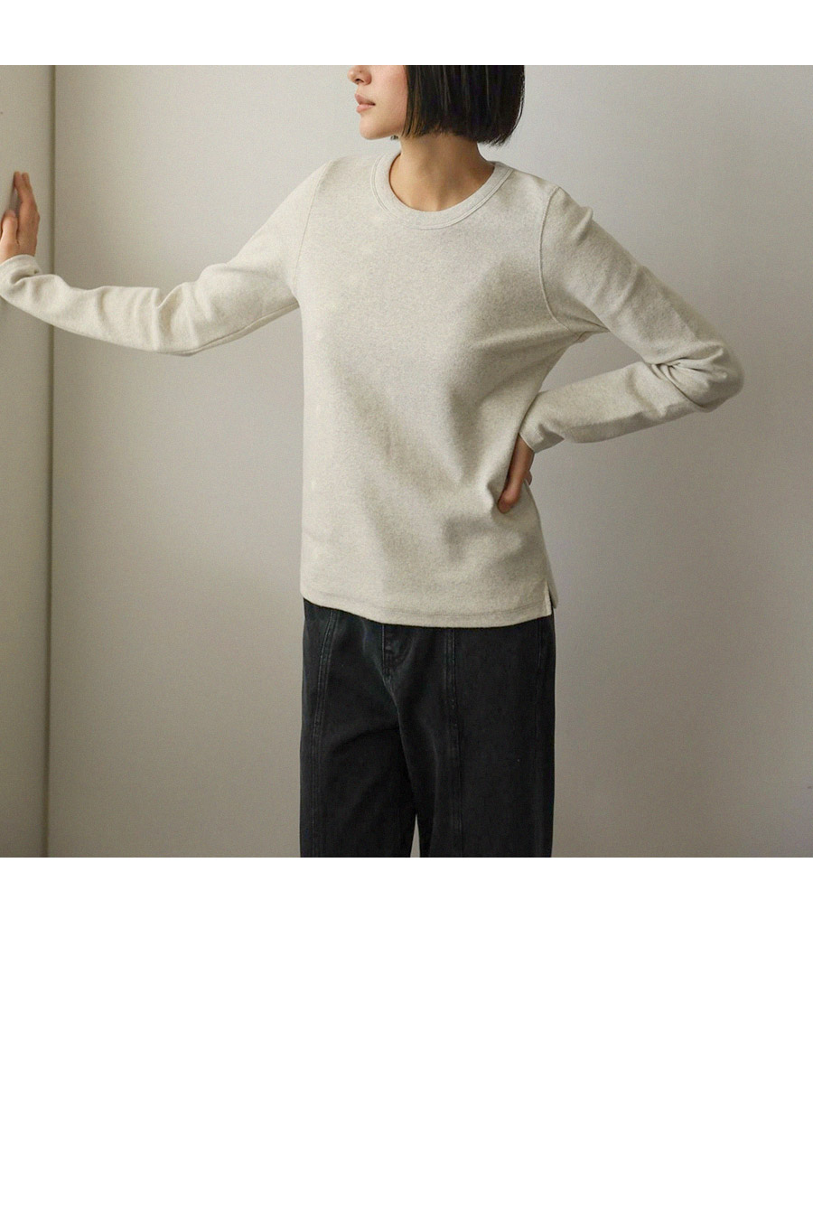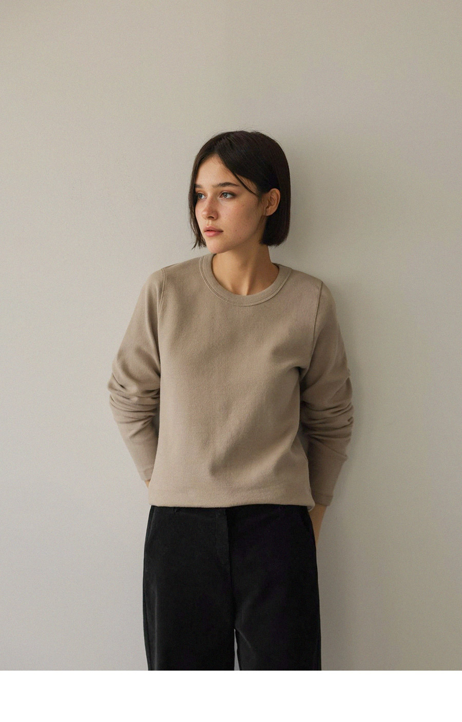 "포근한 무드의 크루넥 피치기모 티셔츠"
