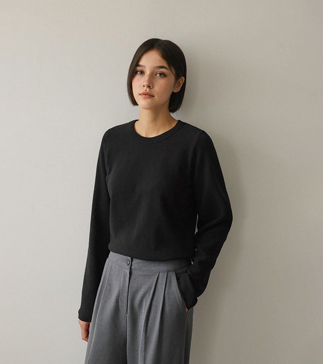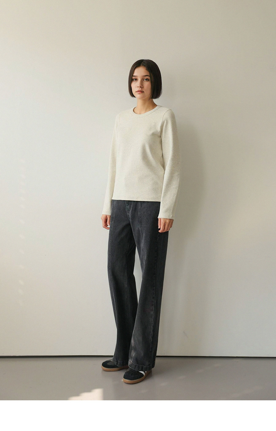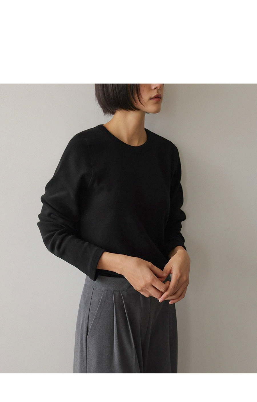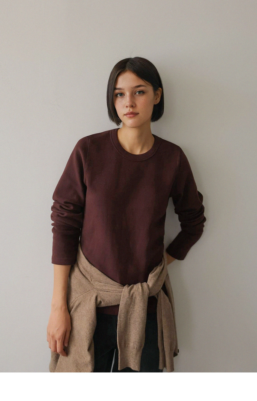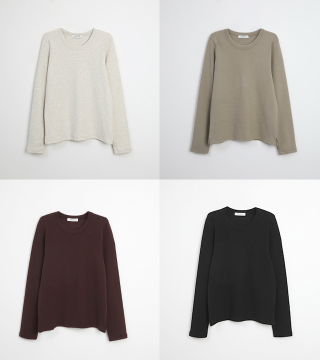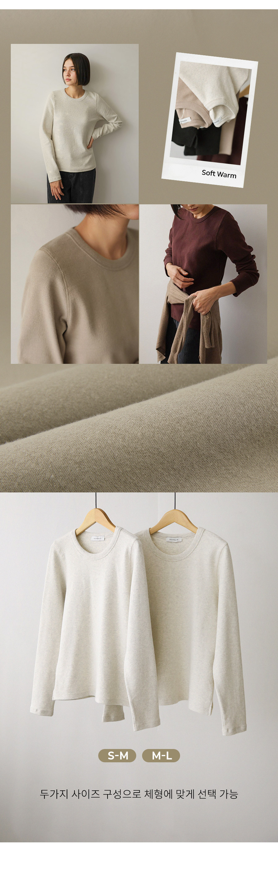 "포근한 무드의 크루넥 피치기모 티셔츠"