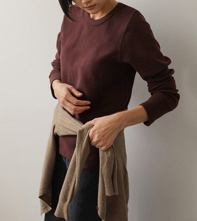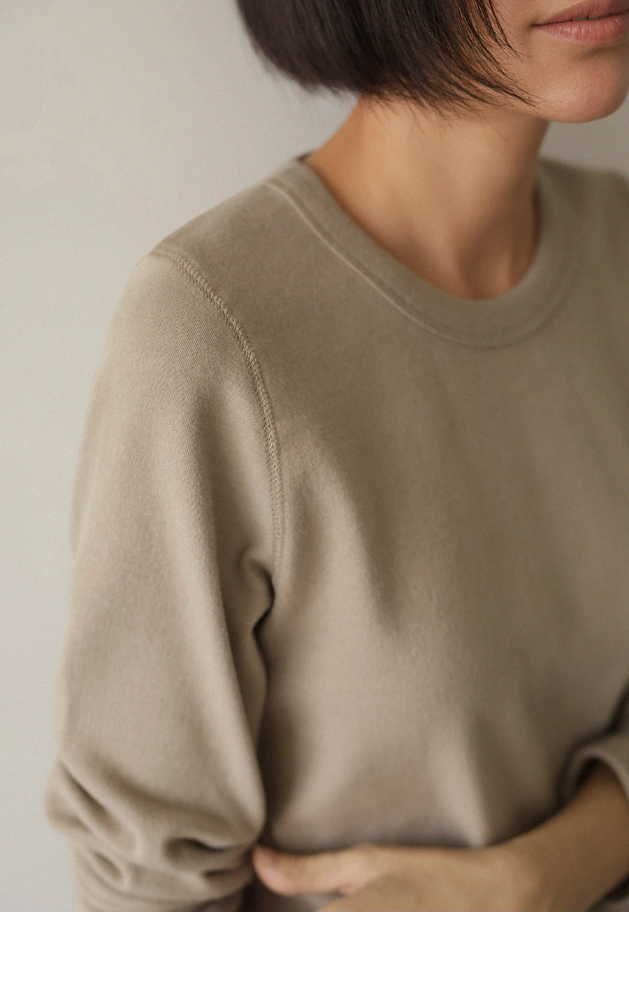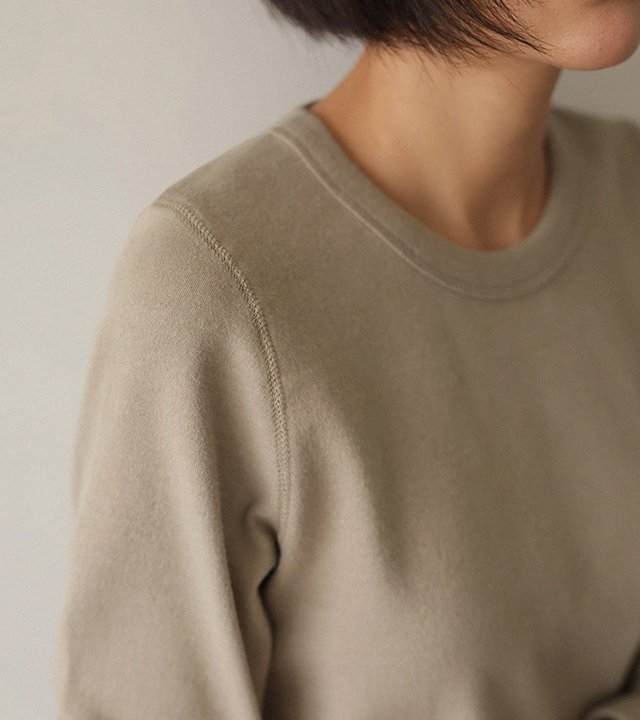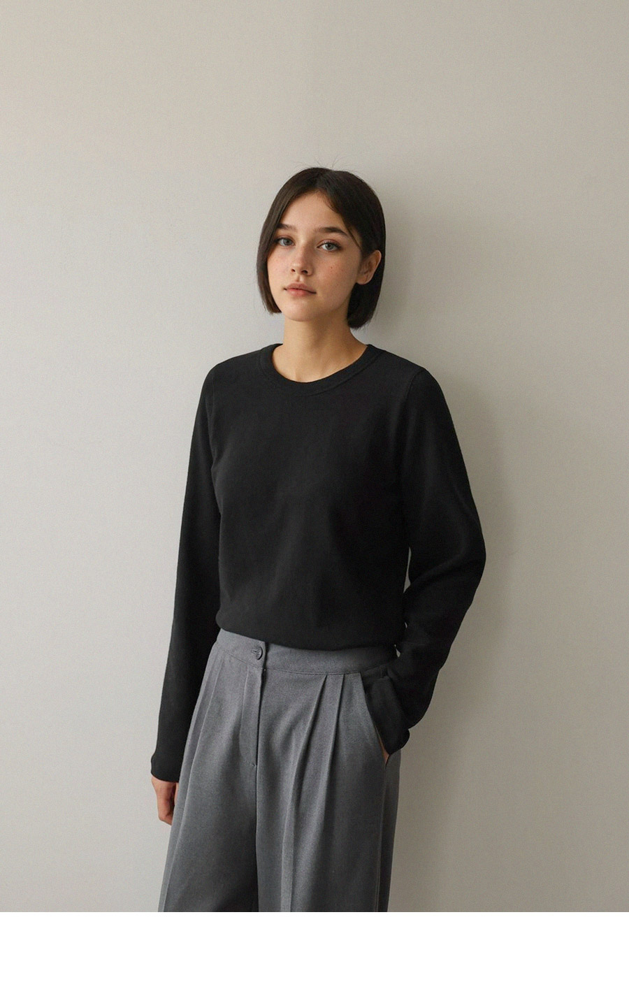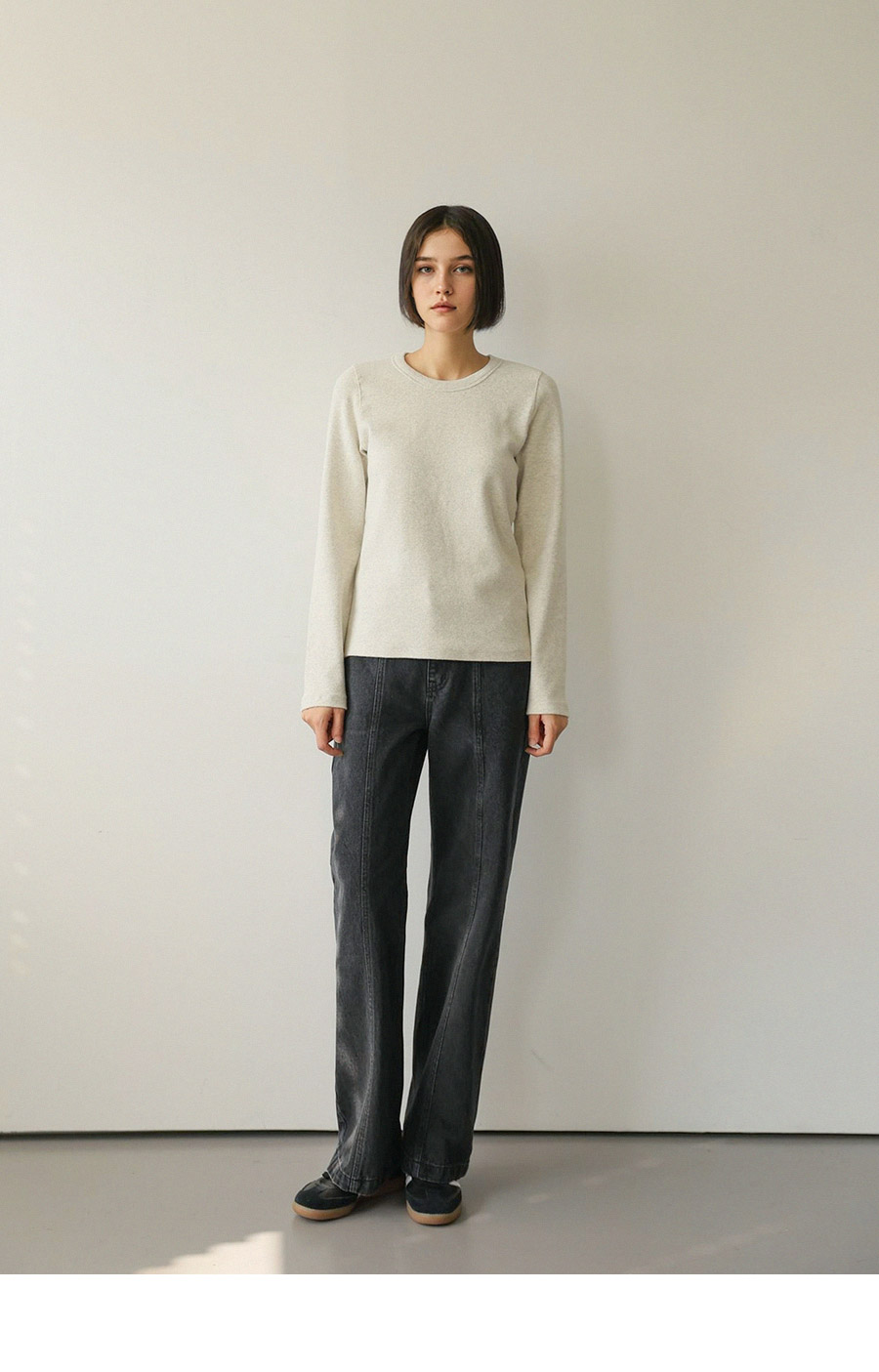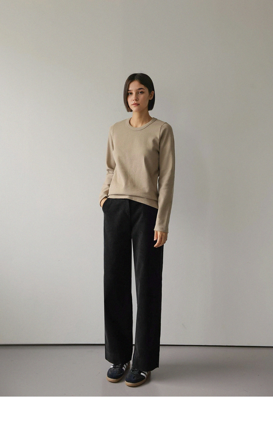 "포근한 무드의 크루넥 피치기모 티셔츠"