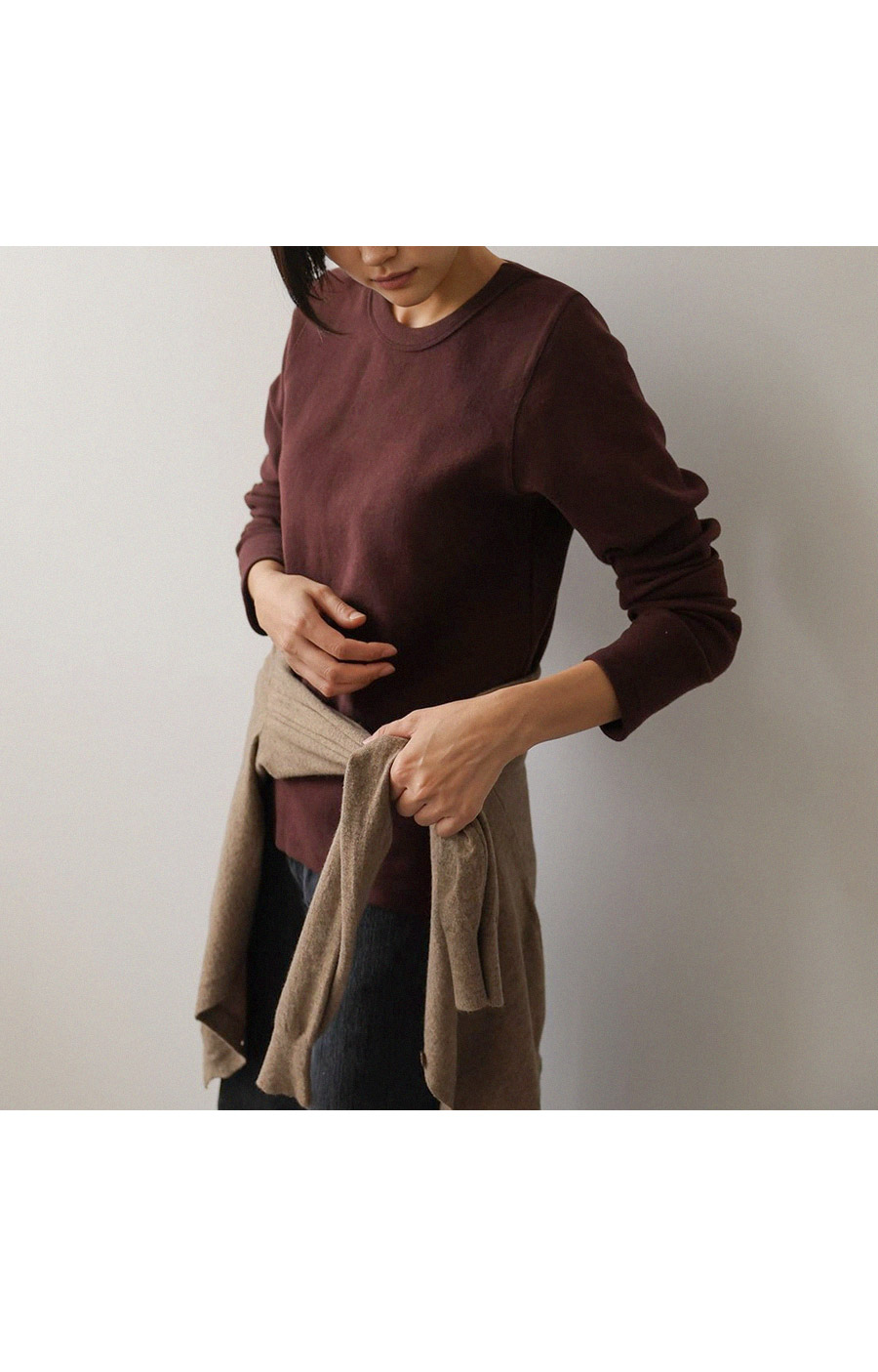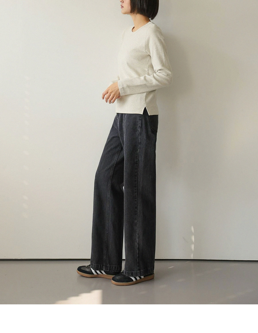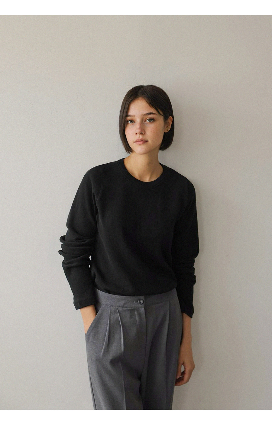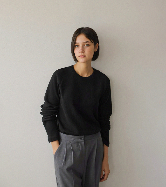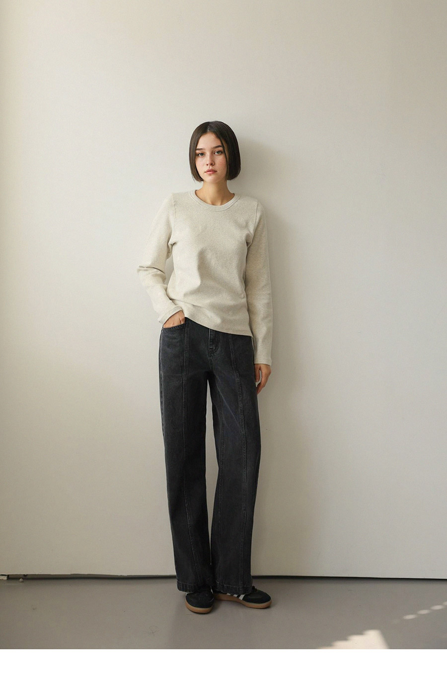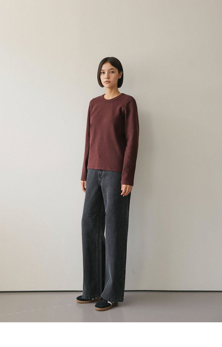 "포근한 무드의 크루넥 피치기모 티셔츠"