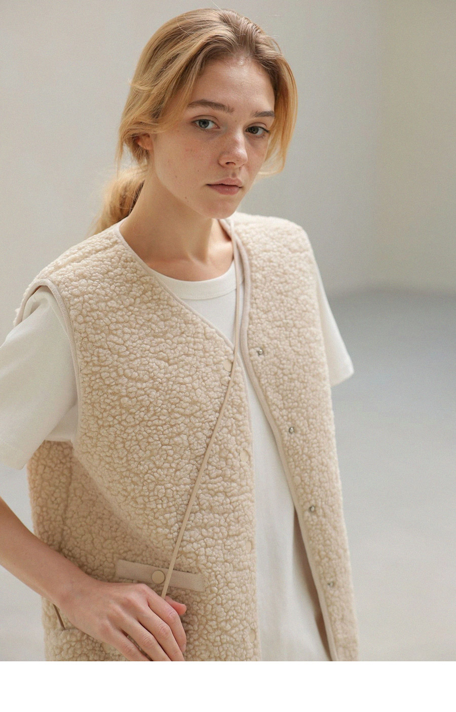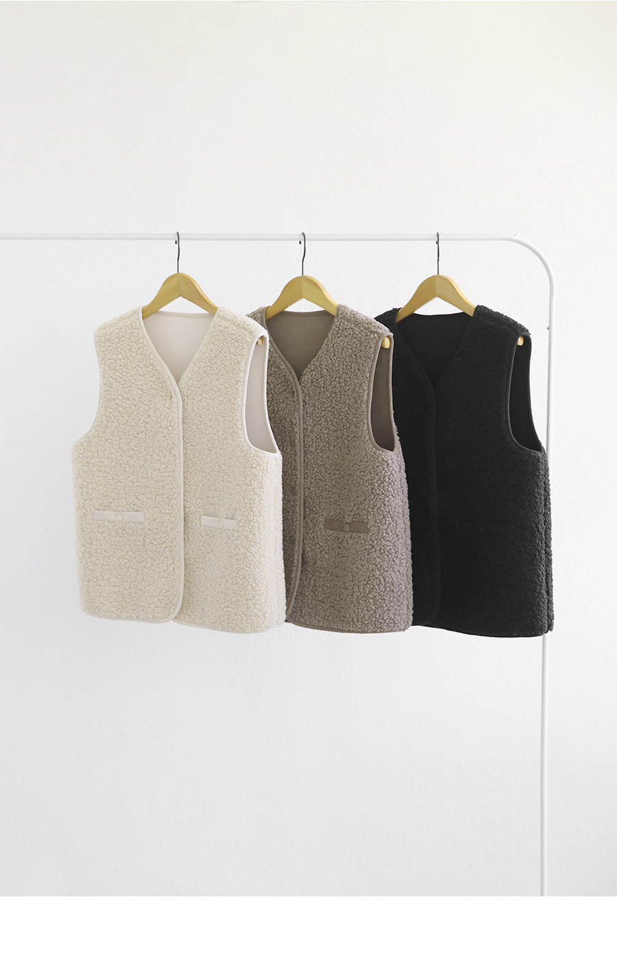 - 티셔츠, 니트 등 다양한 이너와 레이어드하기 좋은 캐주얼 베스트