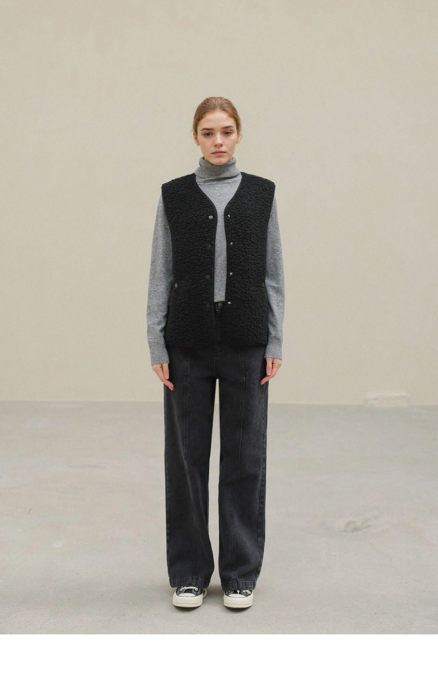 - 군더더기 없는 실루엣에 스냅버튼클로징으로 간편한 착용