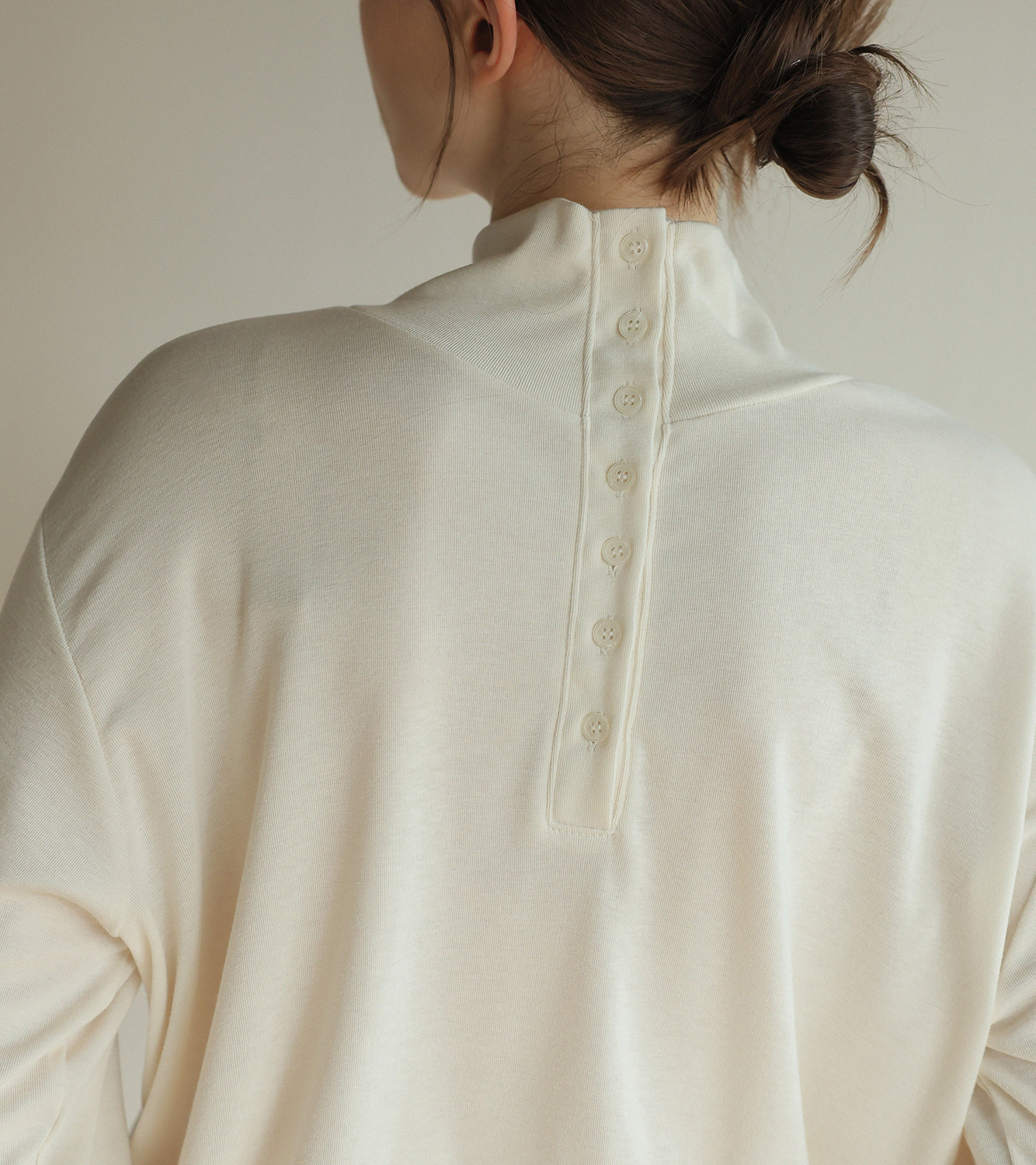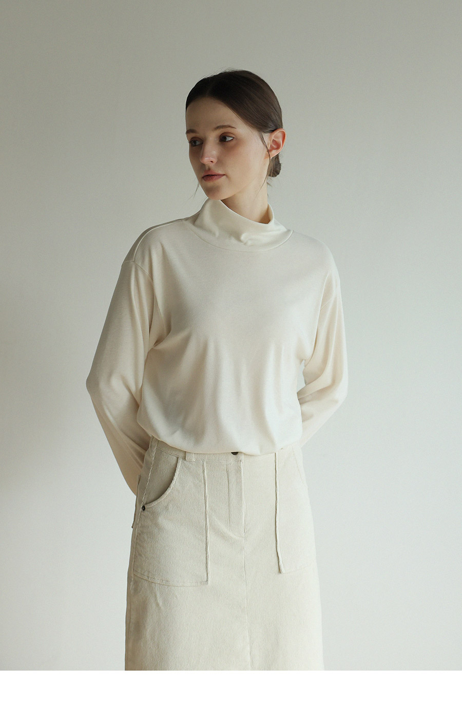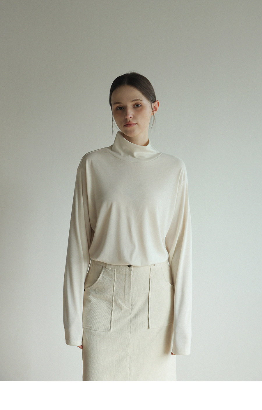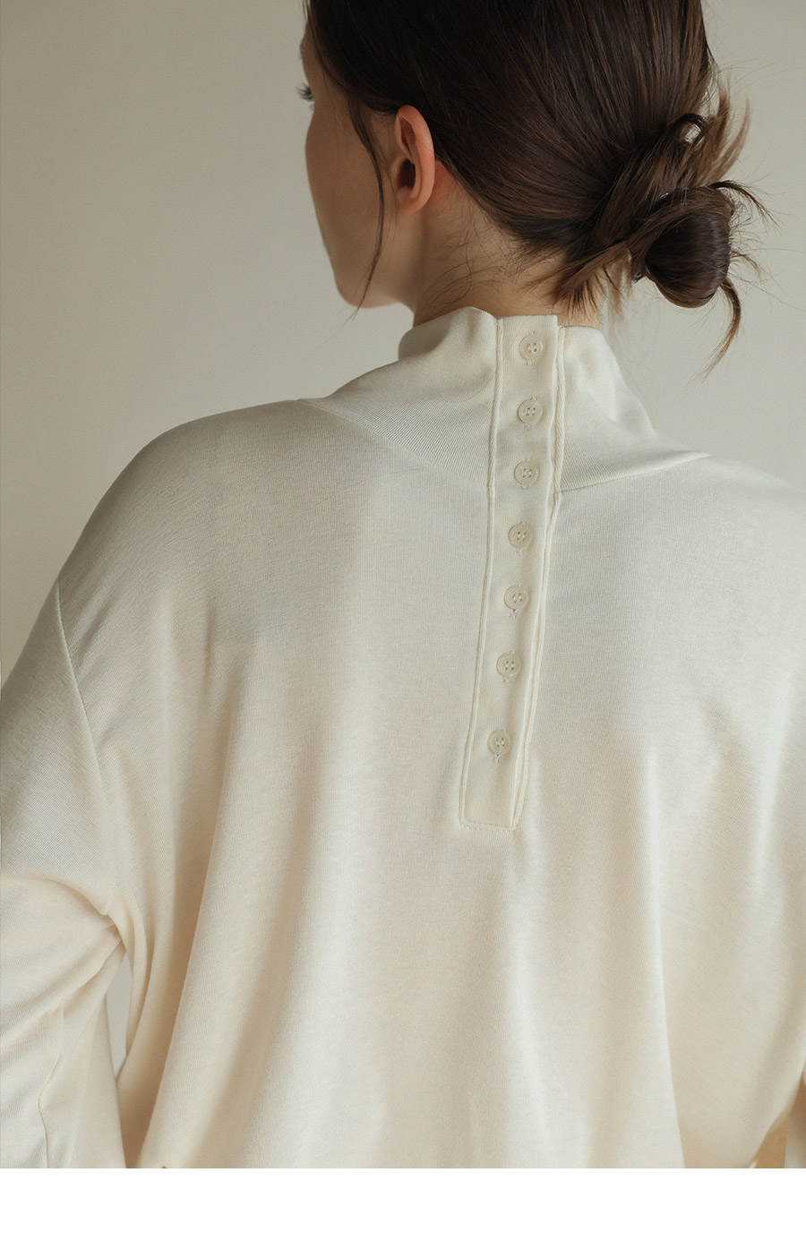 "앞 뒤로 다양하게 연출이 가능한 레이온 터틀넥"