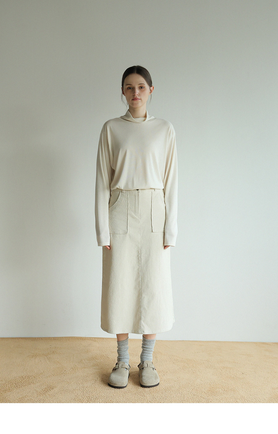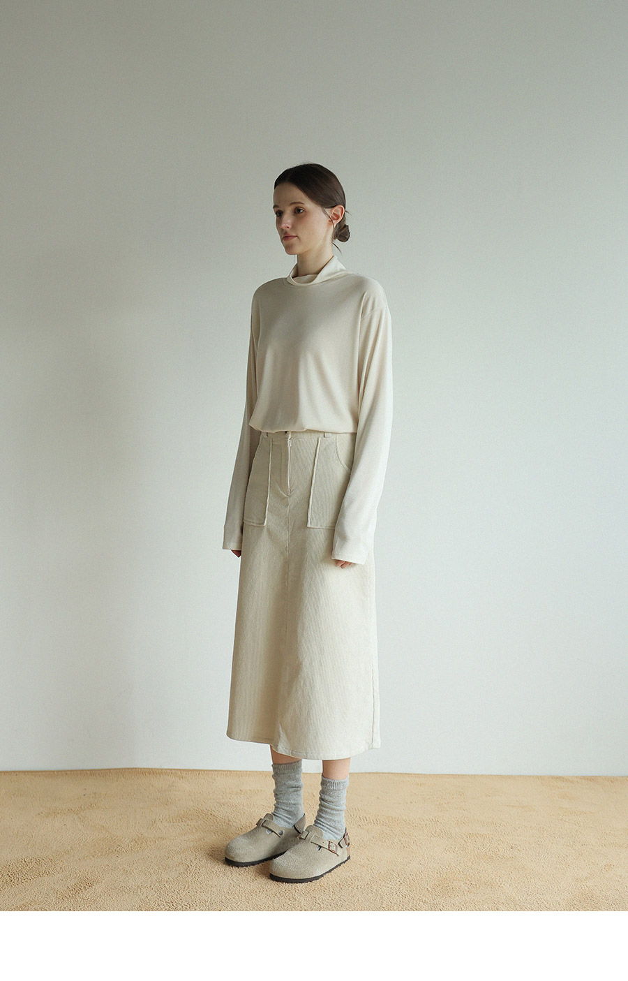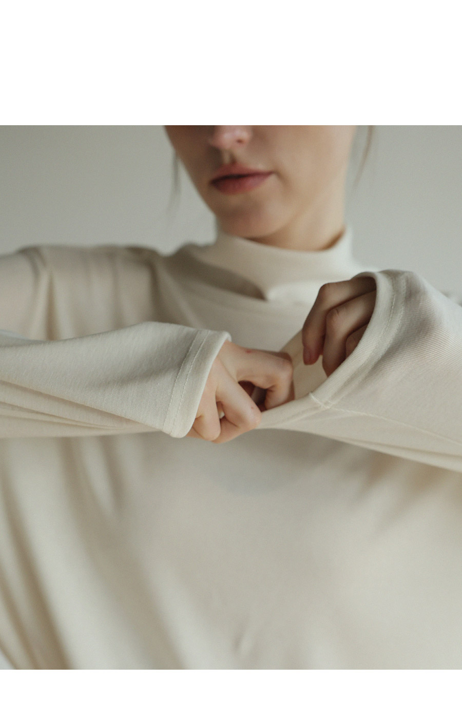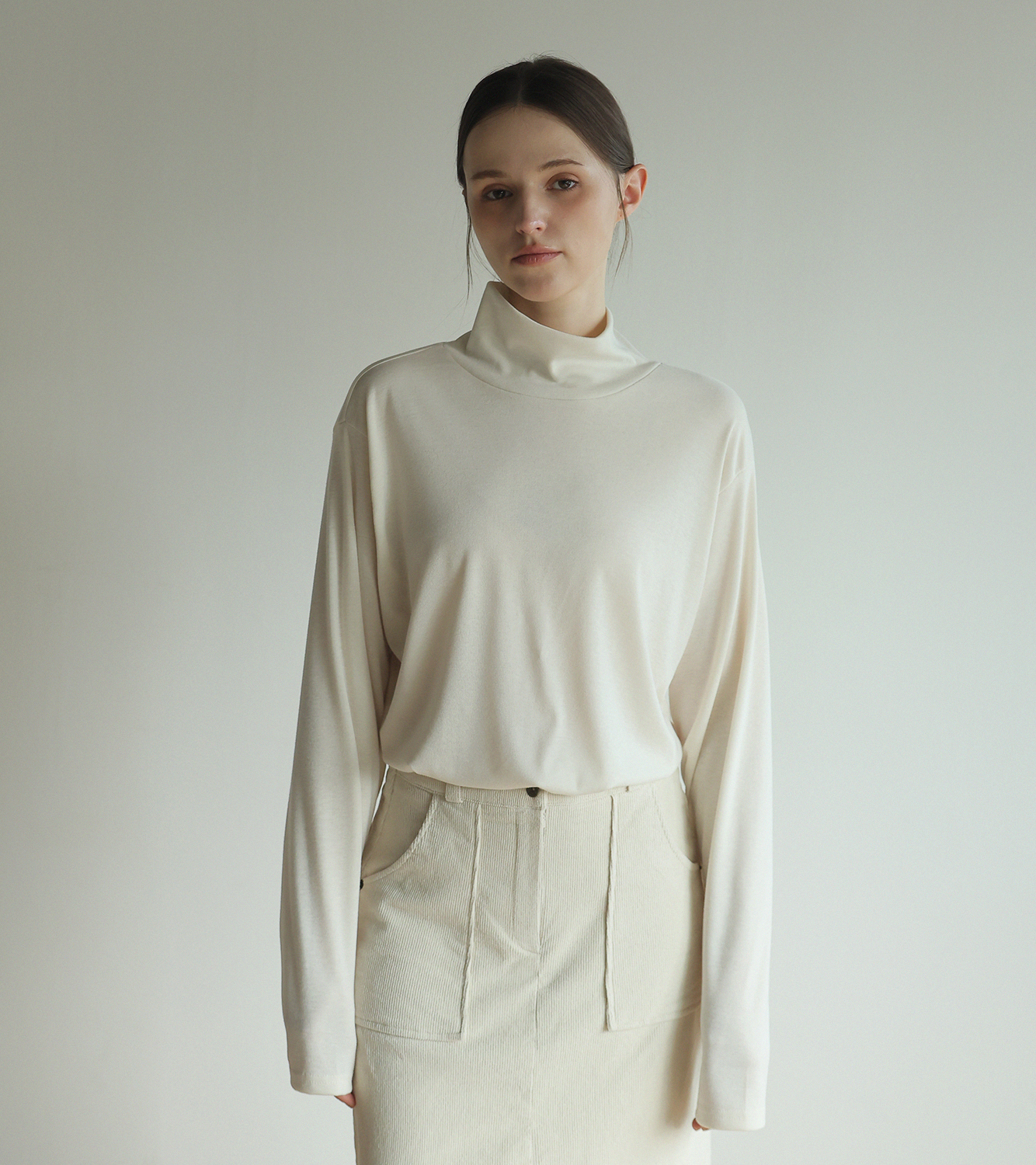 "앞 뒤로 다양하게 연출이 가능한 레이온 터틀넥"