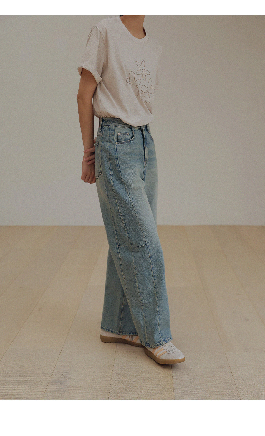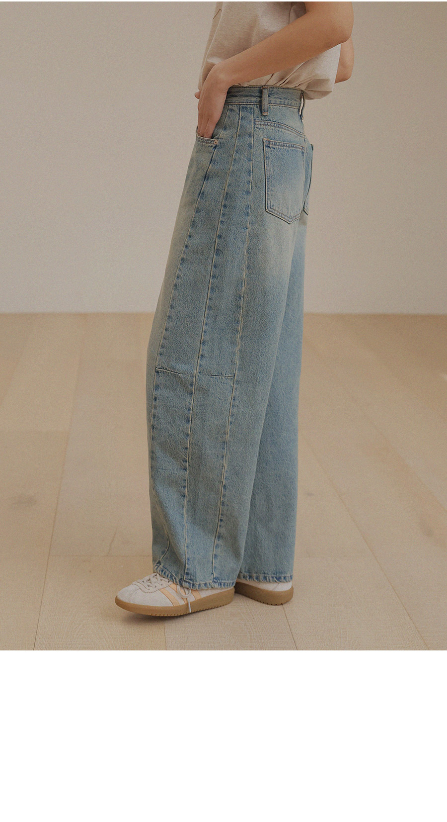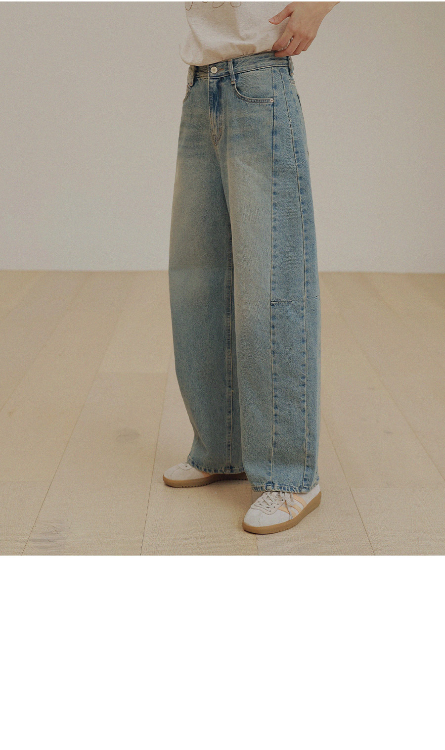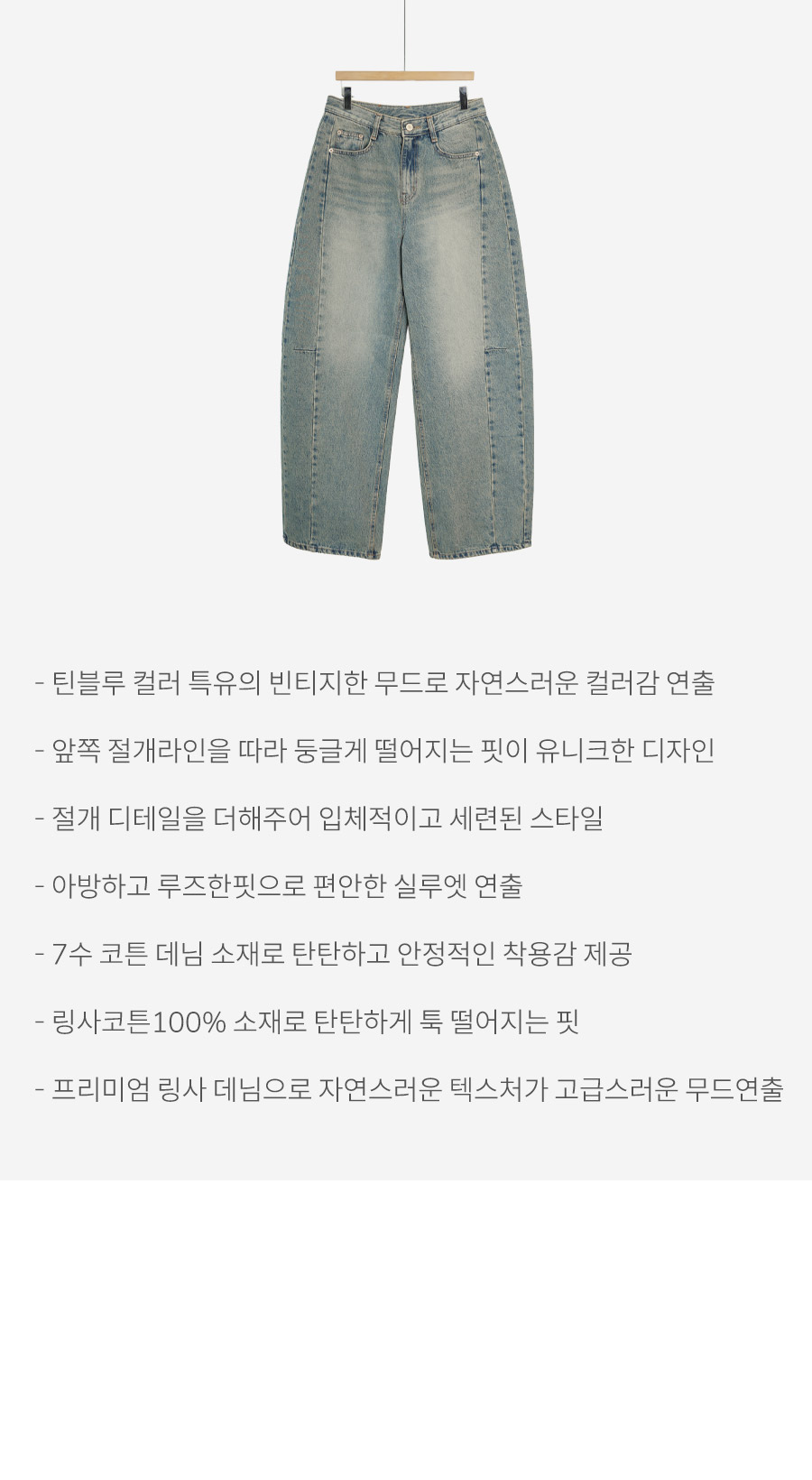 - 프리미엄 링사 데님으로 자연스러운 텍스처가 고급스러운 무드연출