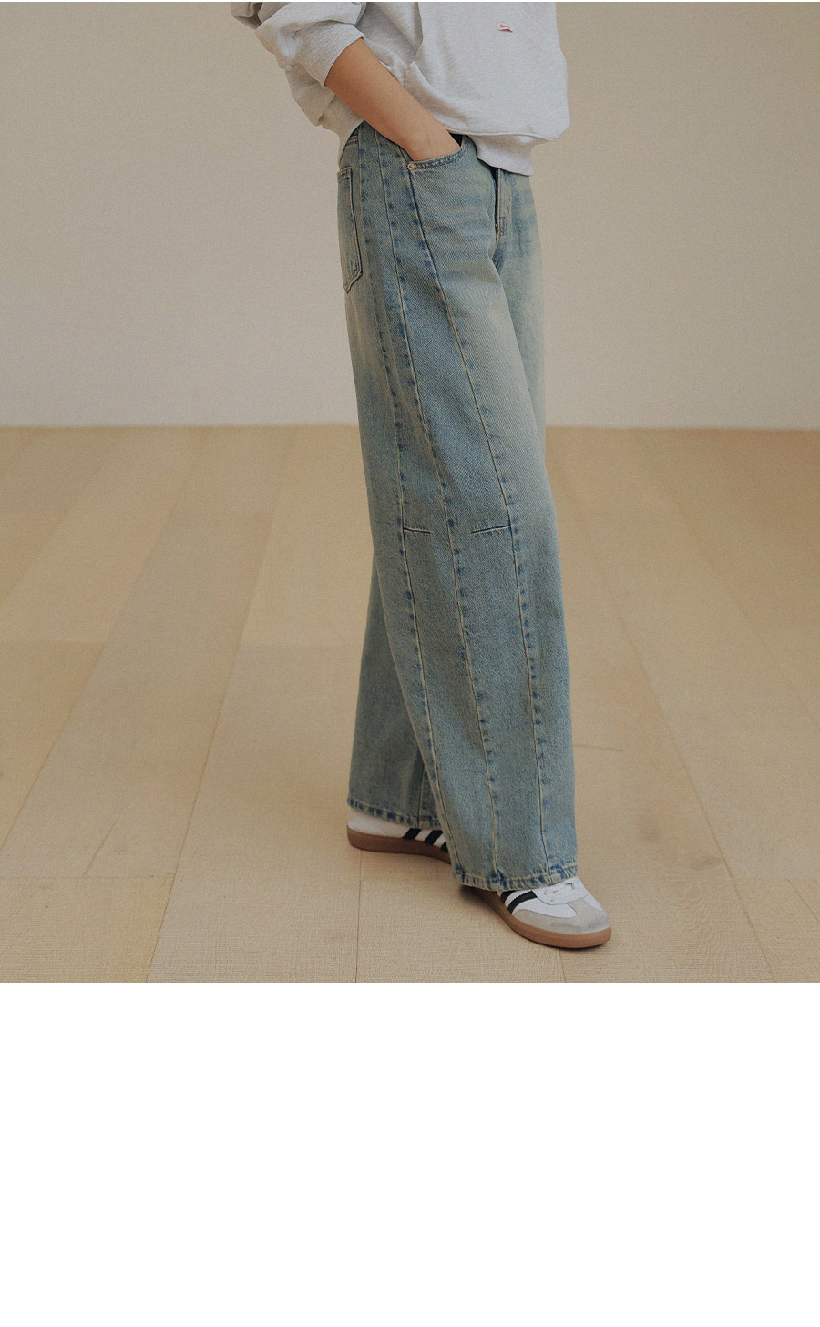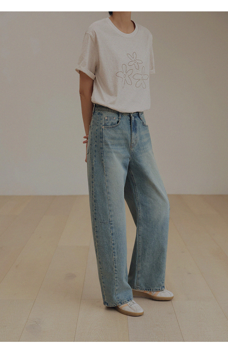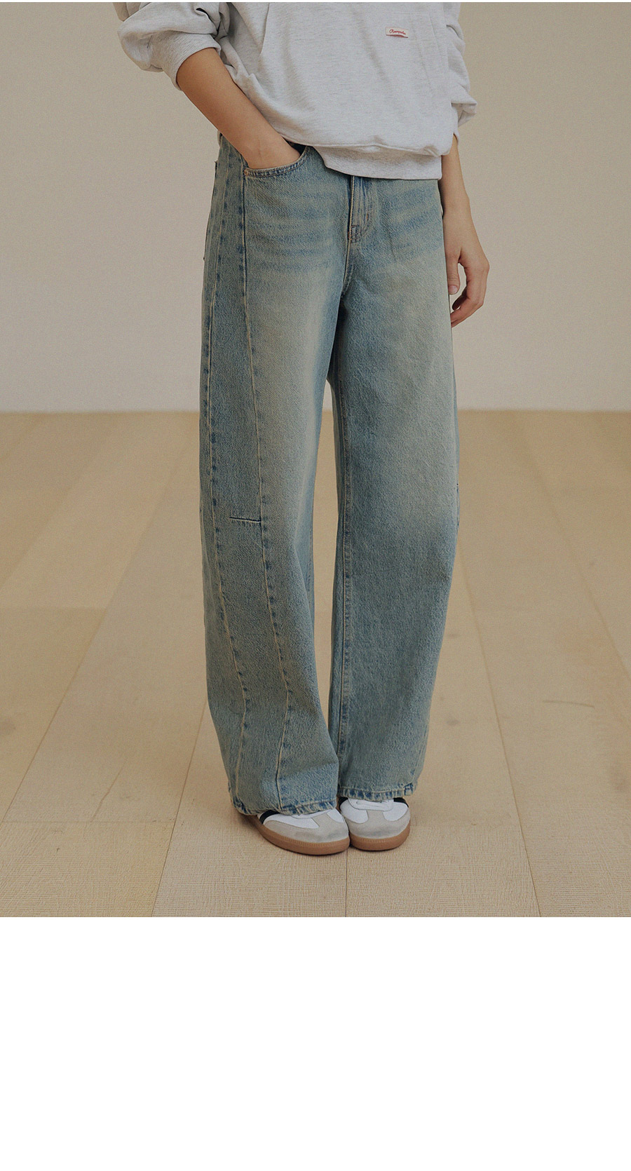 - 프리미엄 링사 데님으로 자연스러운 텍스처가 고급스러운 무드연출