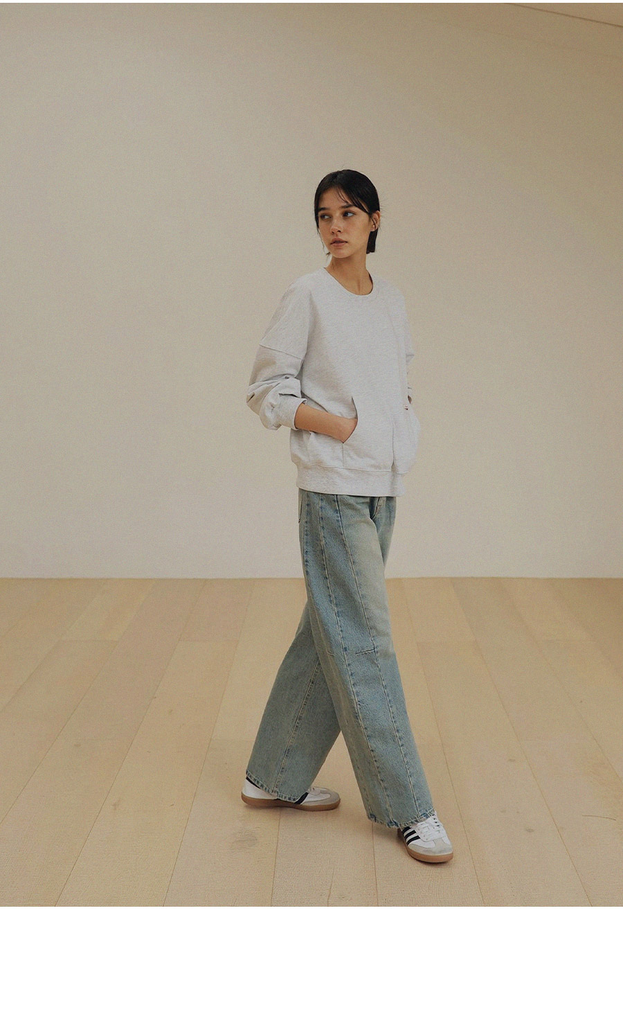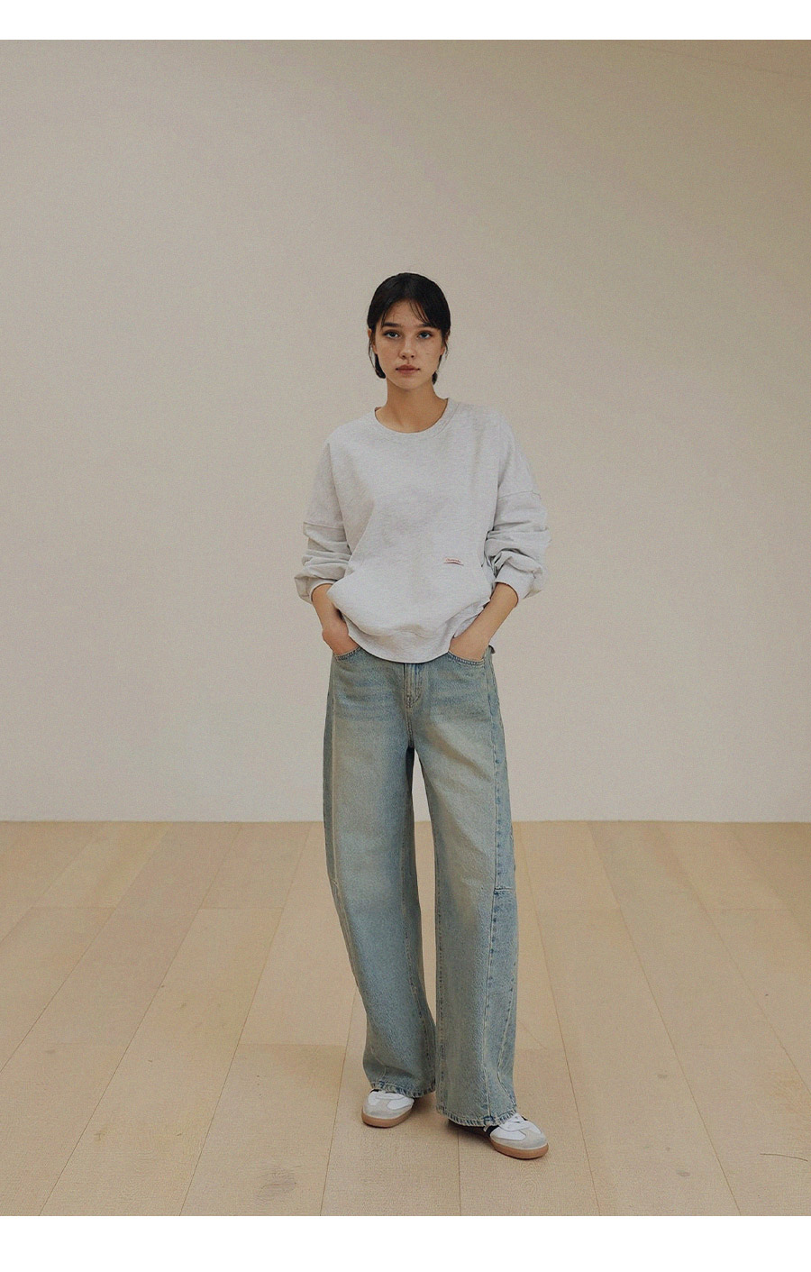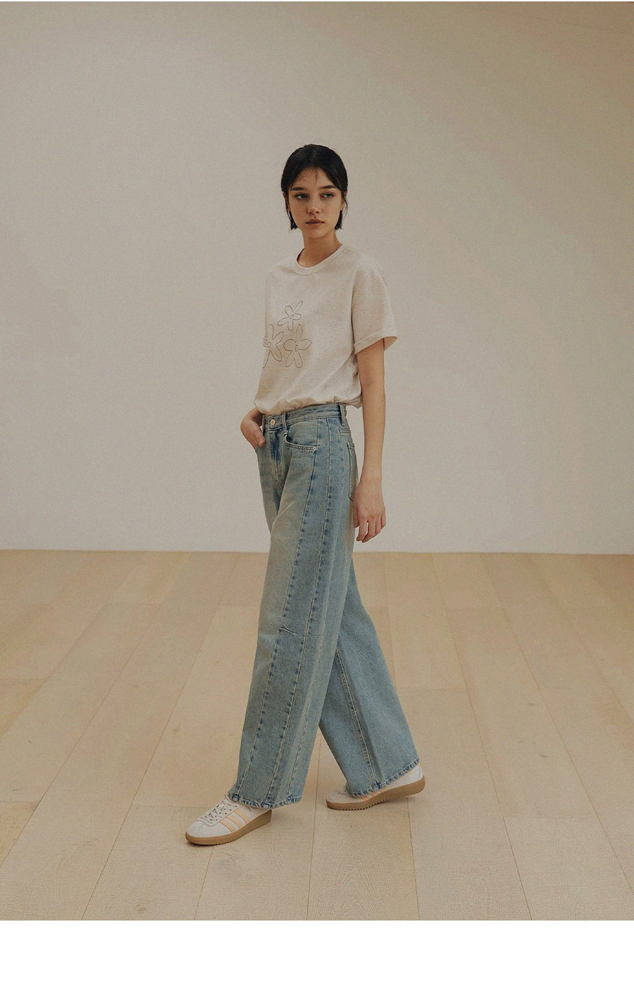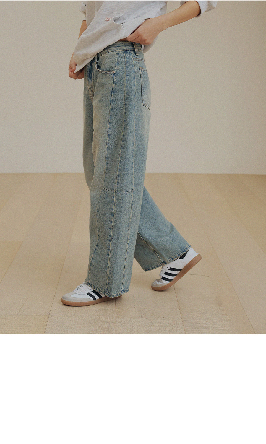 - 프리미엄 링사 데님으로 자연스러운 텍스처가 고급스러운 무드연출
