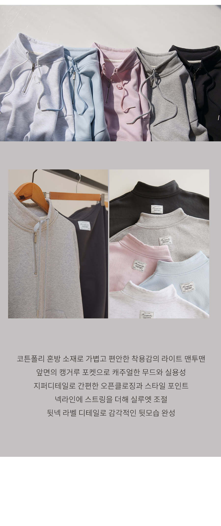 - 코튼폴리 혼방 소재로 가볍고편안한 착용감의 라이트 맨투맨