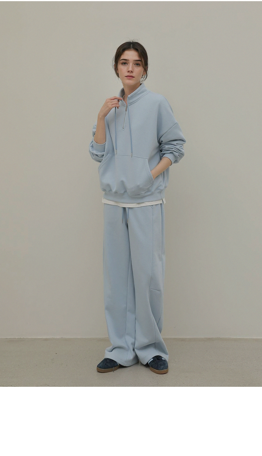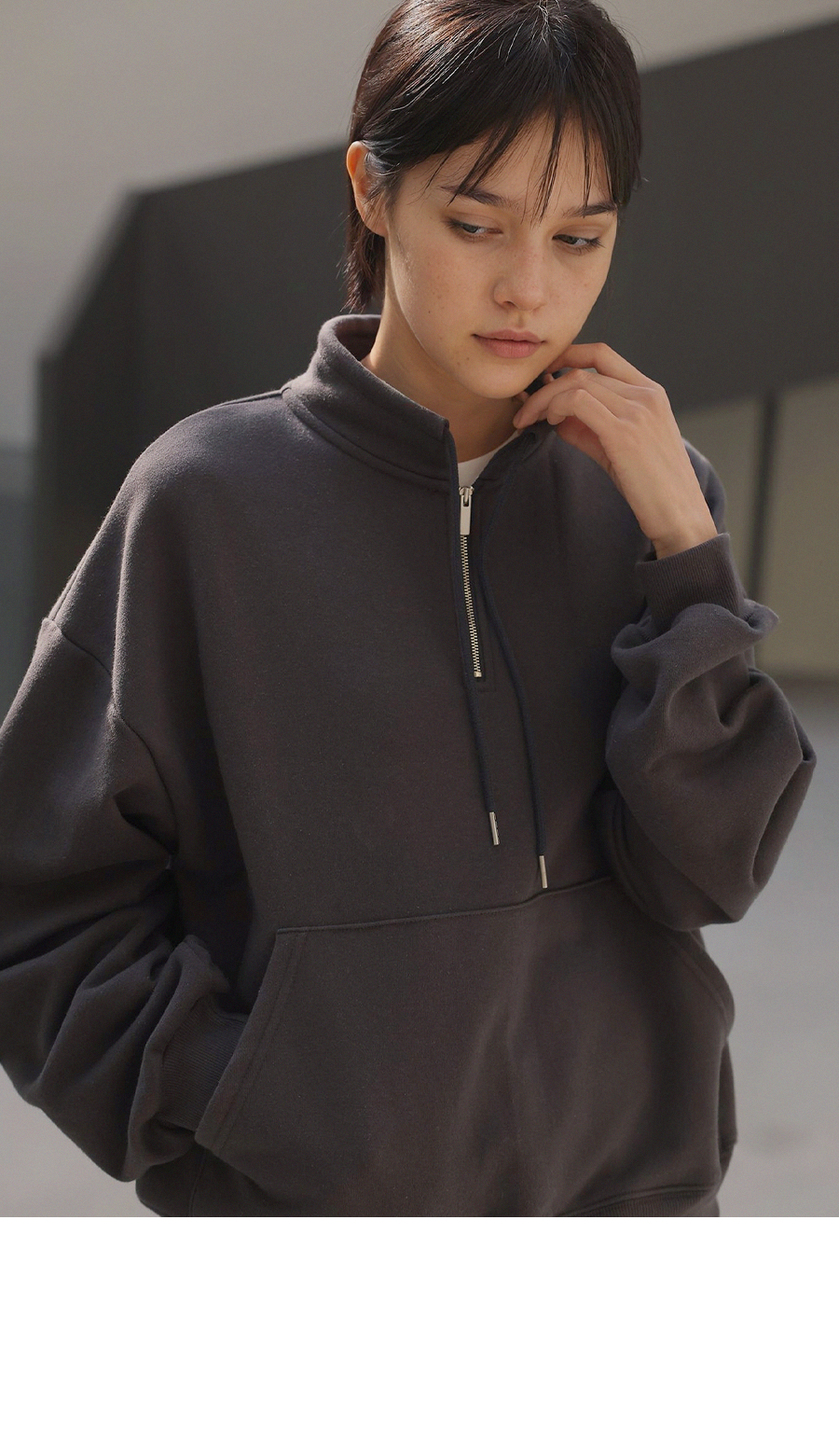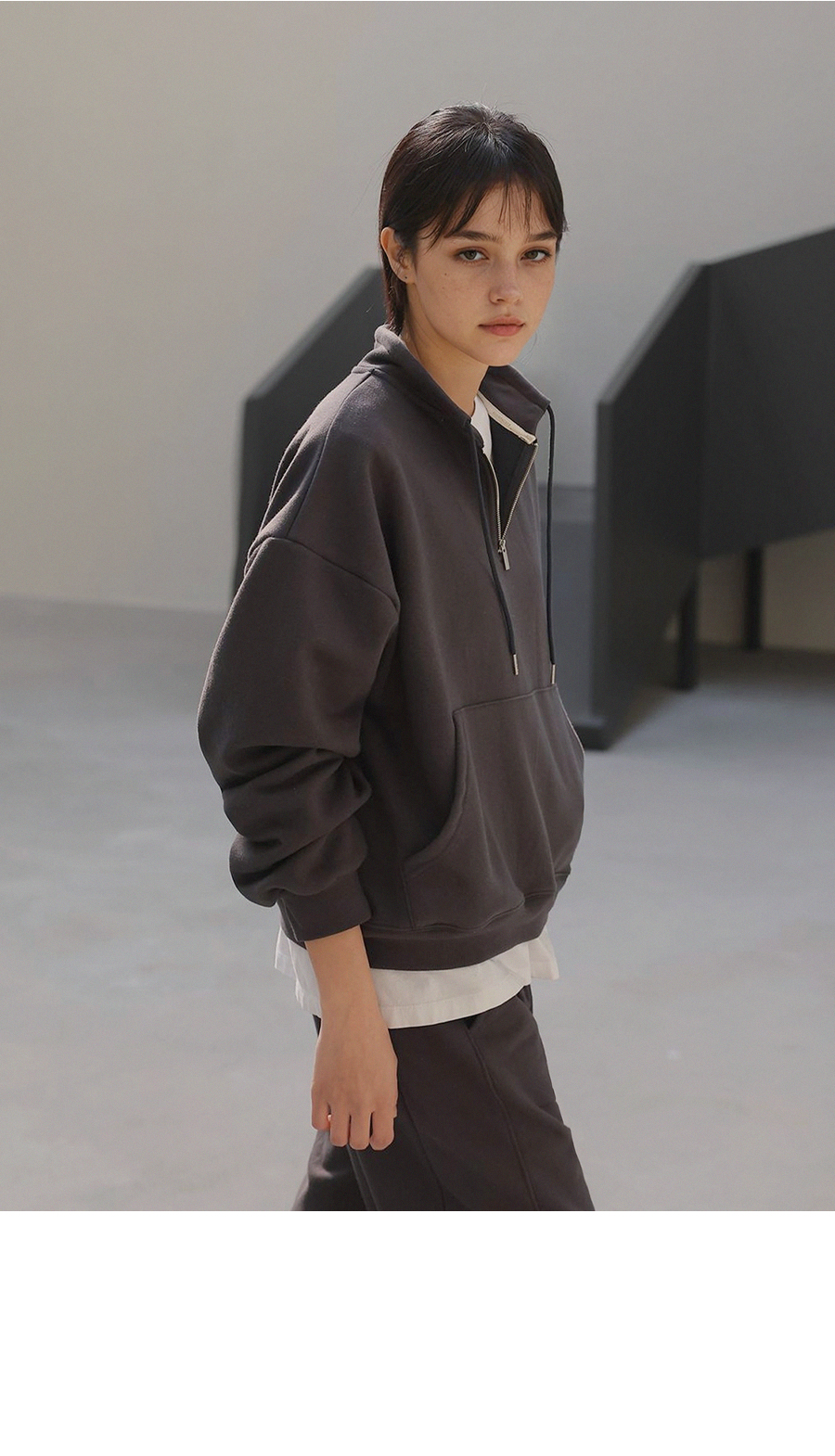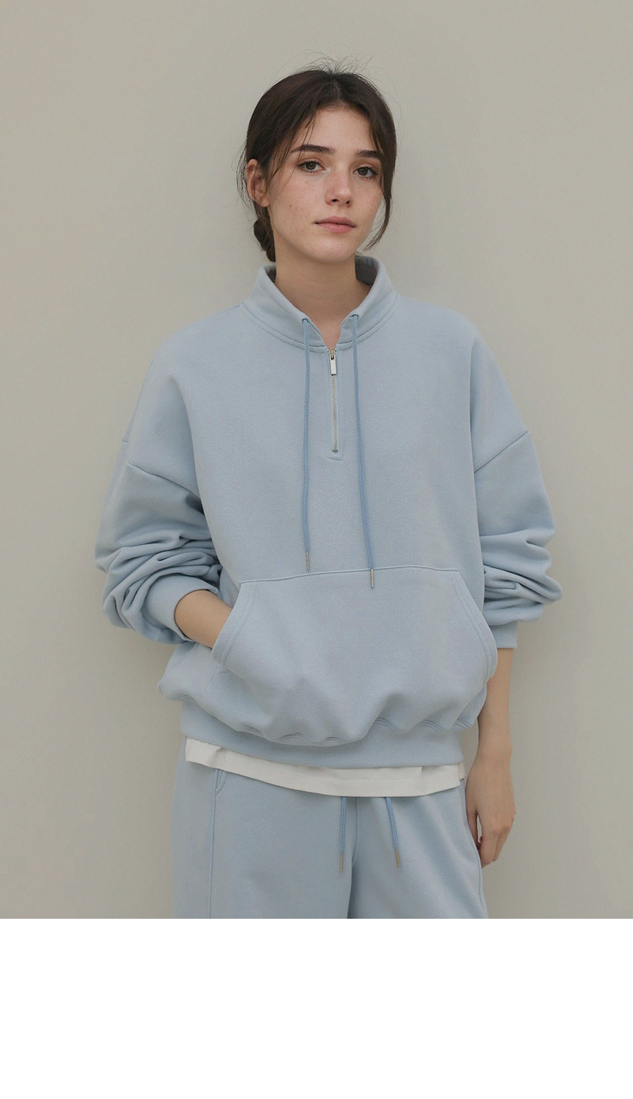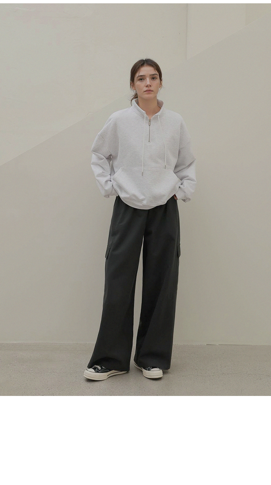 - 앞면의 캥거루 포켓으로 캐주얼한 무드와 실용성