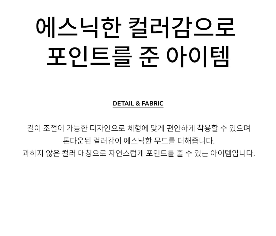 - 톤다운된 컬러감이 에스닉한 무드를 더해줍니다.