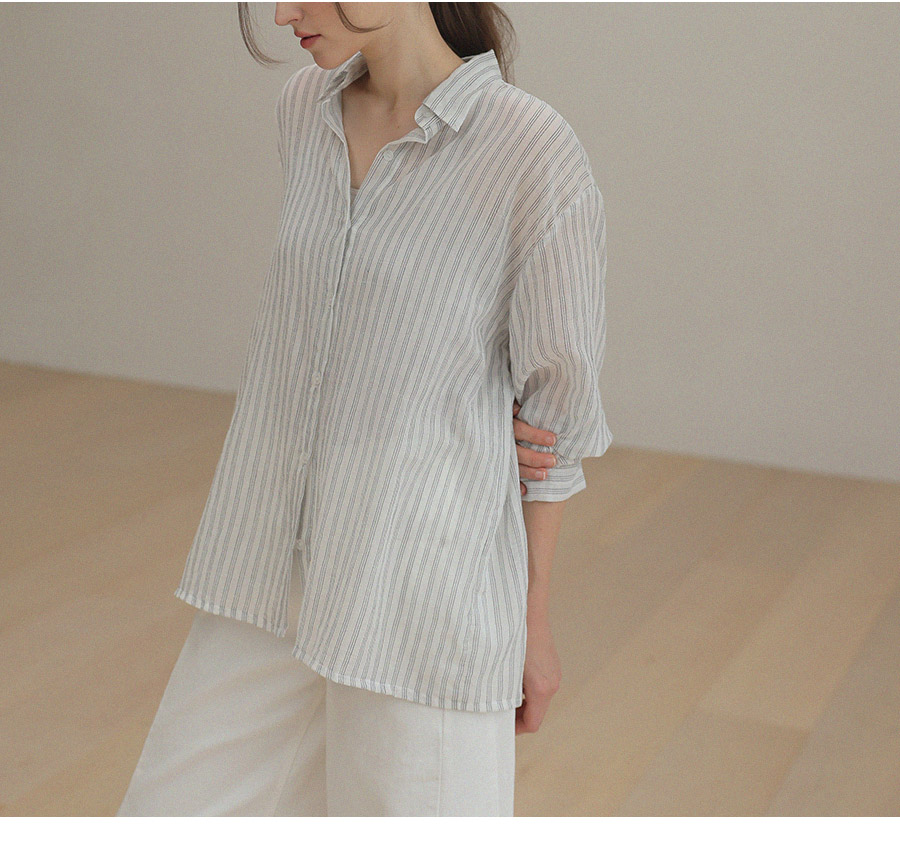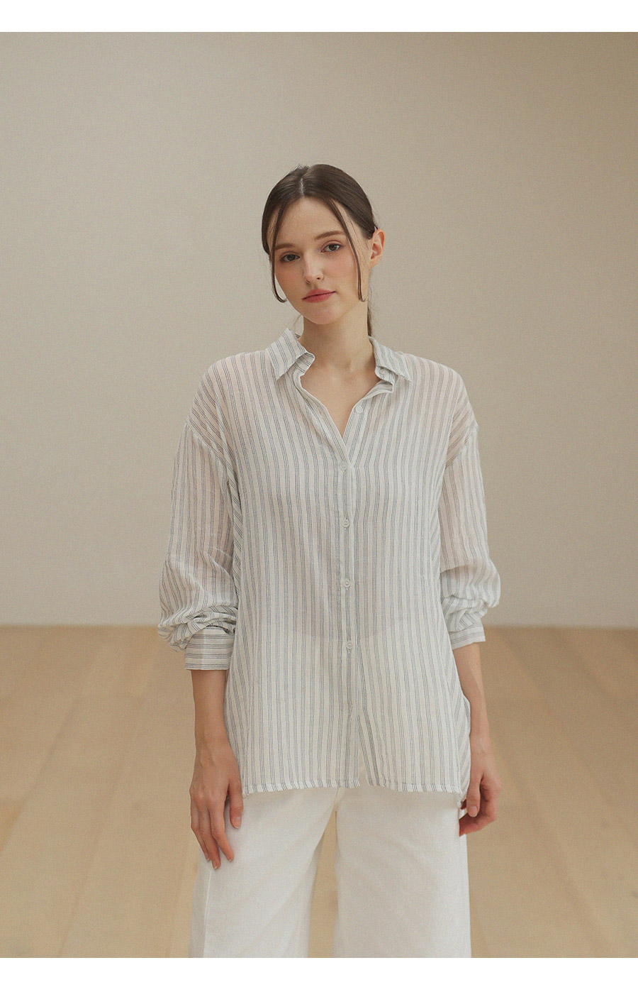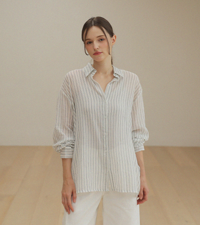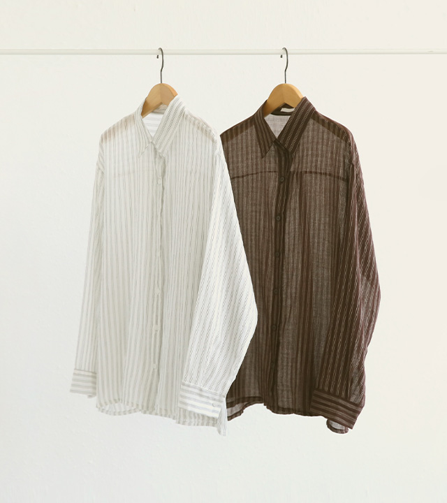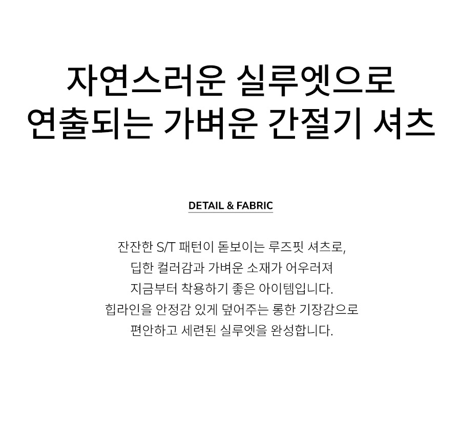 "자연스러운 실루엣으로 연출되는 가벼운 간절기 셔츠"