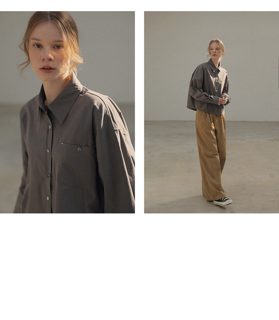 "미니멀한 디자인 바텍 포인트 크롭 코튼 셔츠"