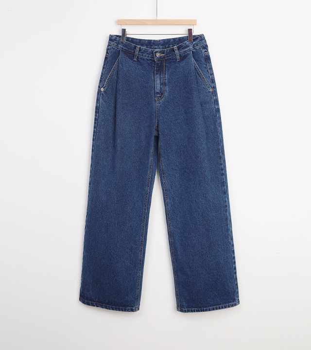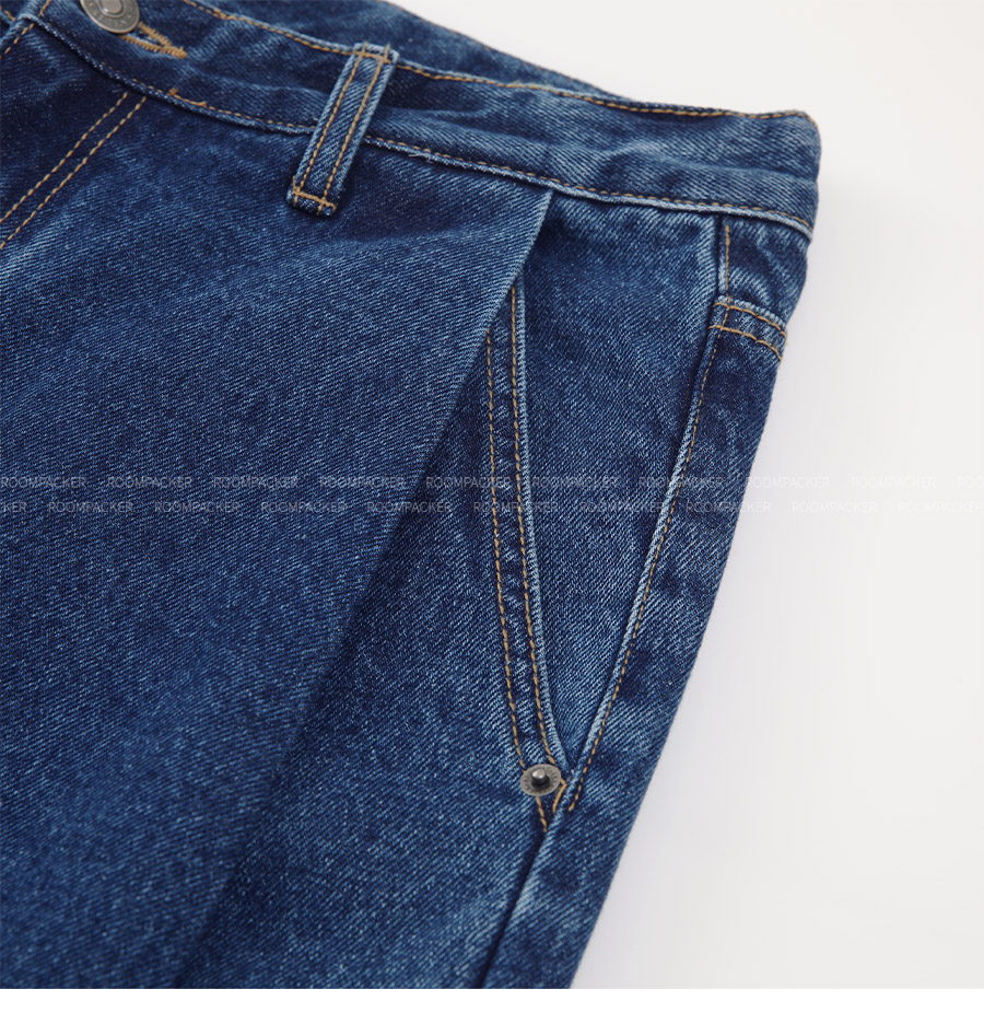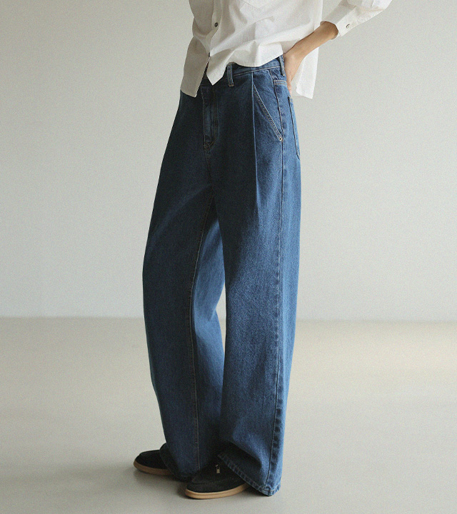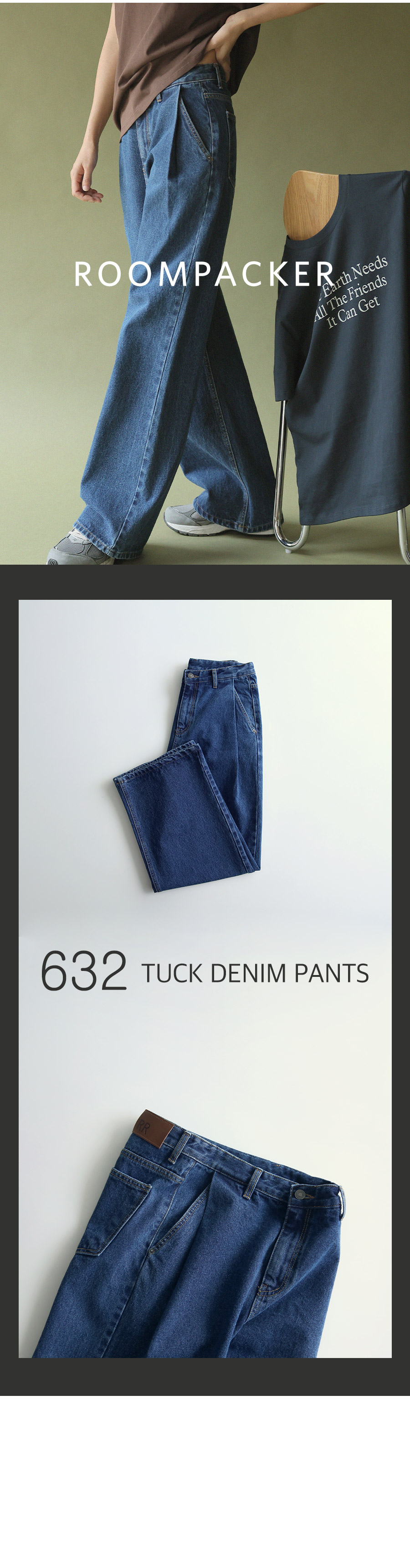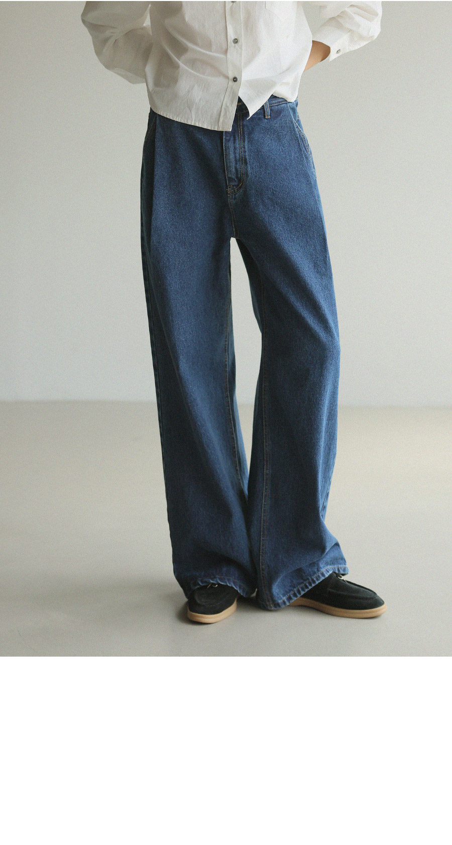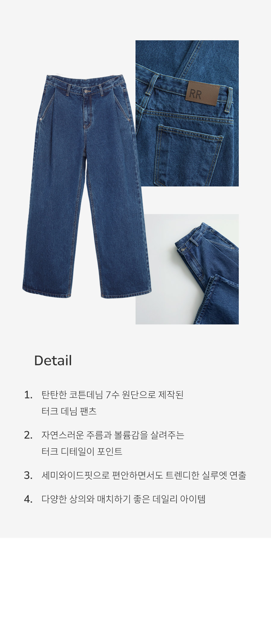 - 탄탄한 코튼데님 7수 원단으로제작된 터크 데님 팬츠