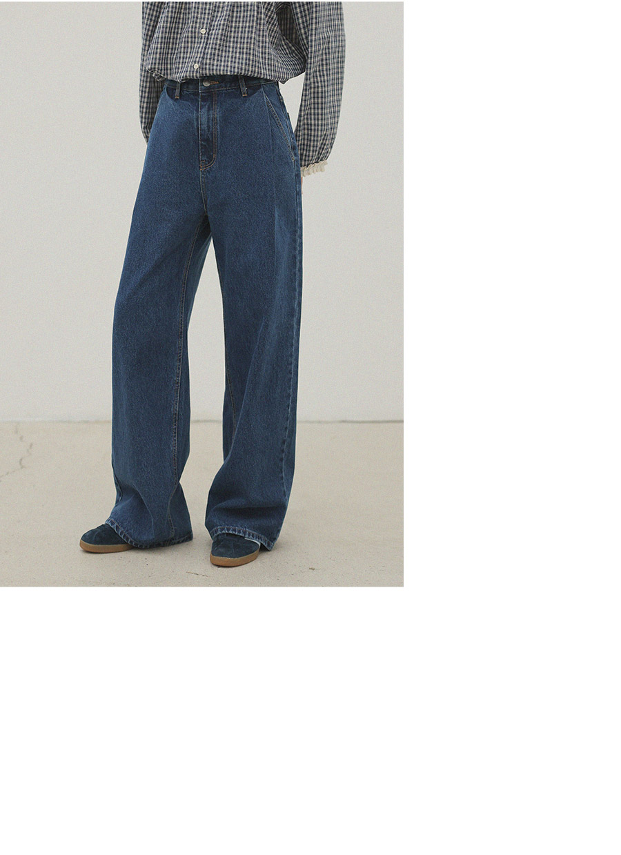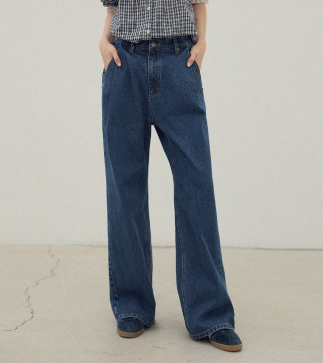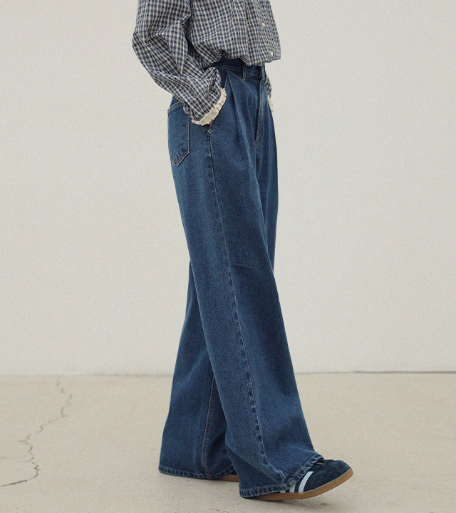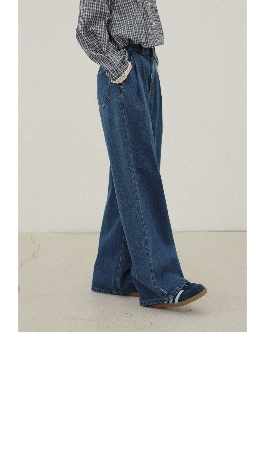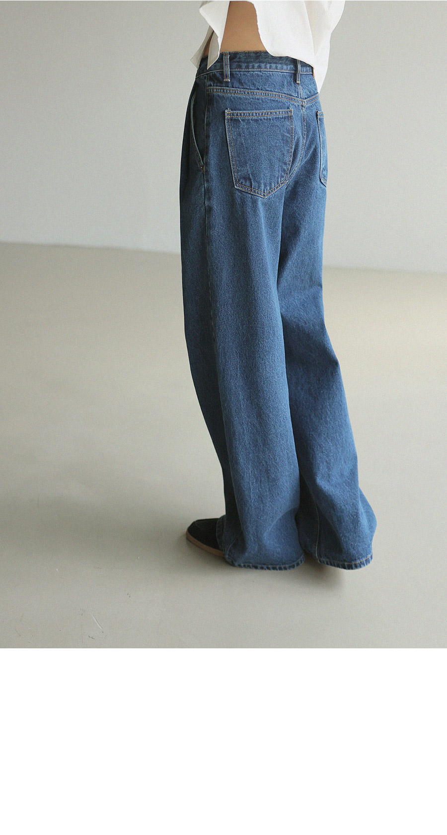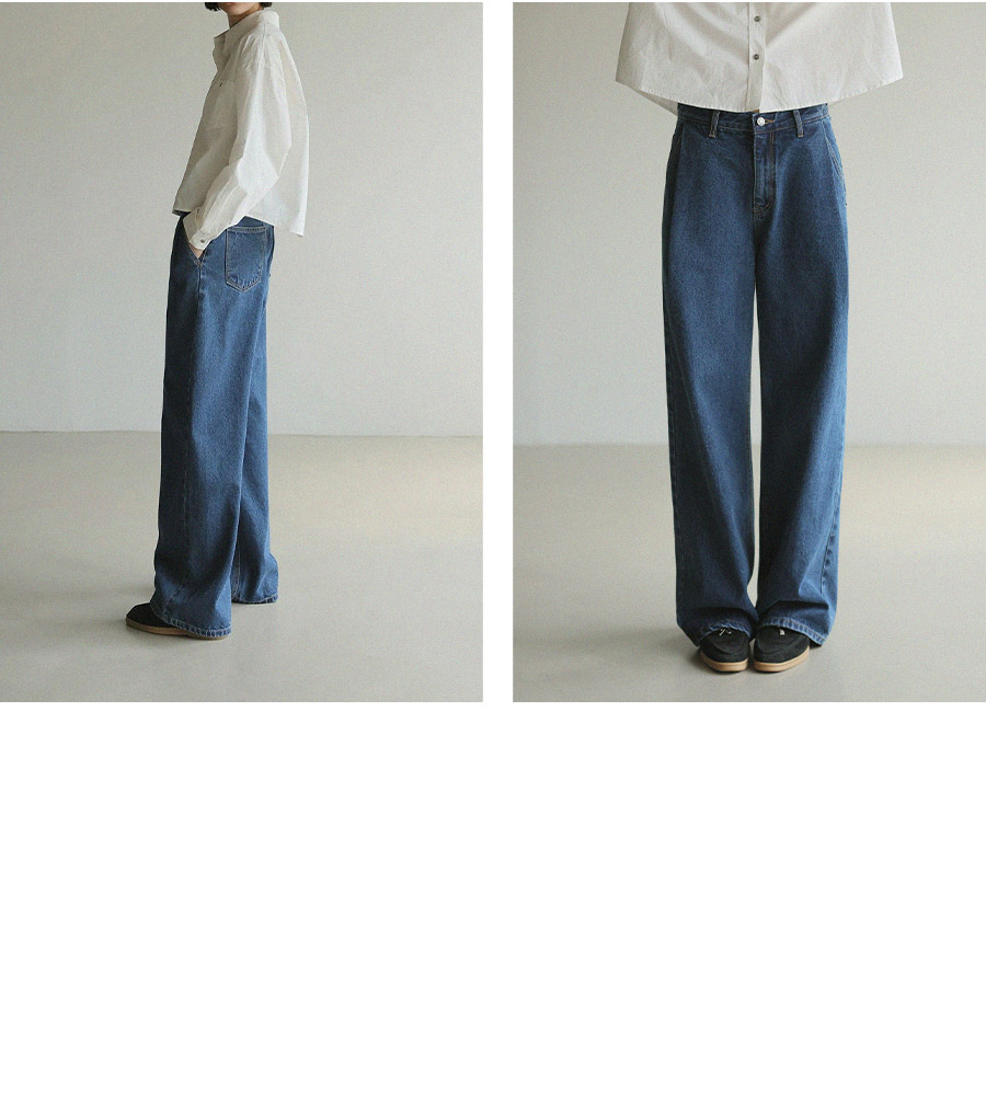 - 탄탄한 코튼데님 7수 원단으로제작된 터크 데님 팬츠
