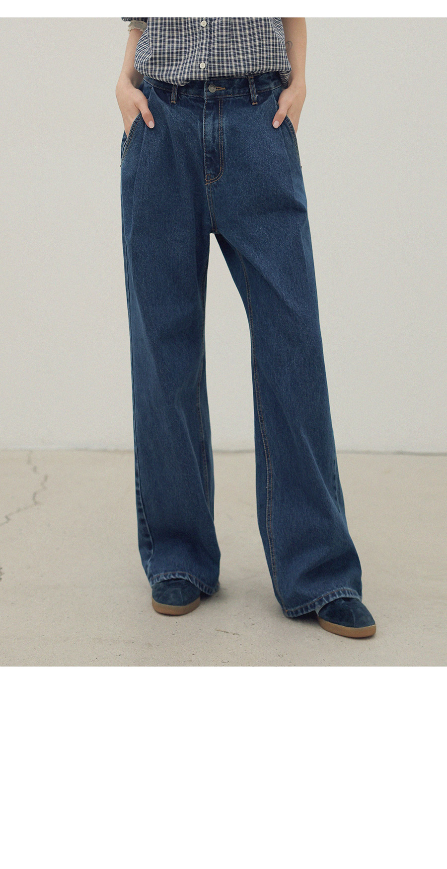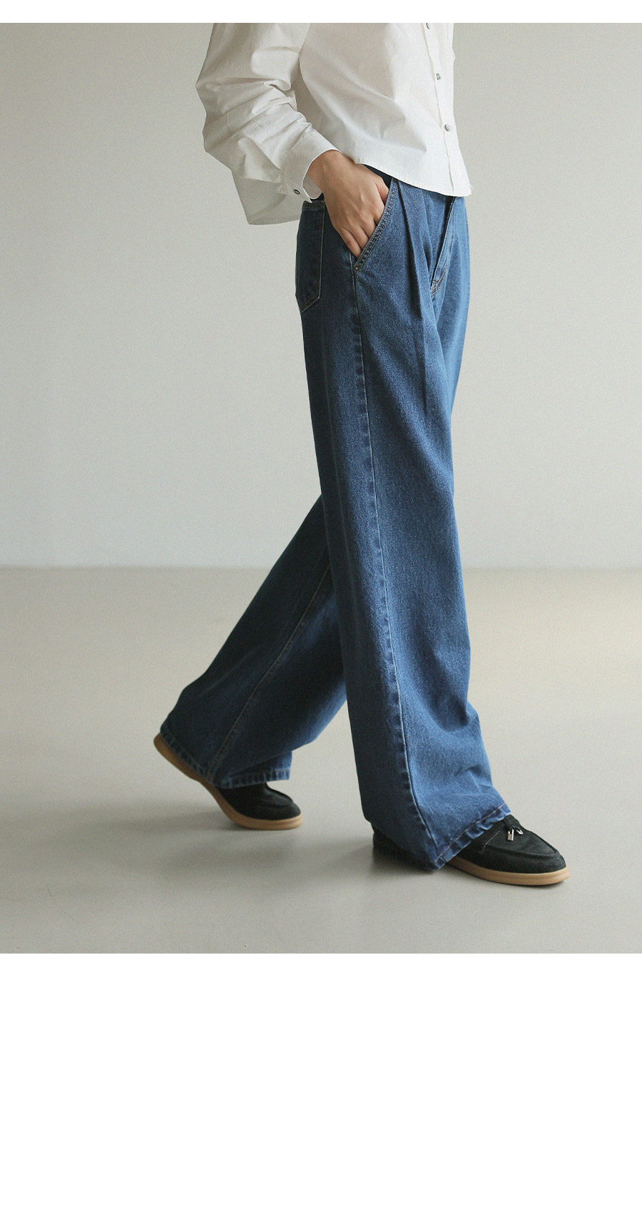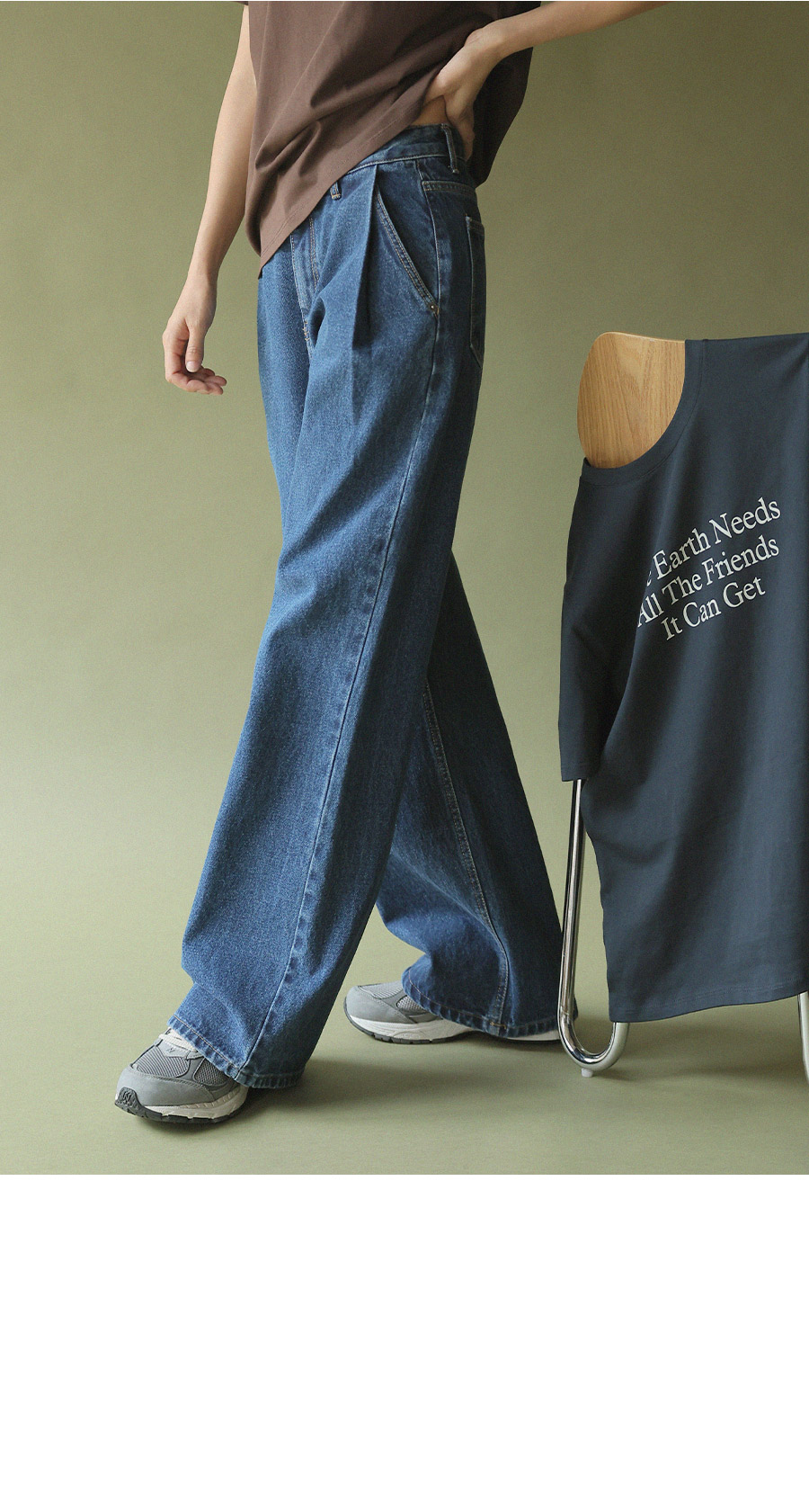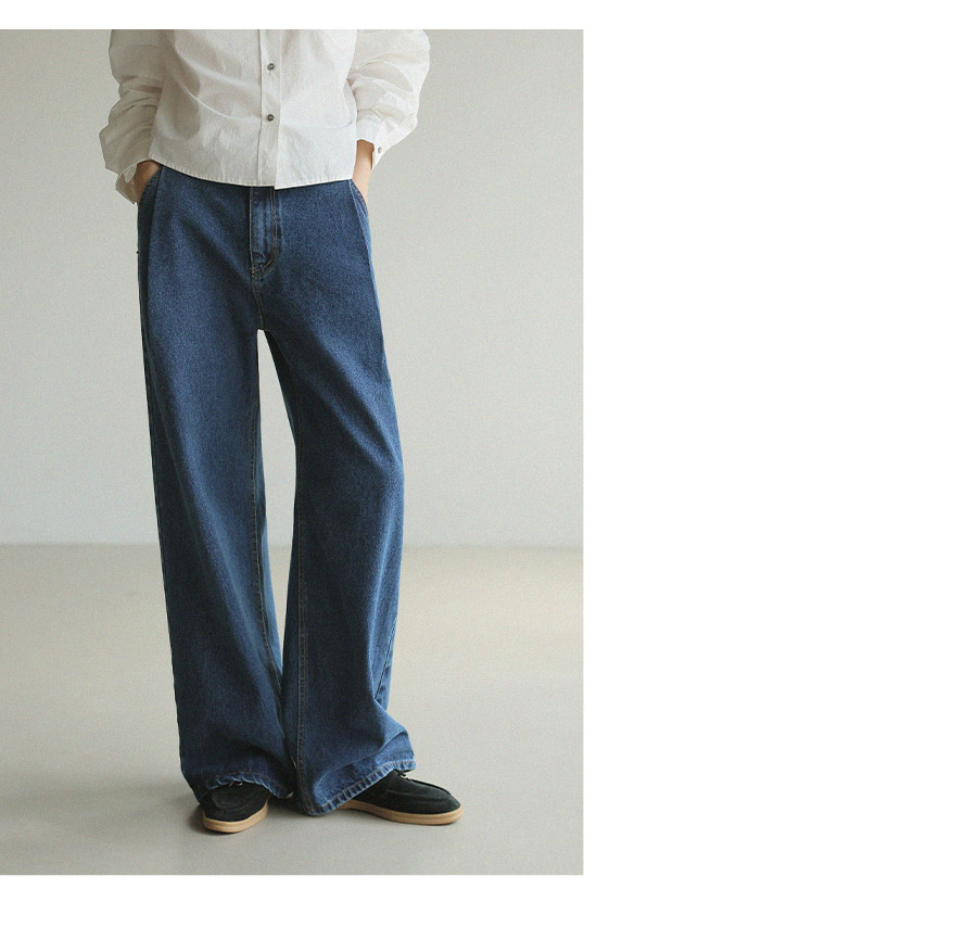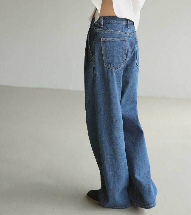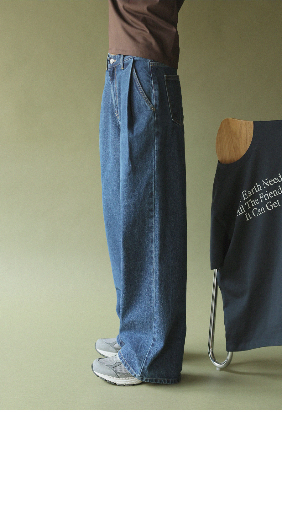 - 탄탄한 코튼데님 7수 원단으로제작된 터크 데님 팬츠