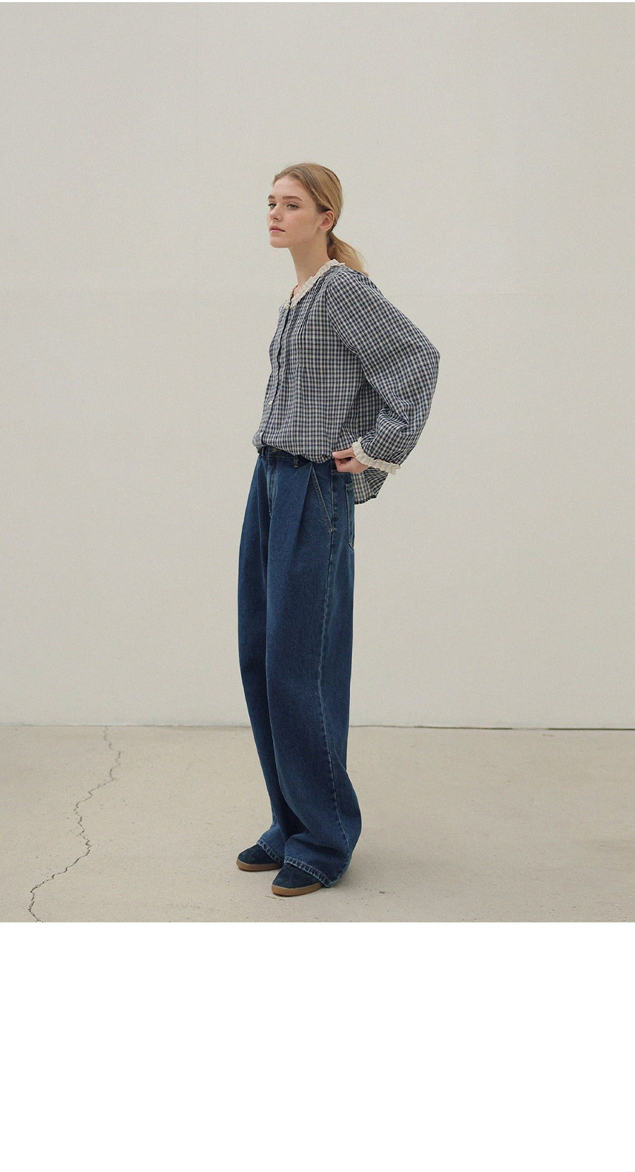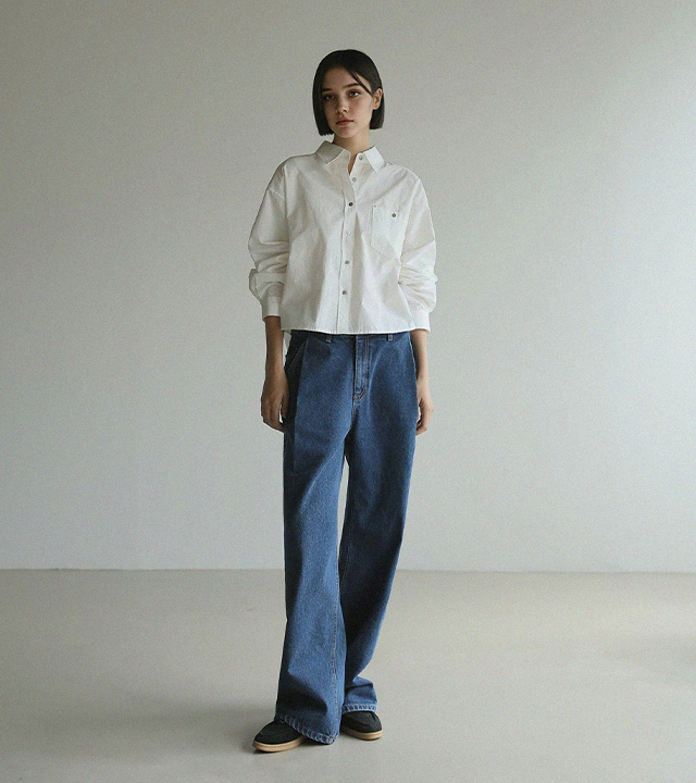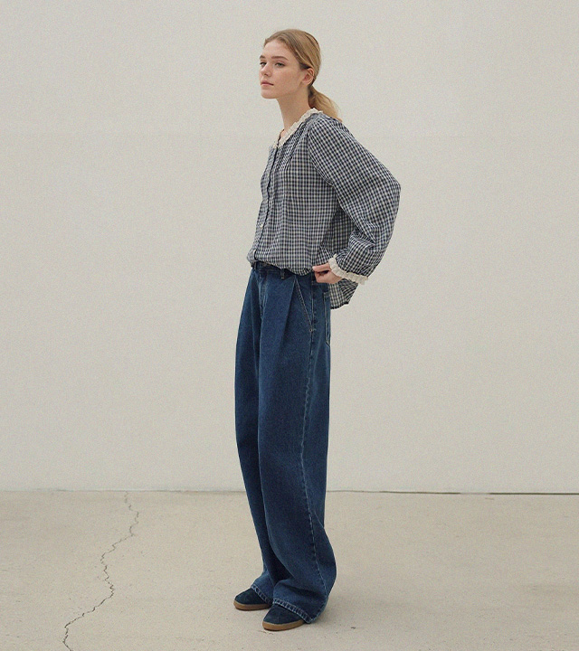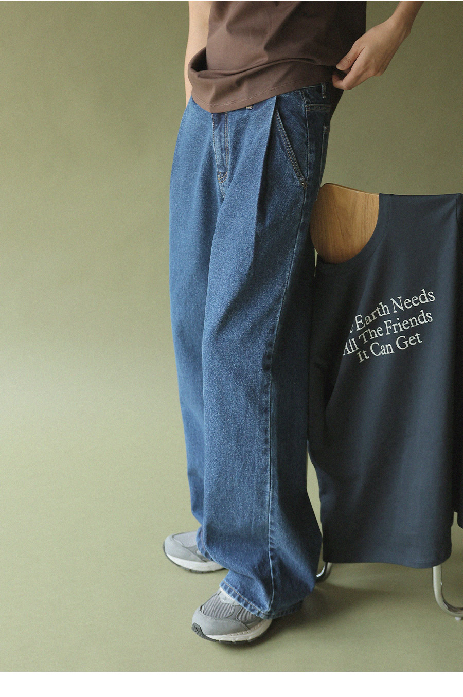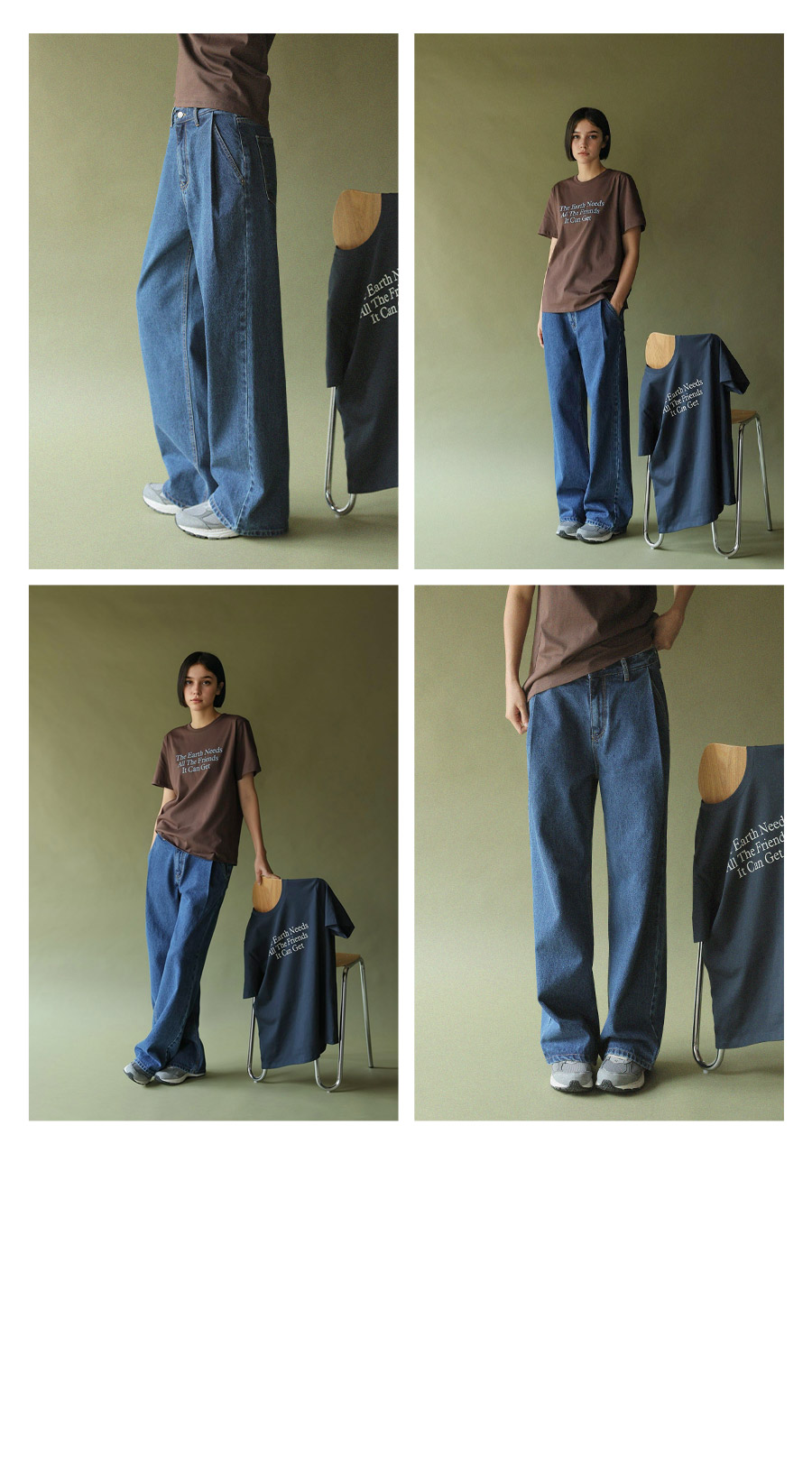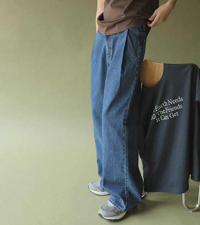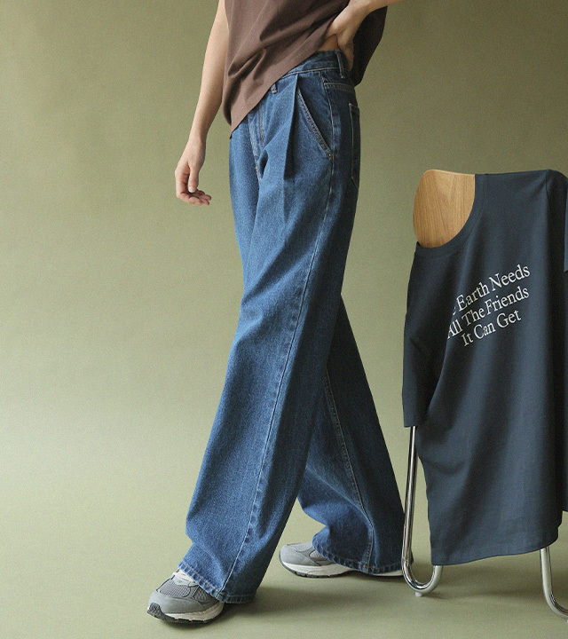 - 탄탄한 코튼데님 7수 원단으로제작된 터크 데님 팬츠