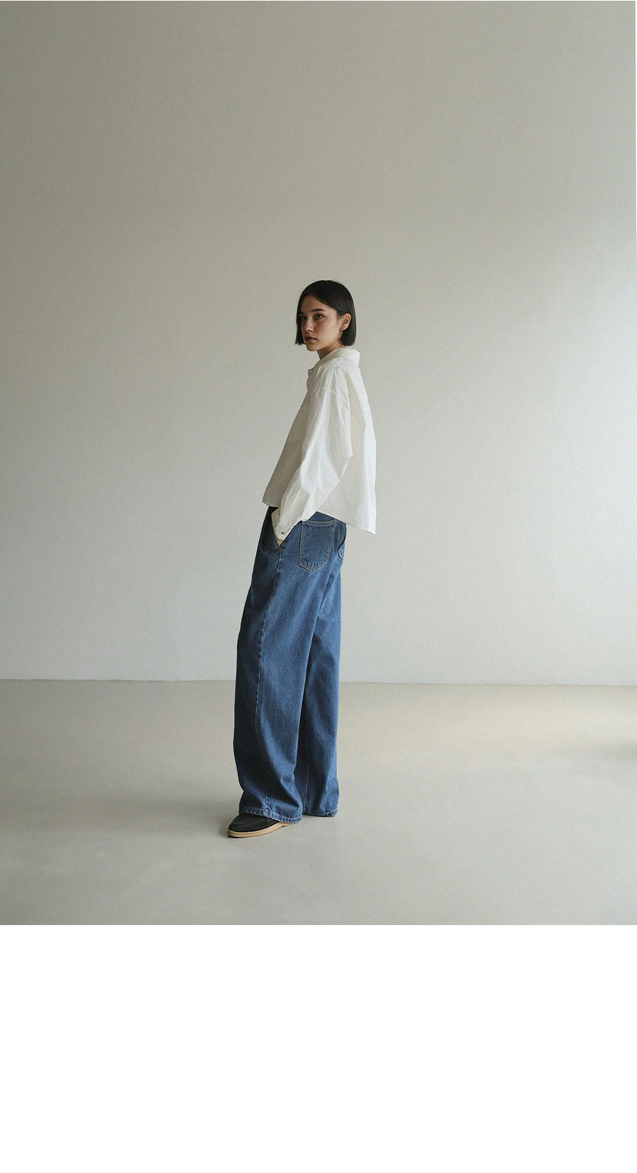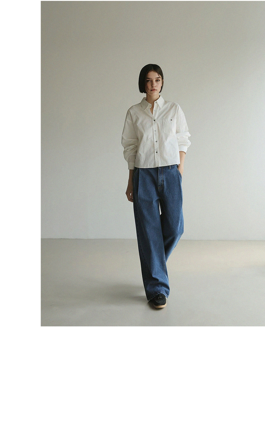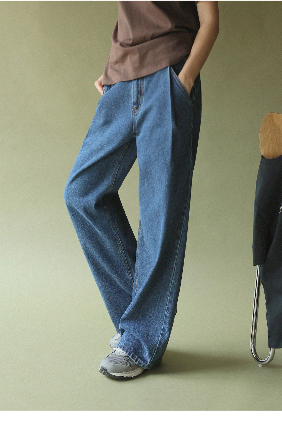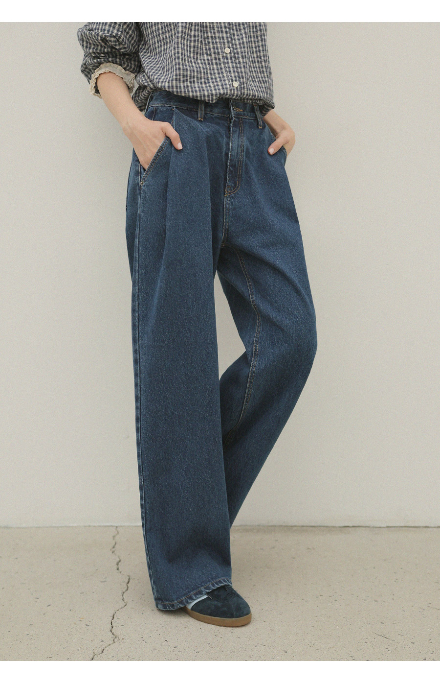 - 탄탄한 코튼데님 7수 원단으로제작된 터크 데님 팬츠