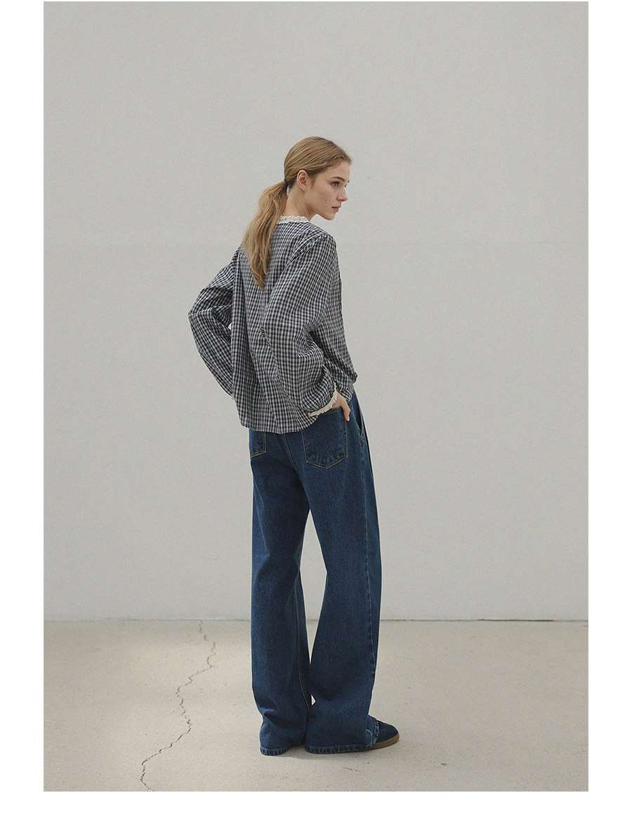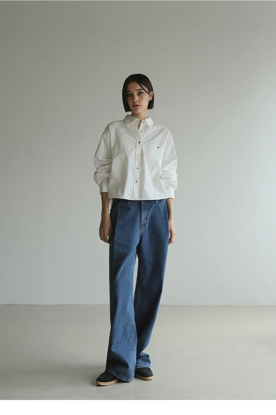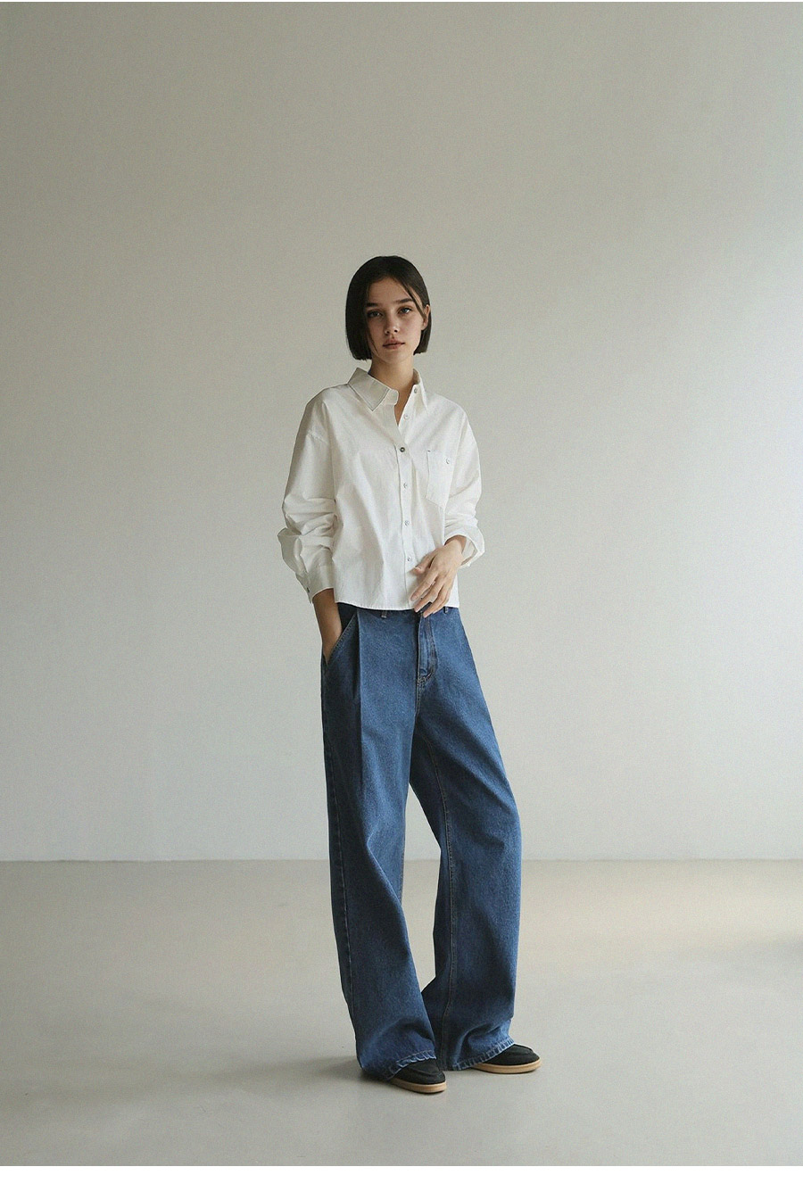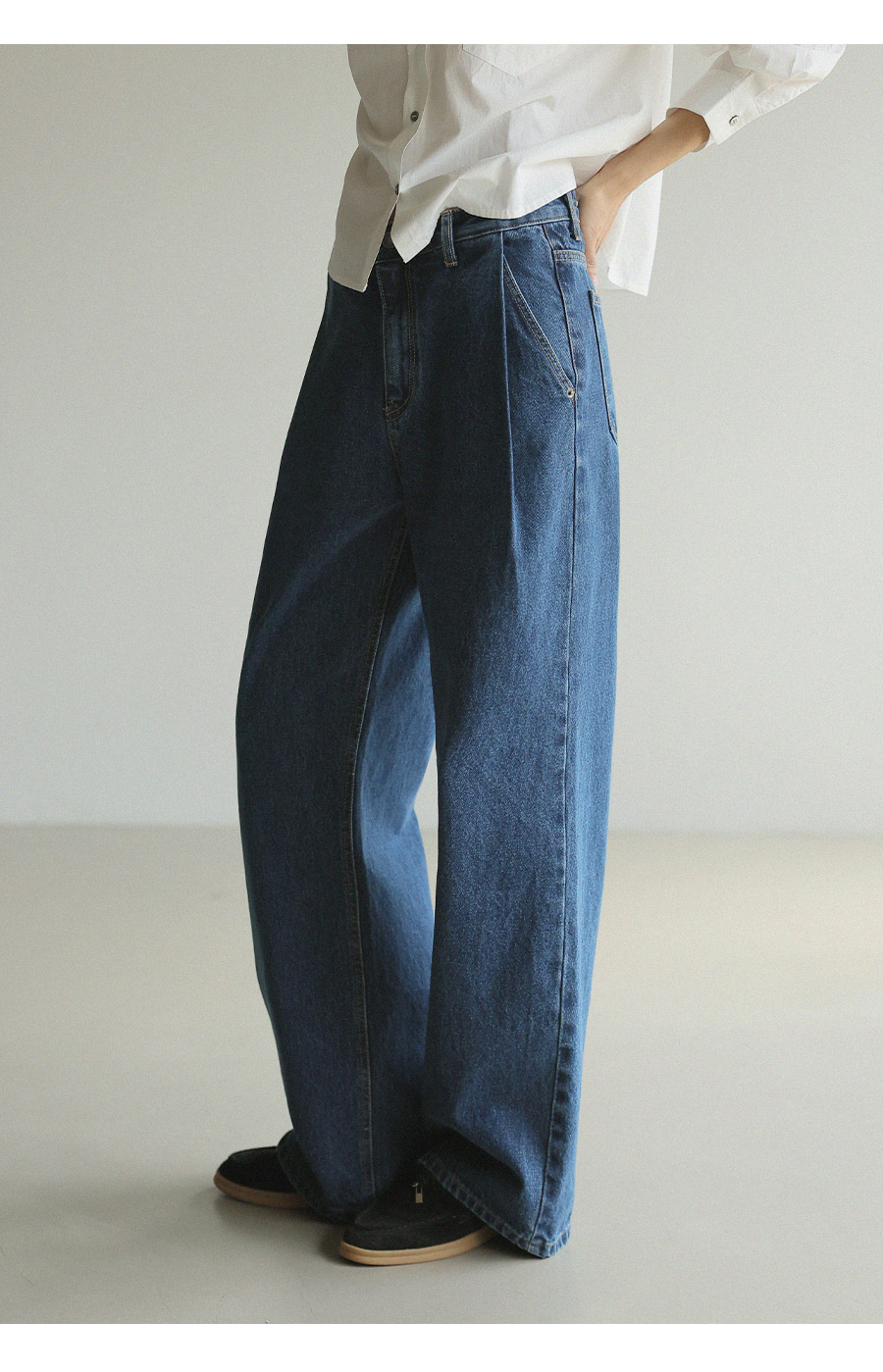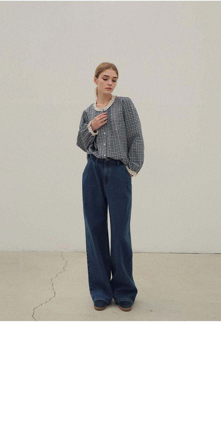 - 탄탄한 코튼데님 7수 원단으로제작된 터크 데님 팬츠
