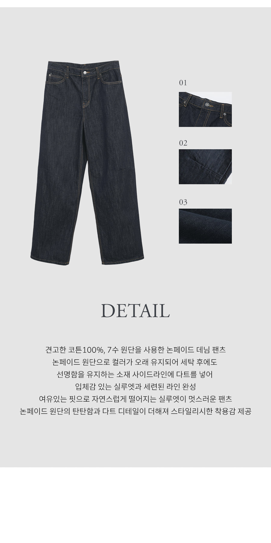 - 견고한 코튼100%, 7수 원단을 사용한 논페이드 데님 팬츠