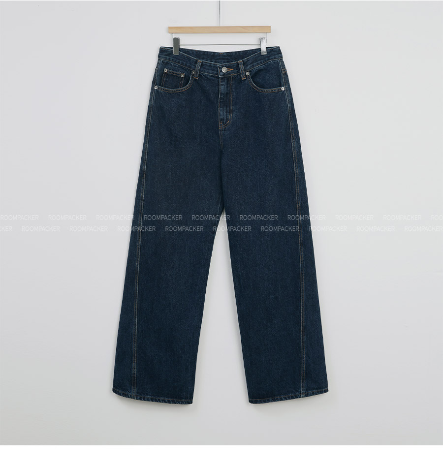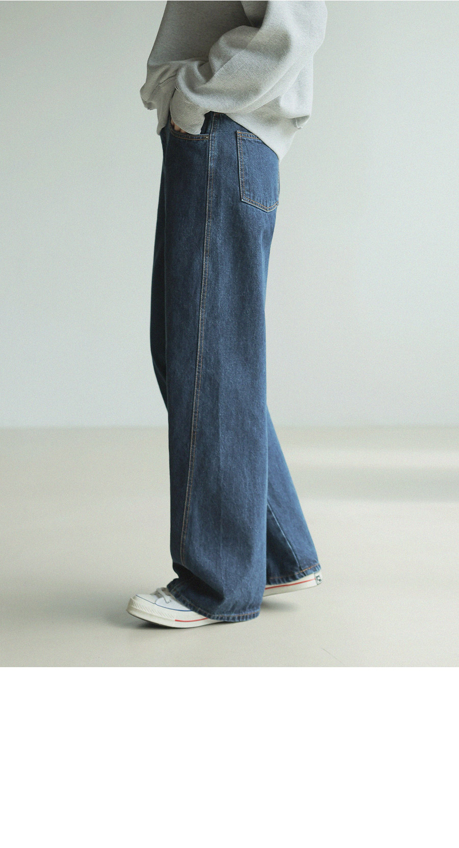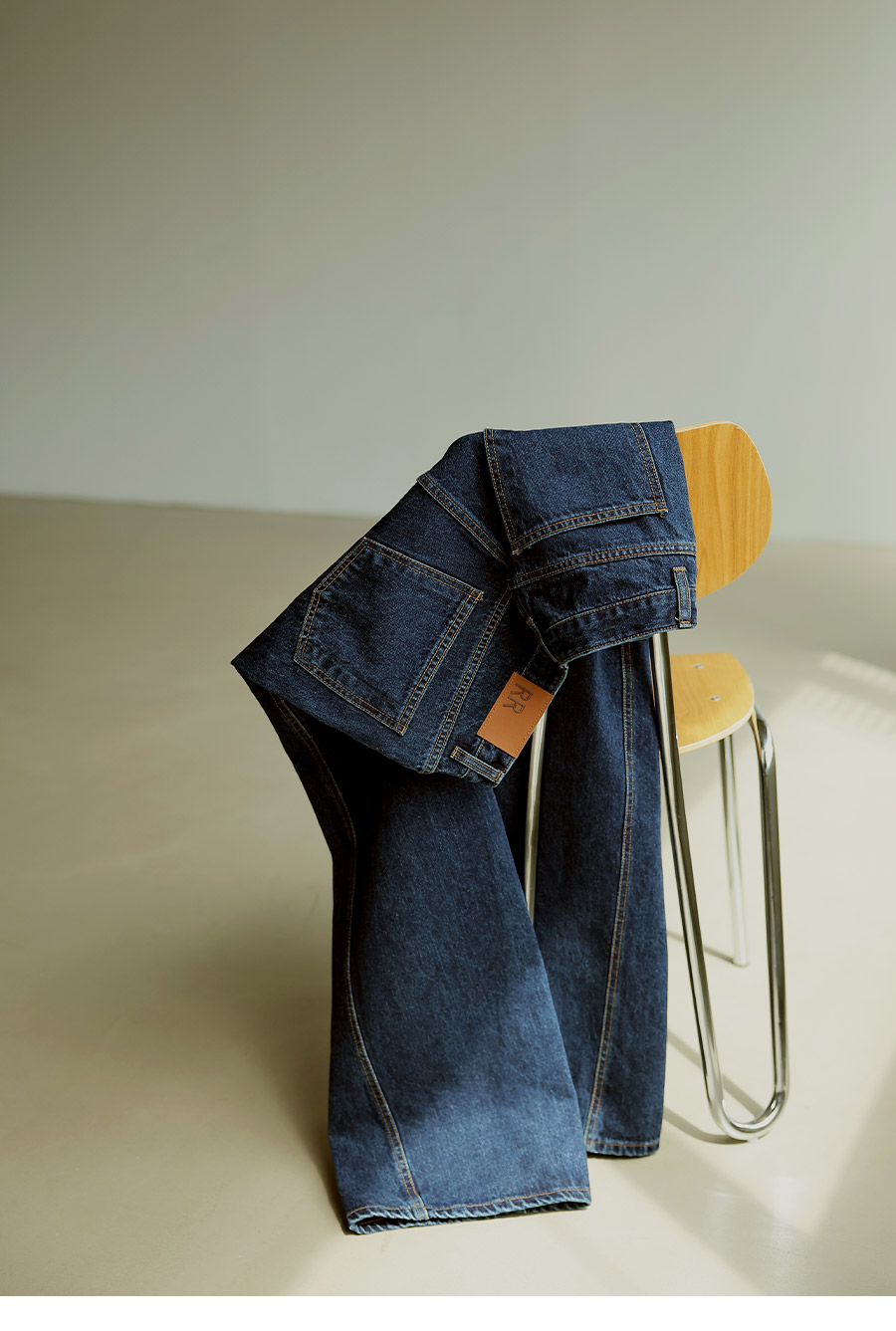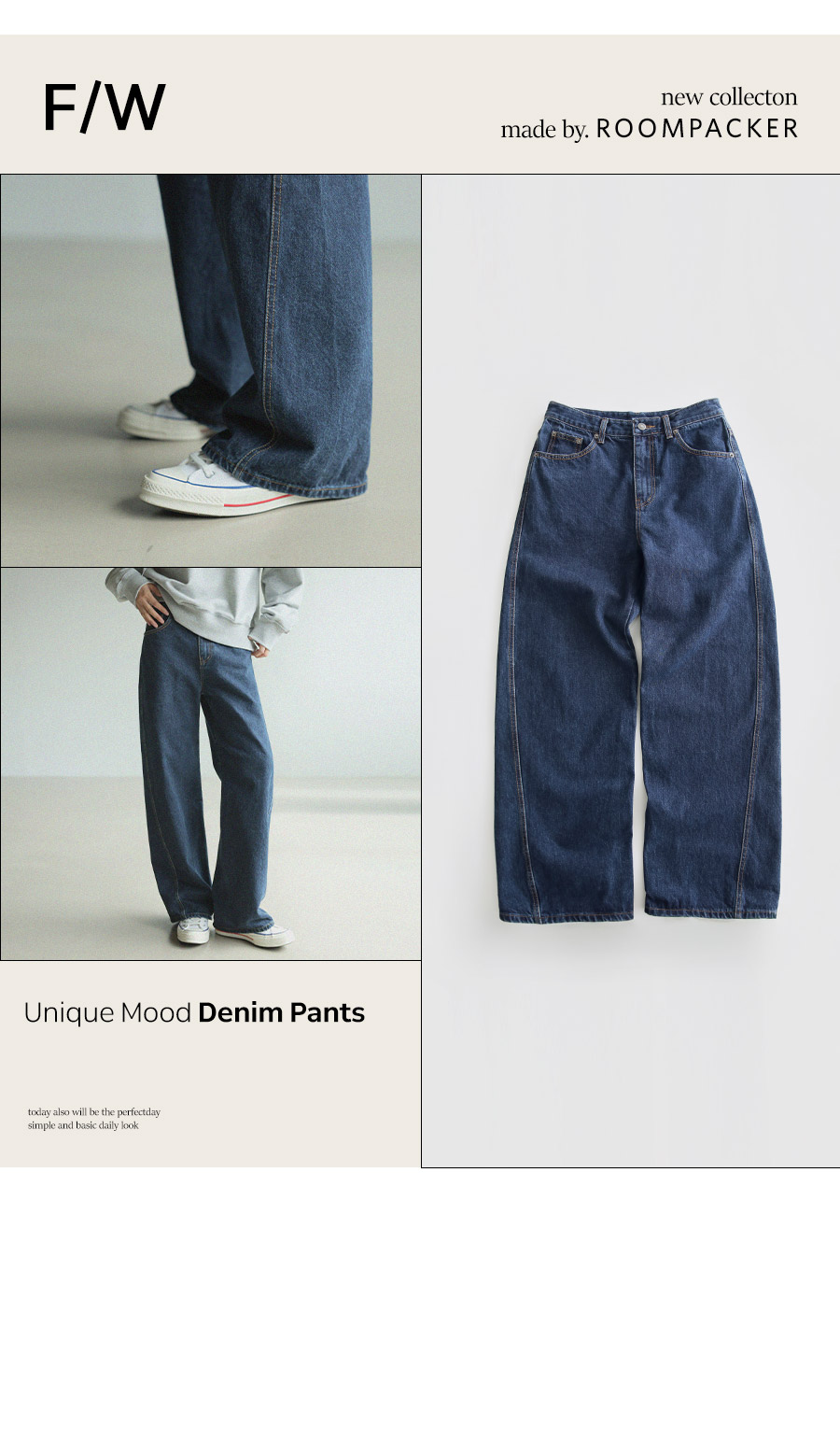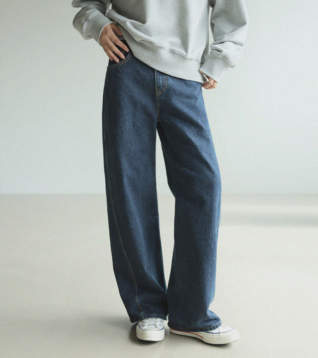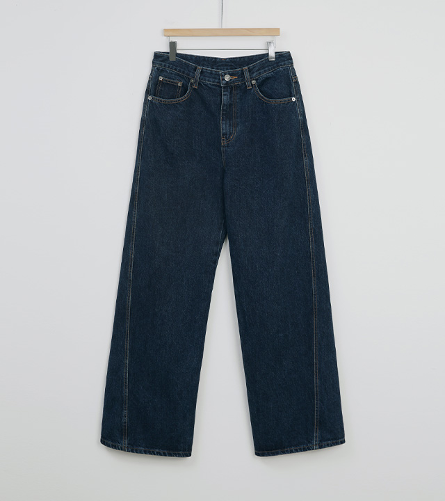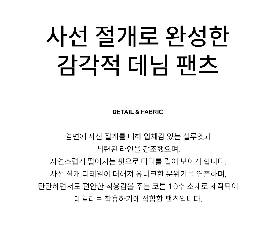 "사선 절개로 완성한 감각적 데님 팬츠"