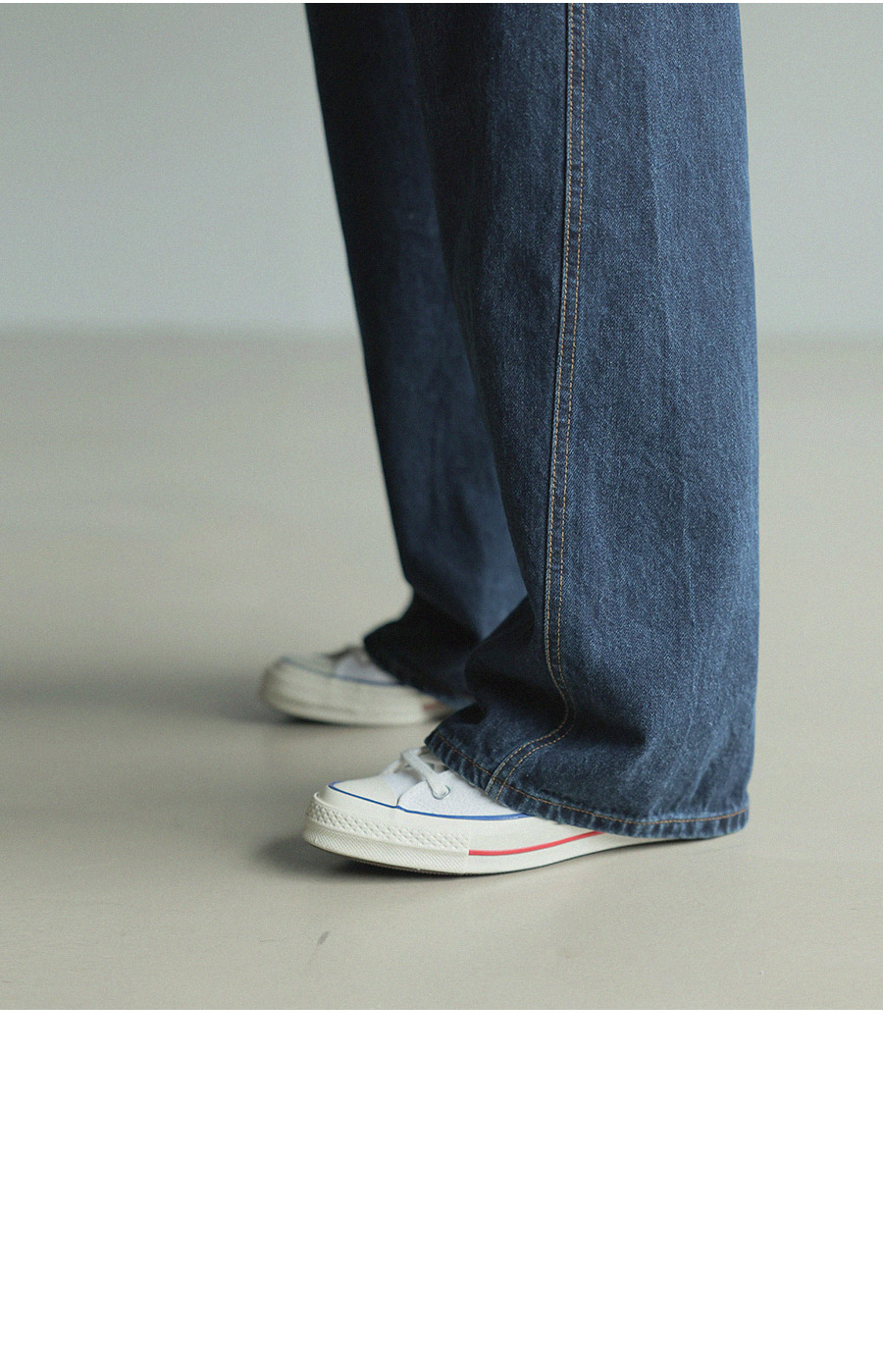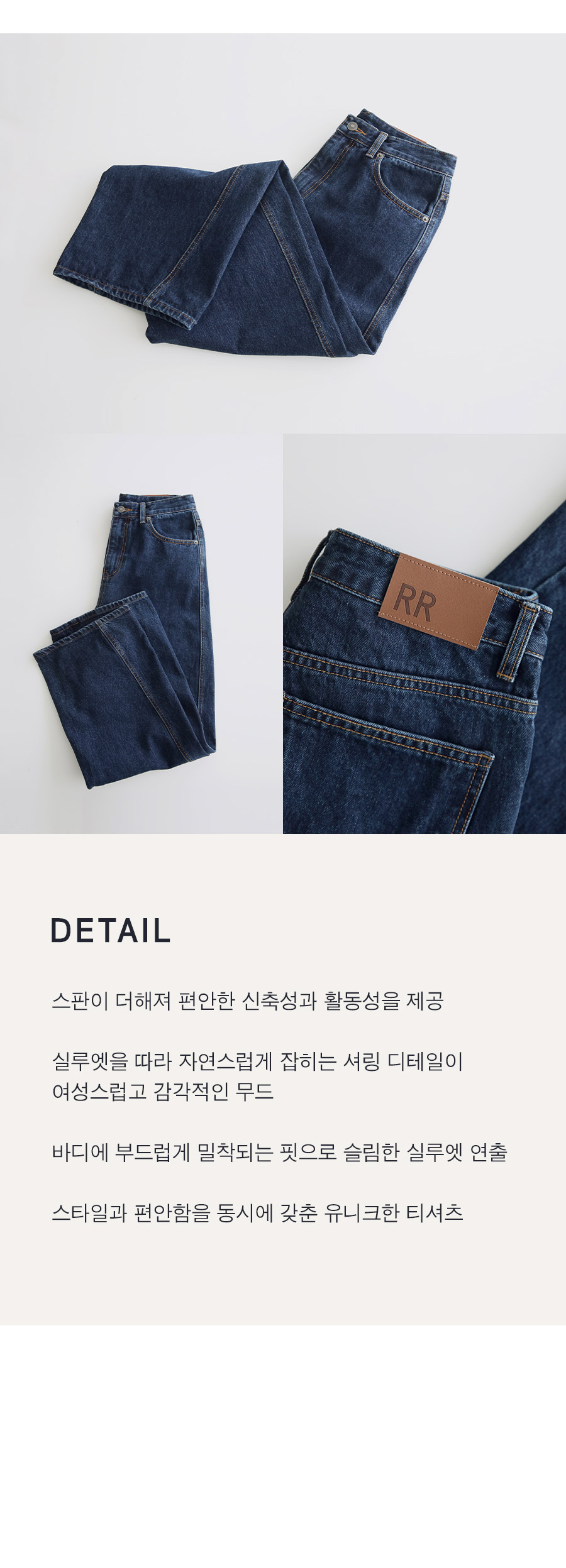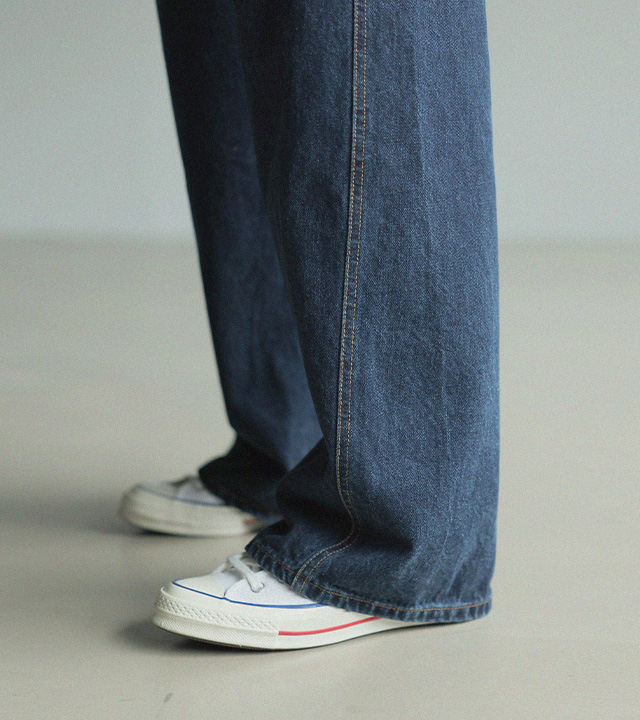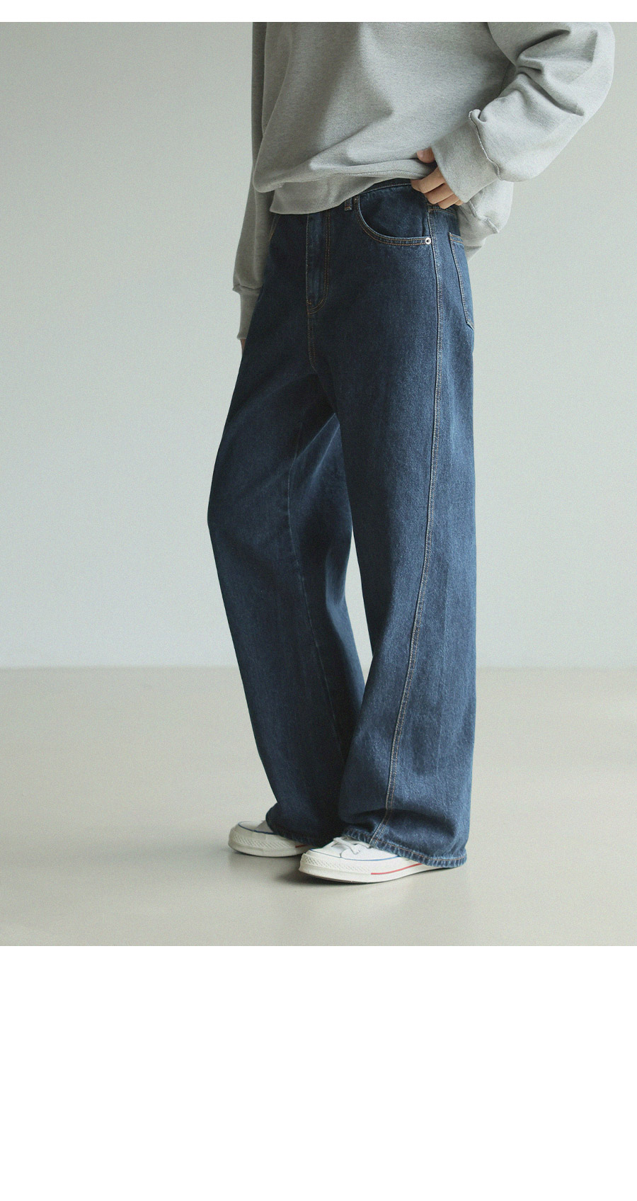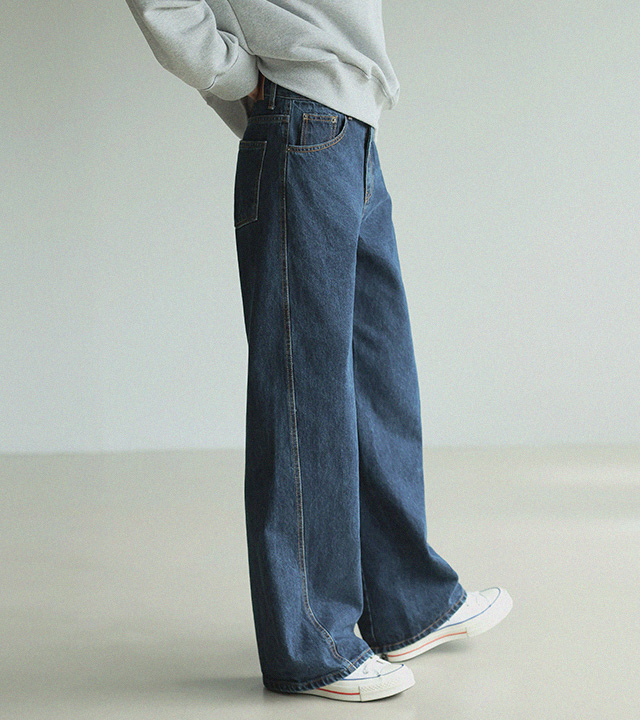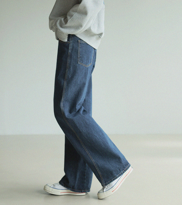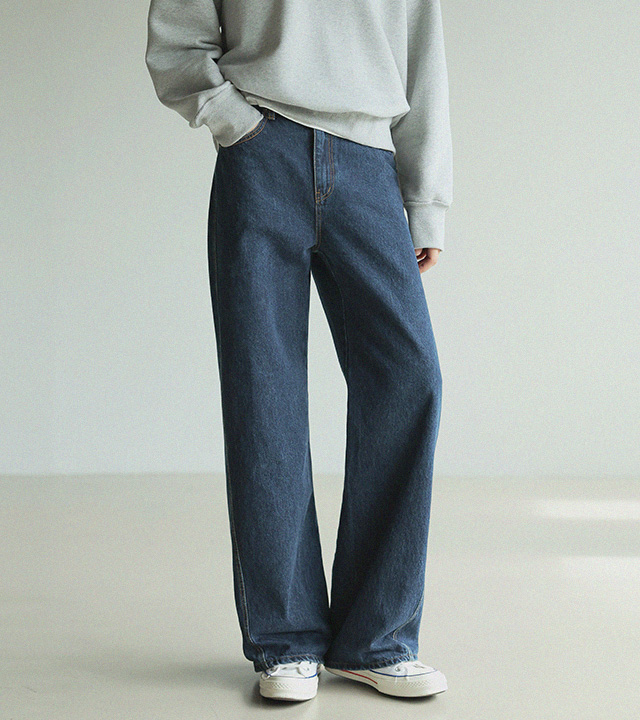 "사선 절개로 완성한 감각적 데님 팬츠"