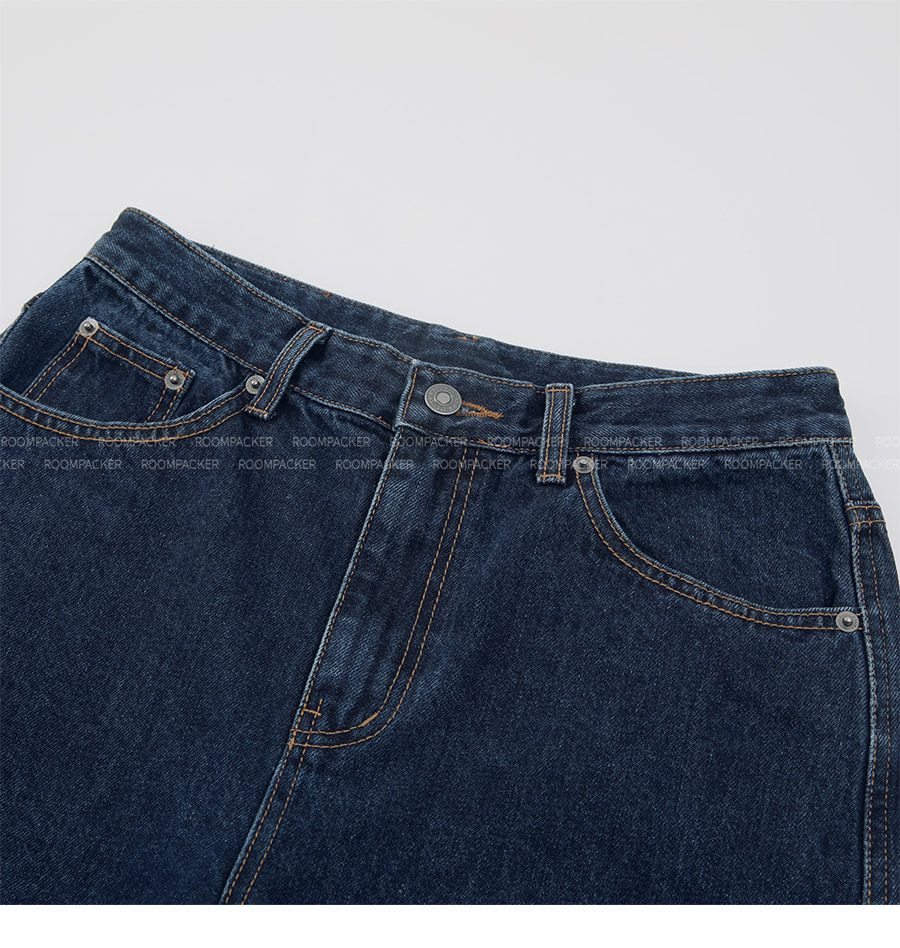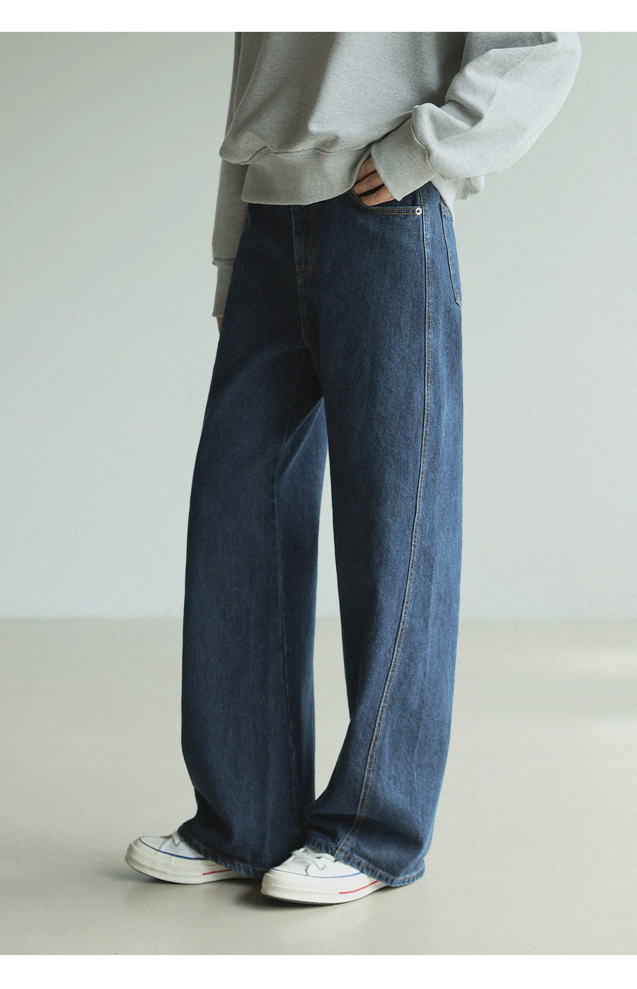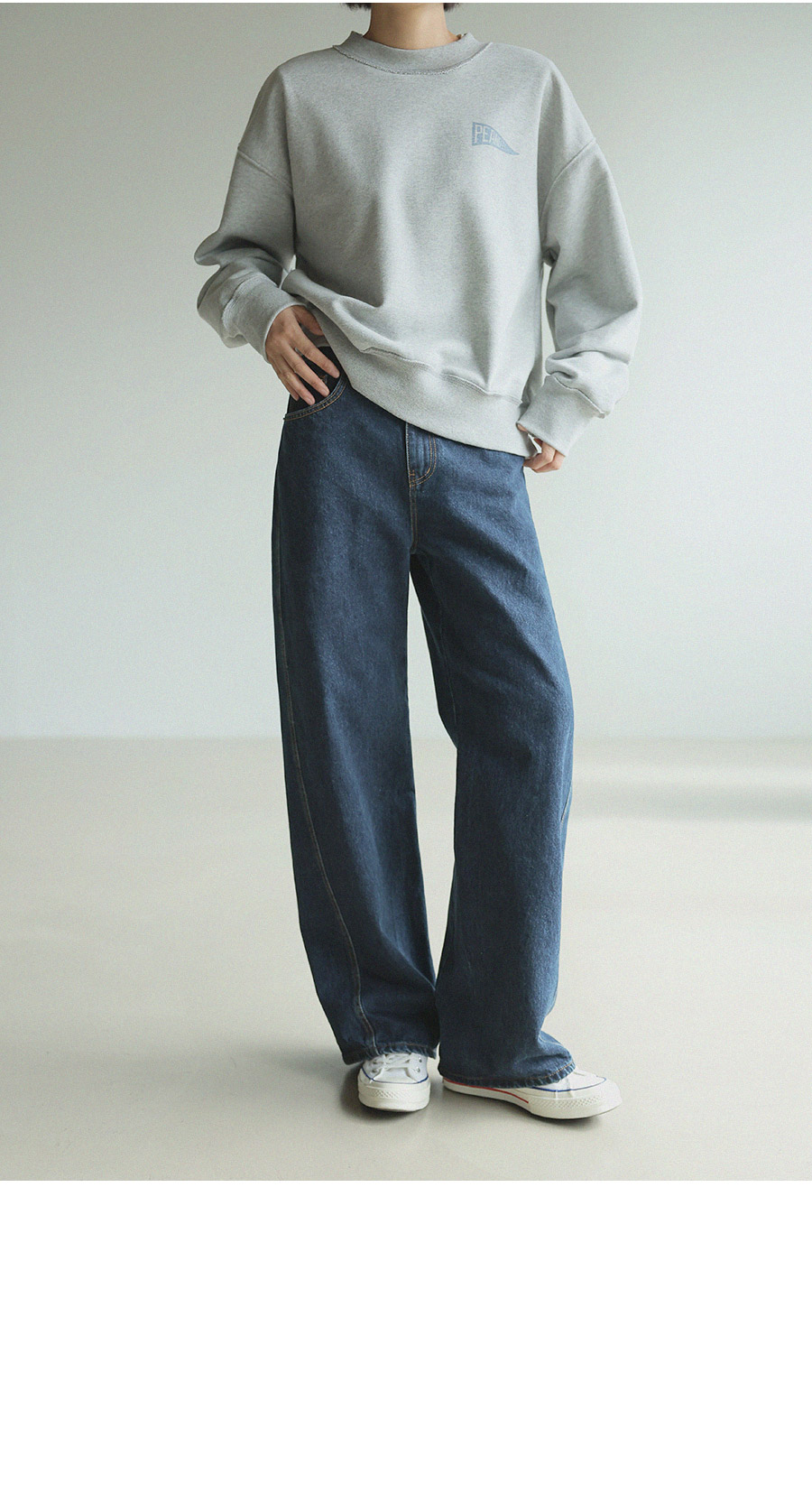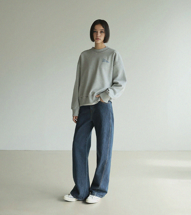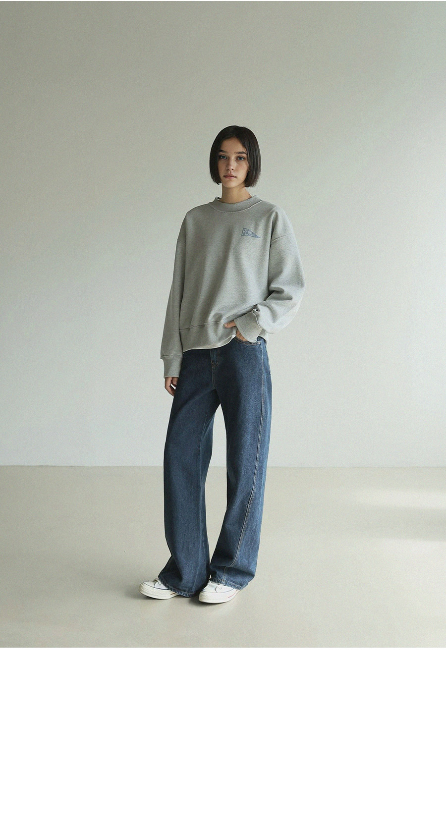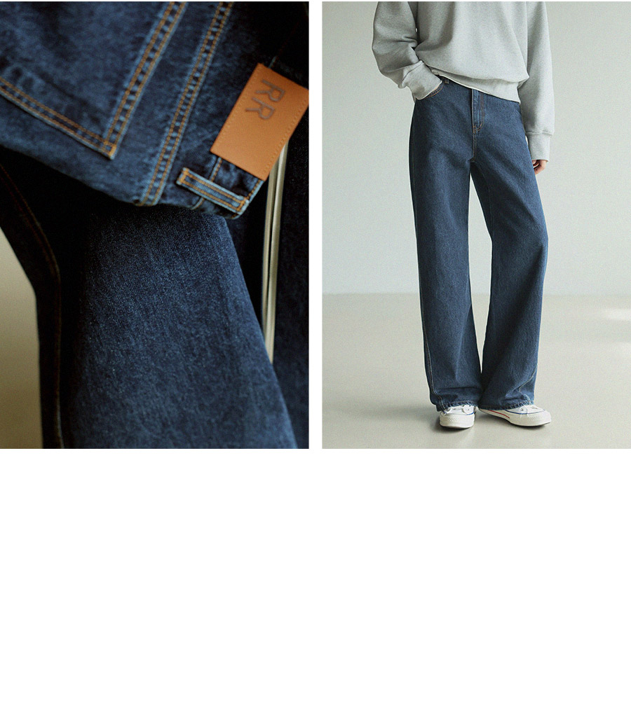 "사선 절개로 완성한 감각적 데님 팬츠"