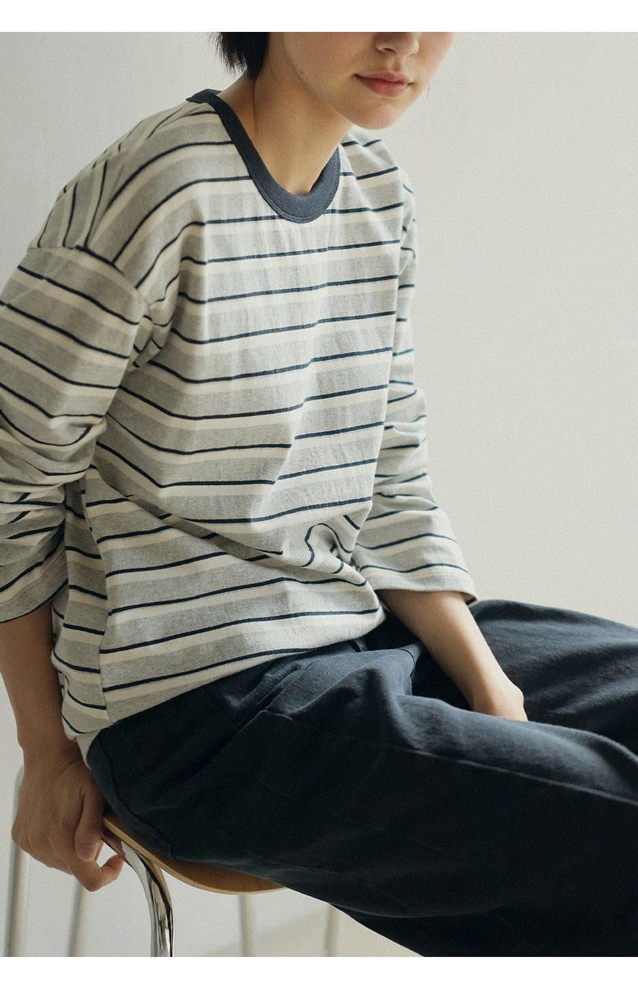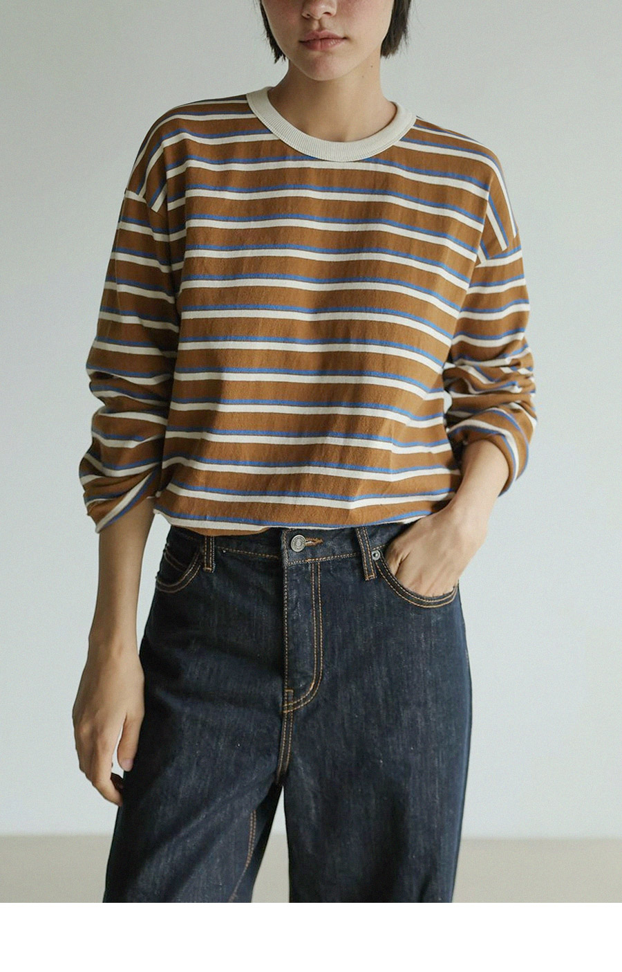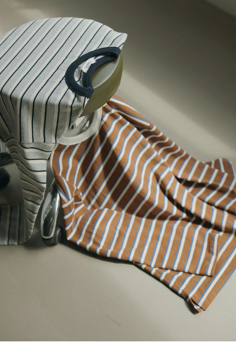 - 경쾌하면서도 세련된 스트라이프 패턴의 티셔츠