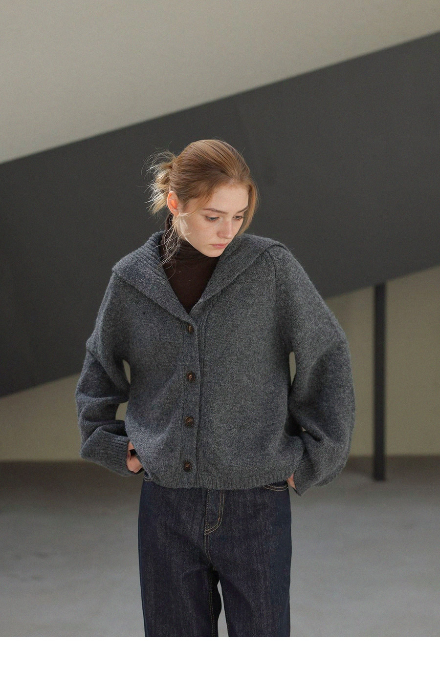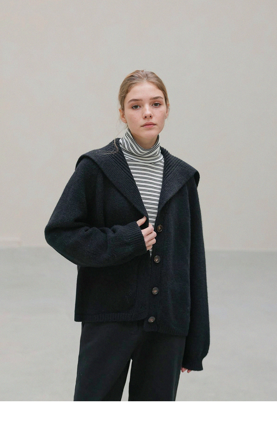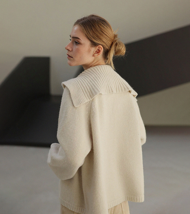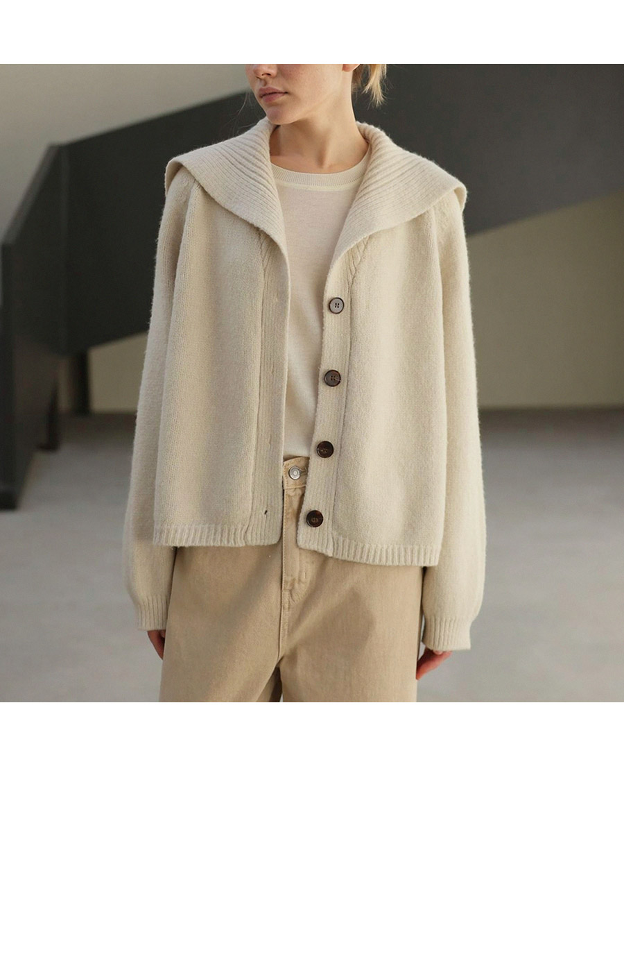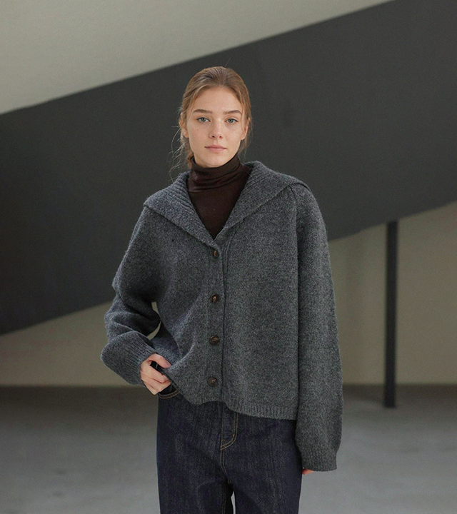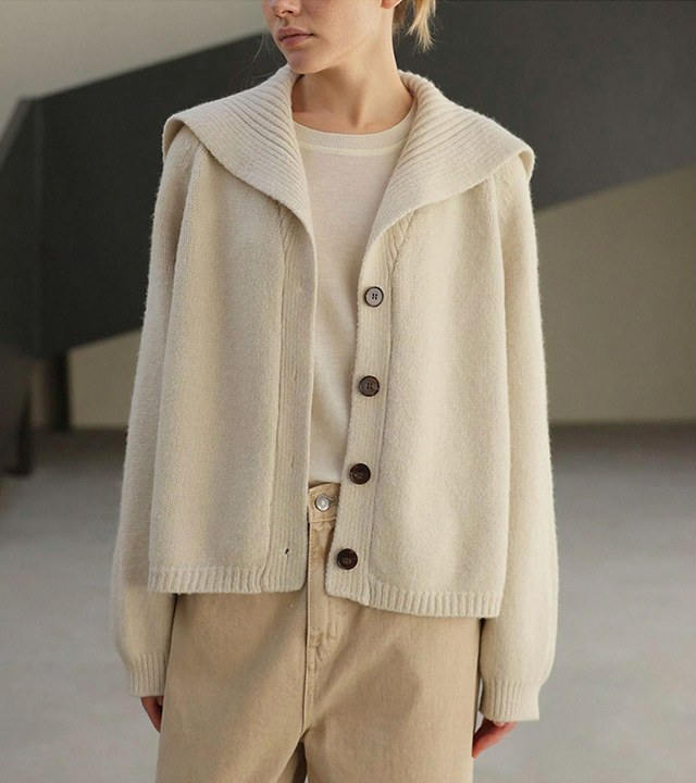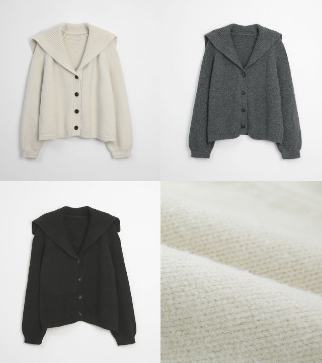 "부드러운 소재와 세일러 카라가 어우러진 니트 가디건"