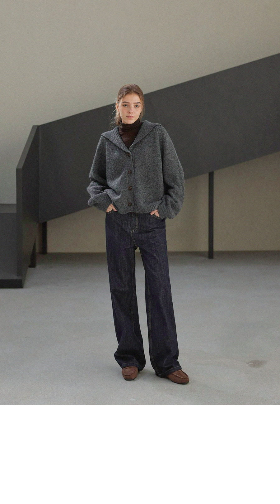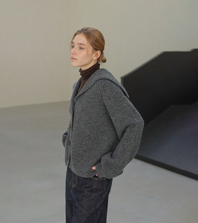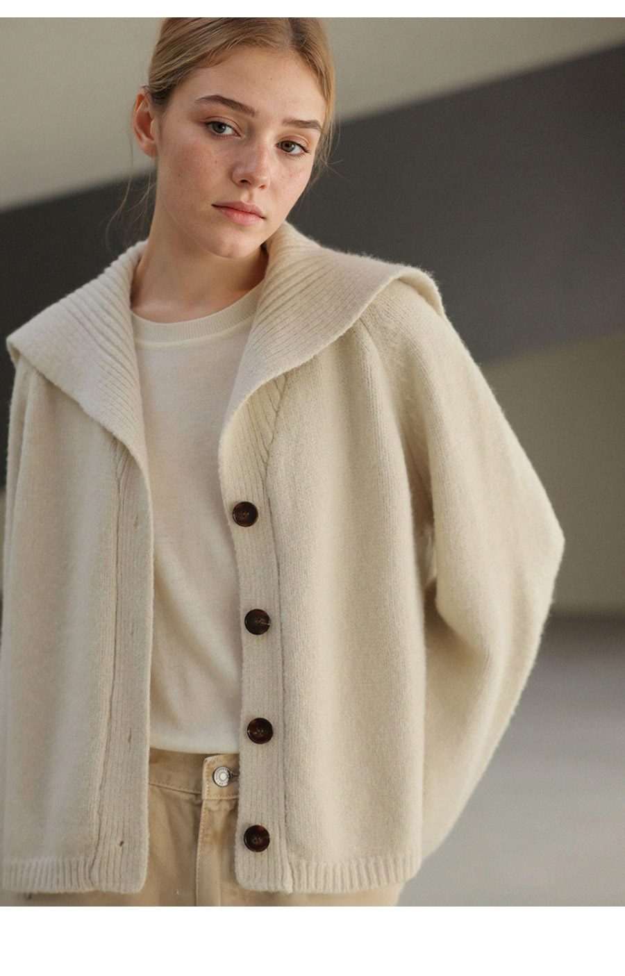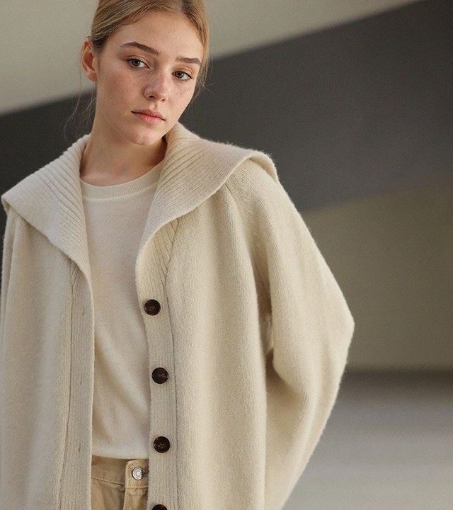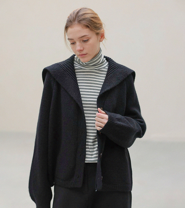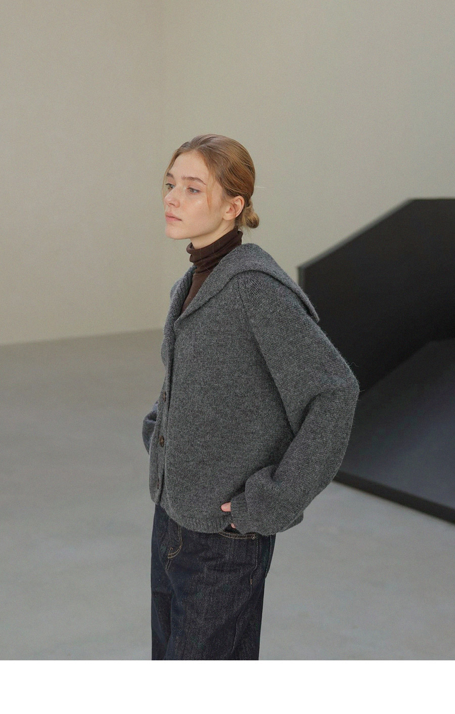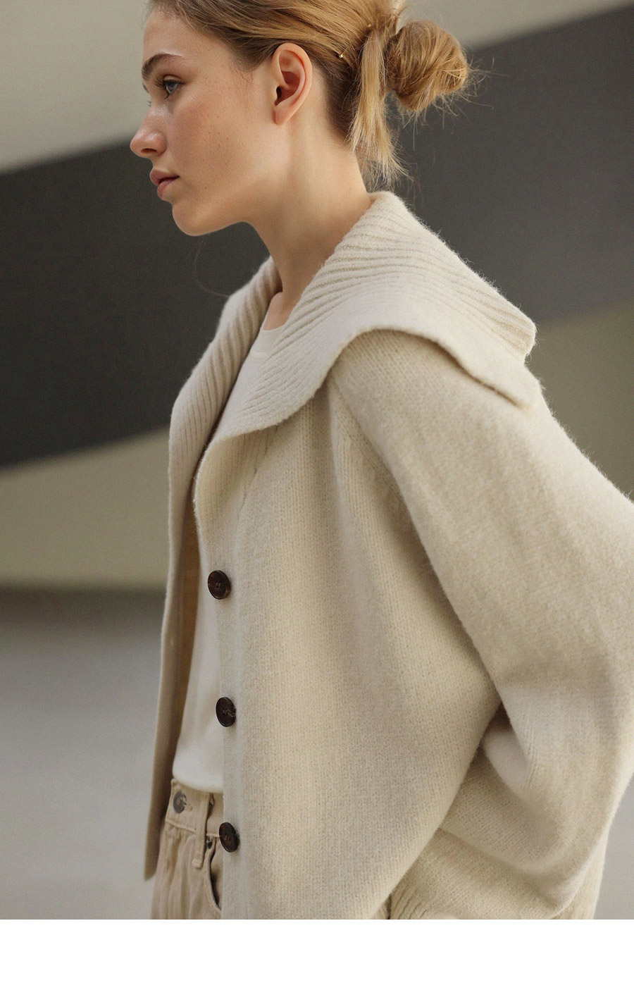 "부드러운 소재와 세일러 카라가 어우러진 니트 가디건"