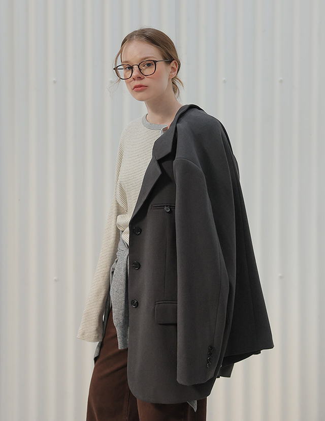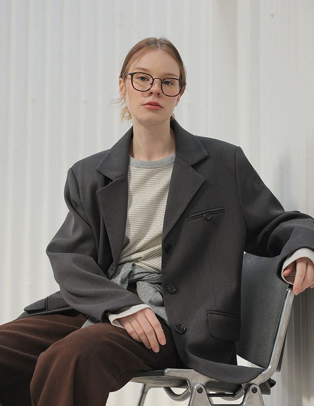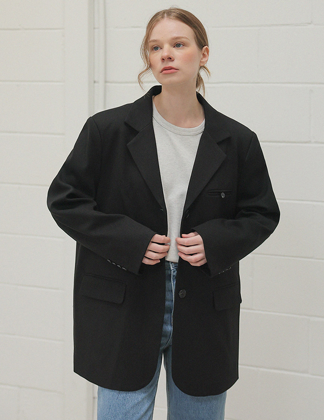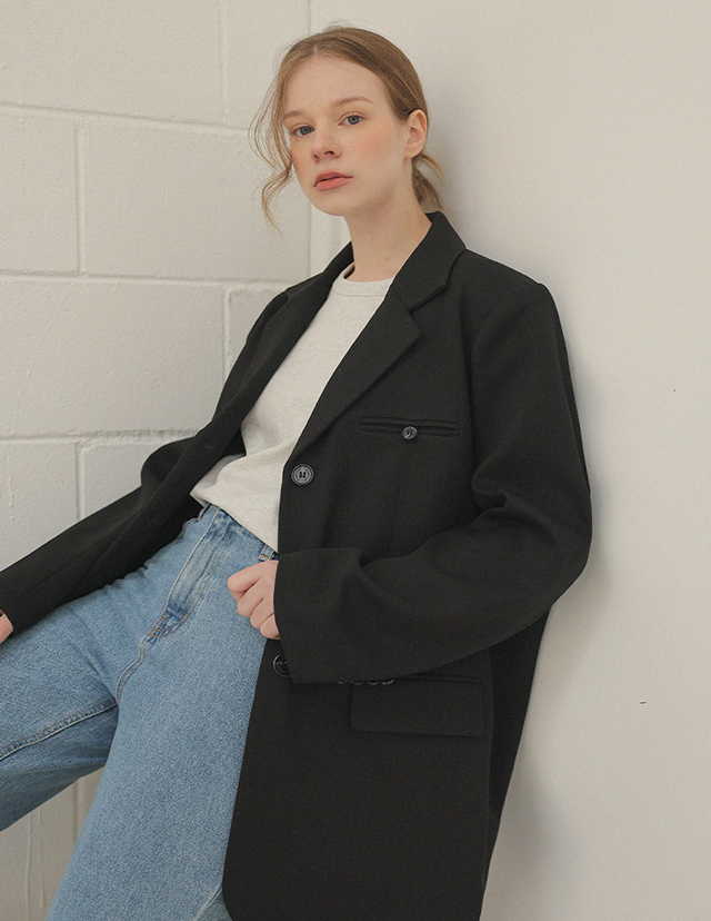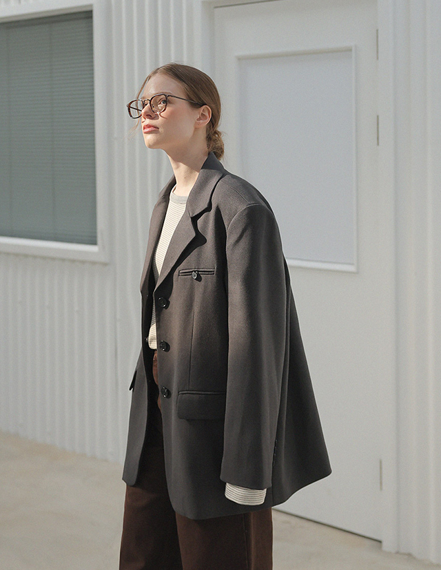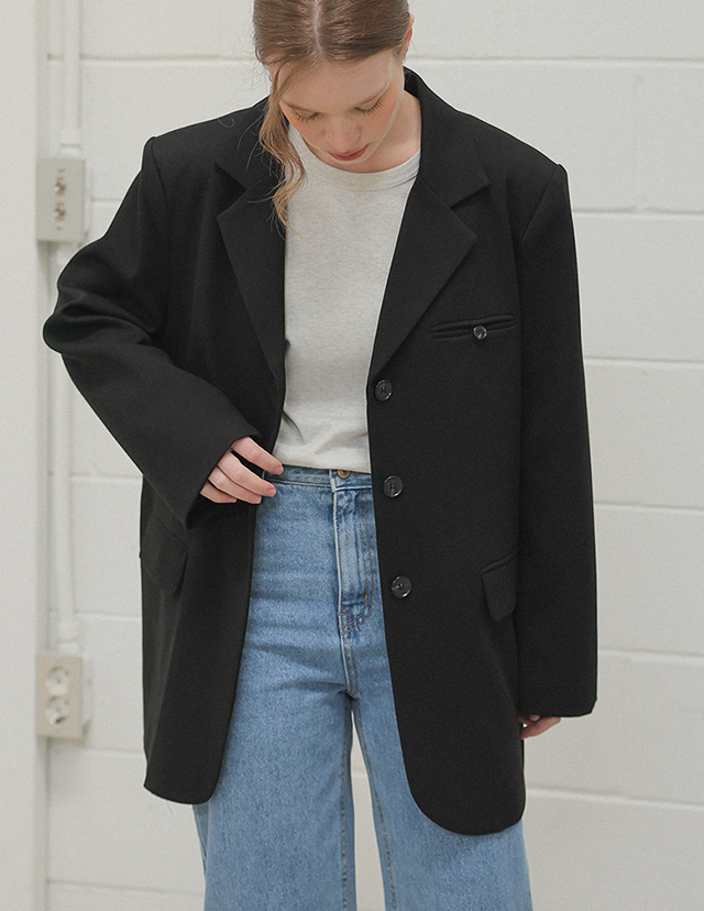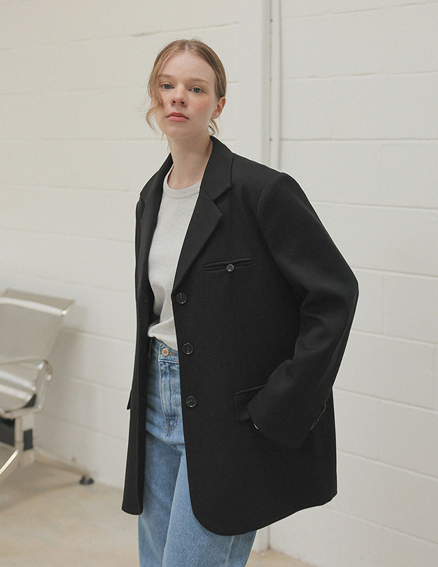 - 군더더기 없는 실루엣의 쓰리버튼 베이직 자켓