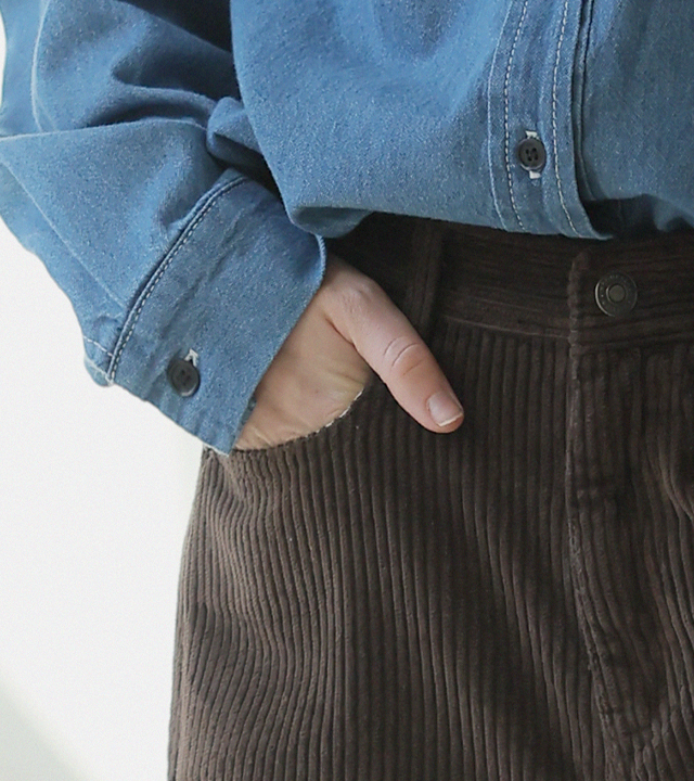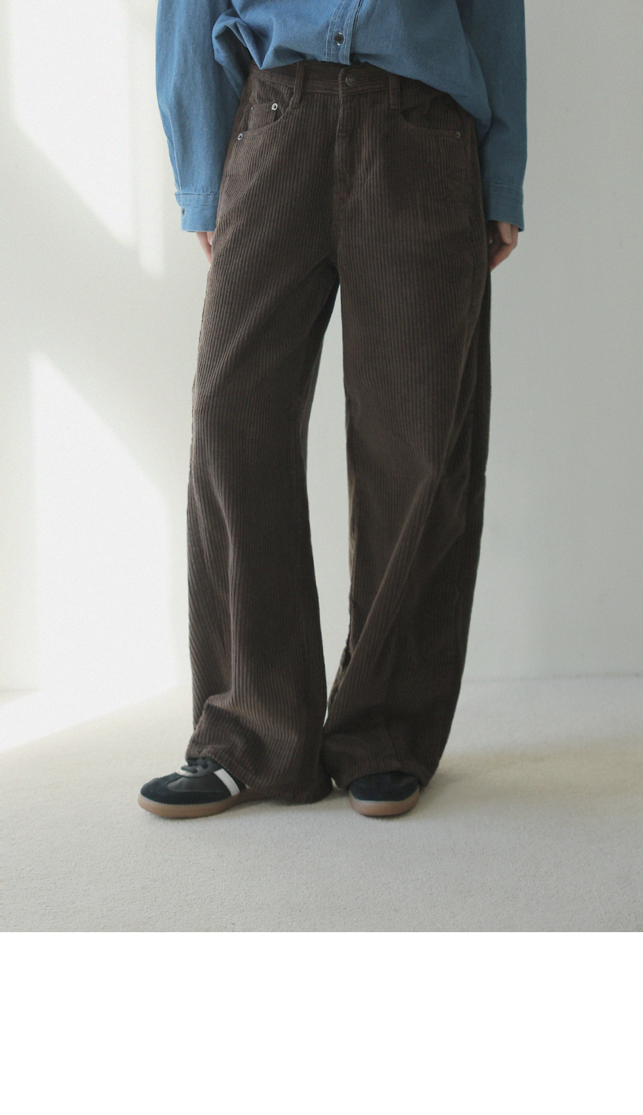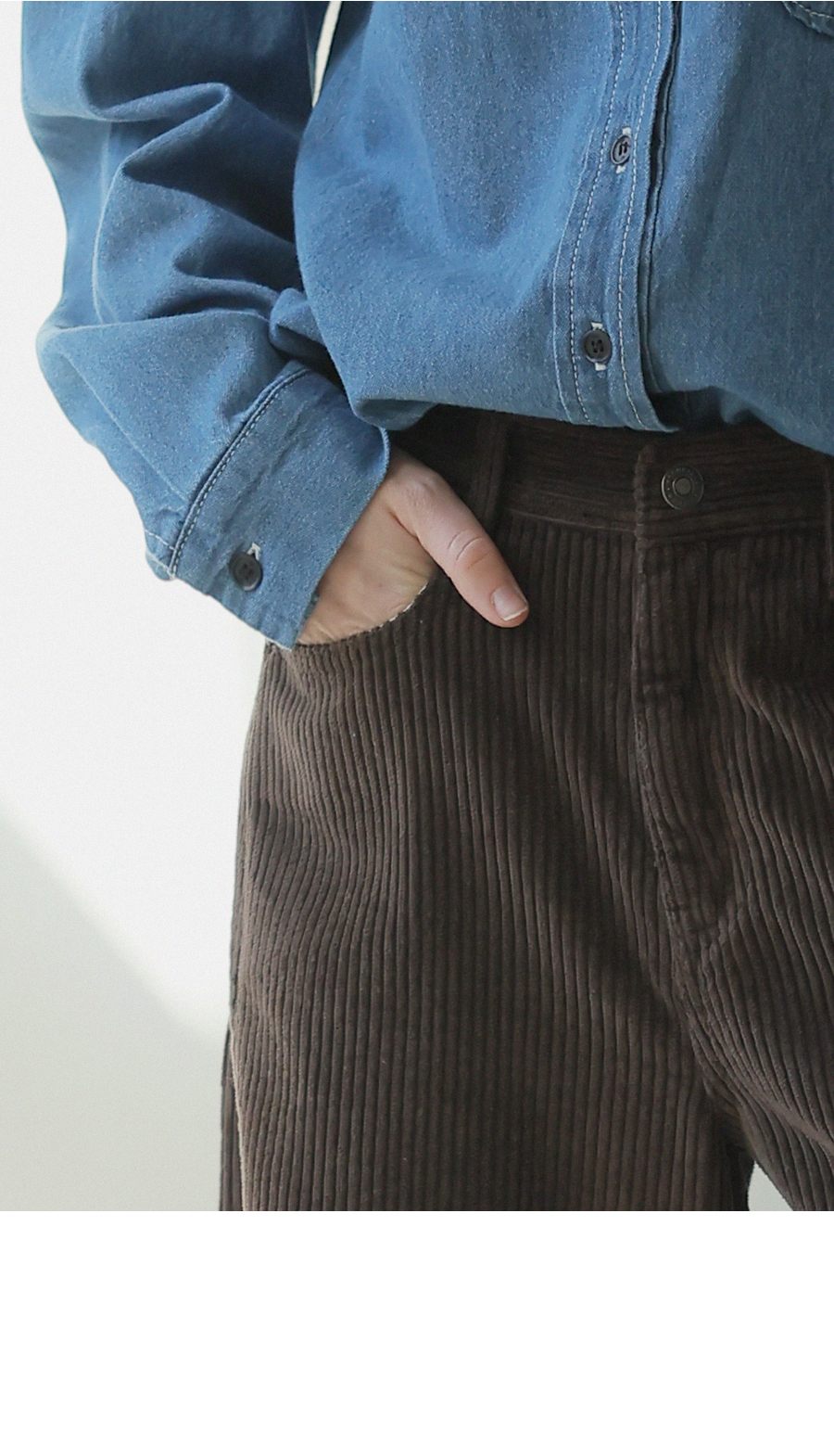 - 자연스러운 주름과 코듀로이 특유의 빈티지한 컬러감으로 스타일 완성
