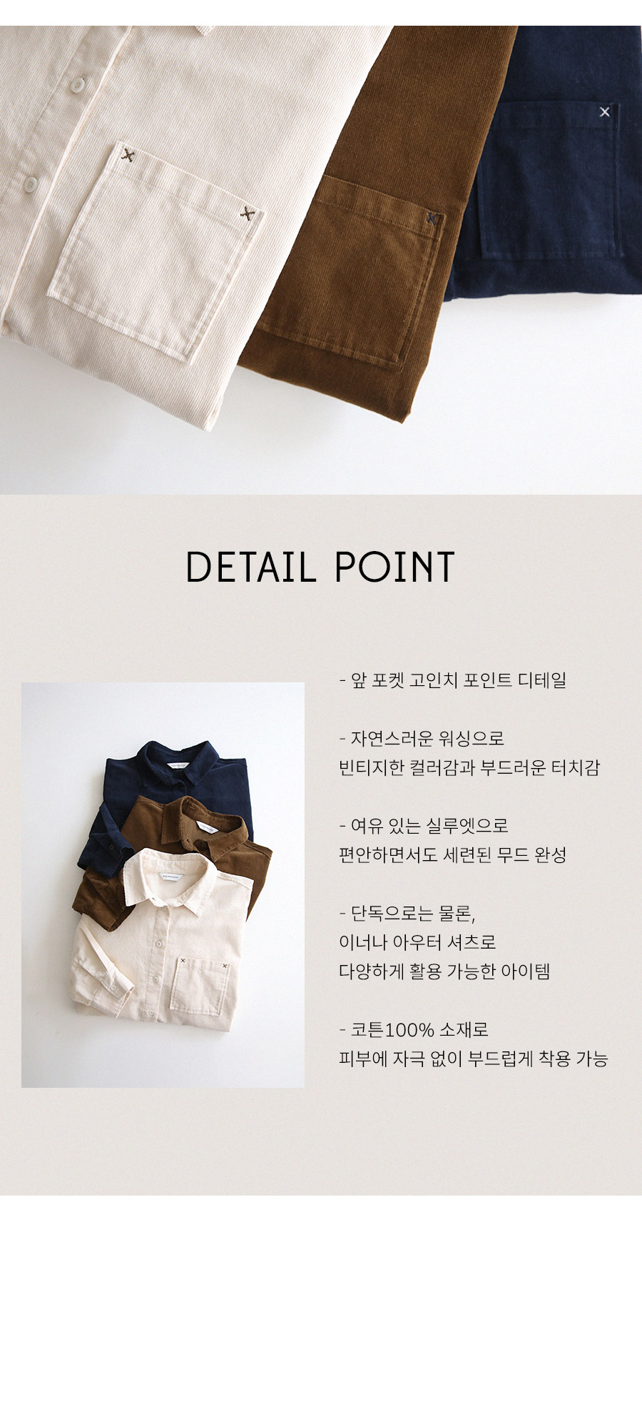 - 촘촘한 골이 살아있는 코듀로이 원단으로 따뜻하고 포근한 착용감