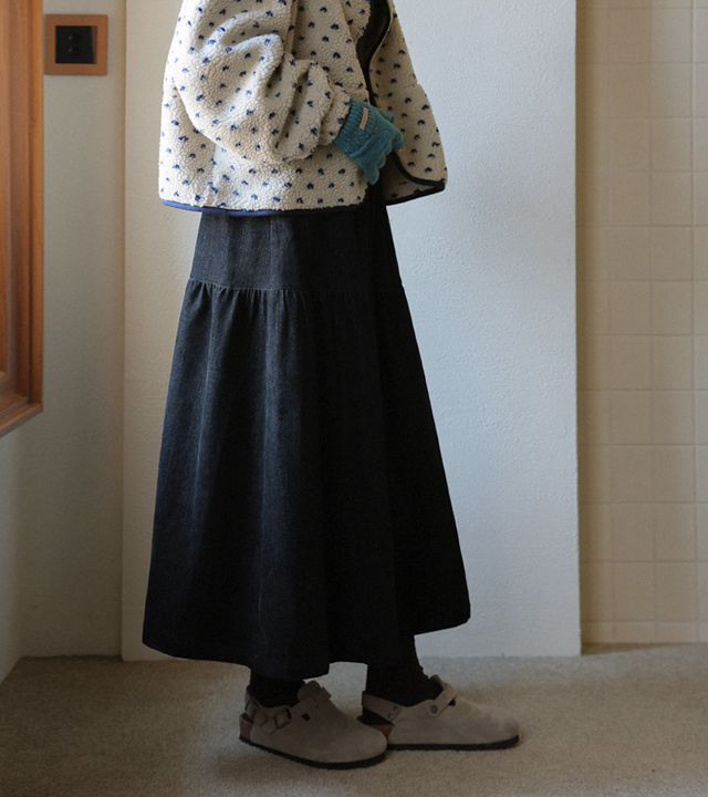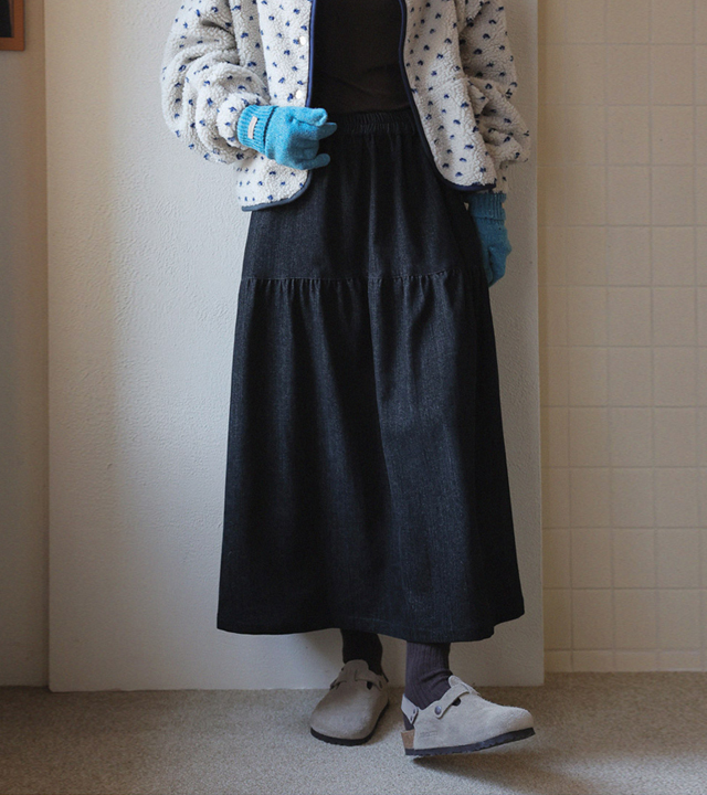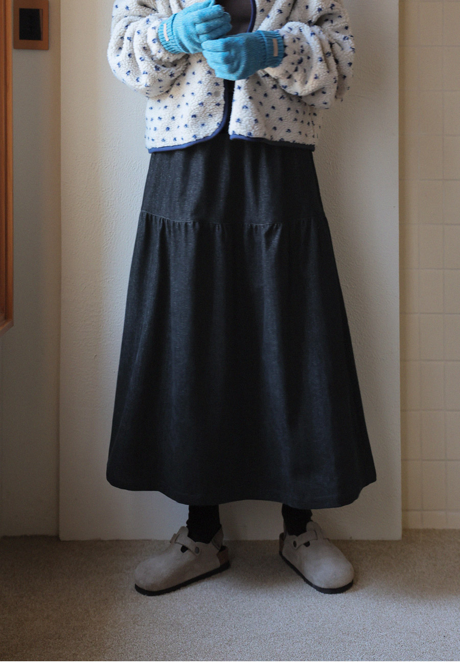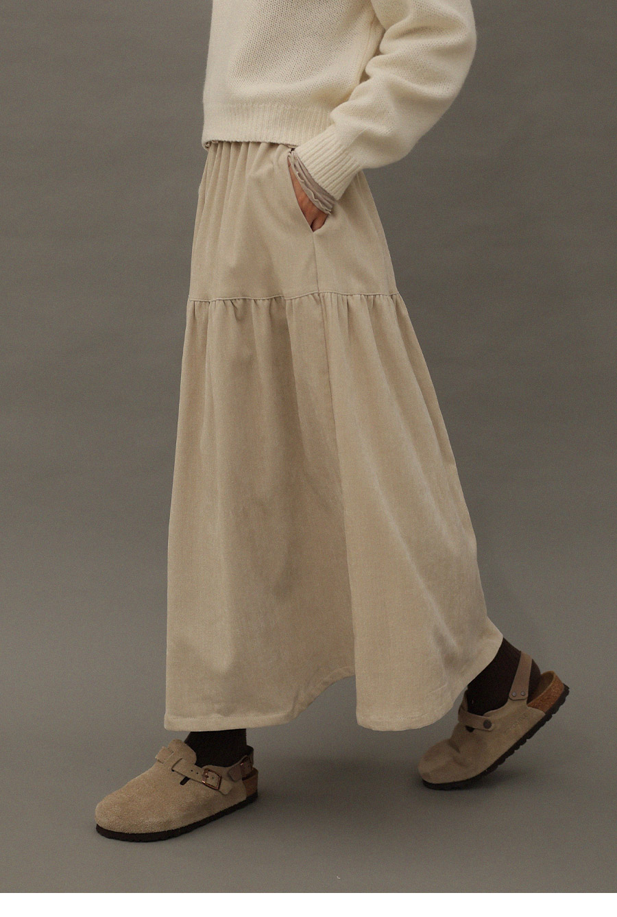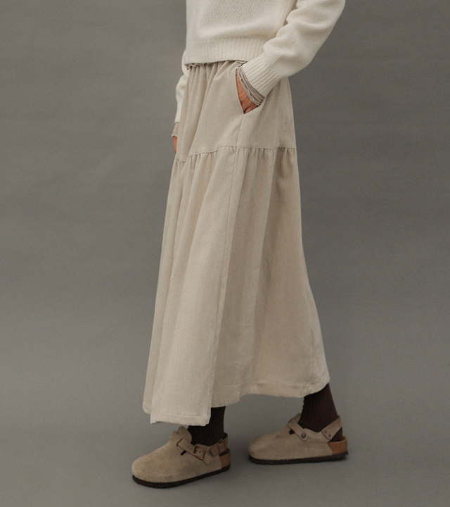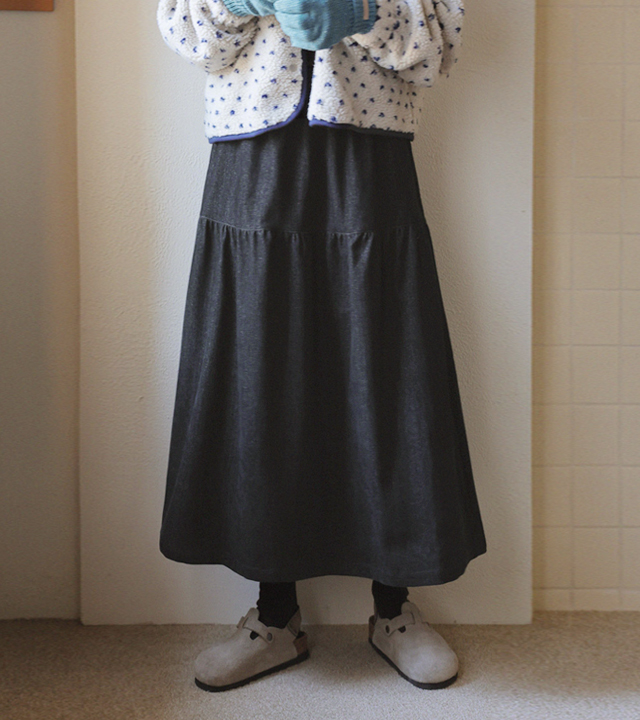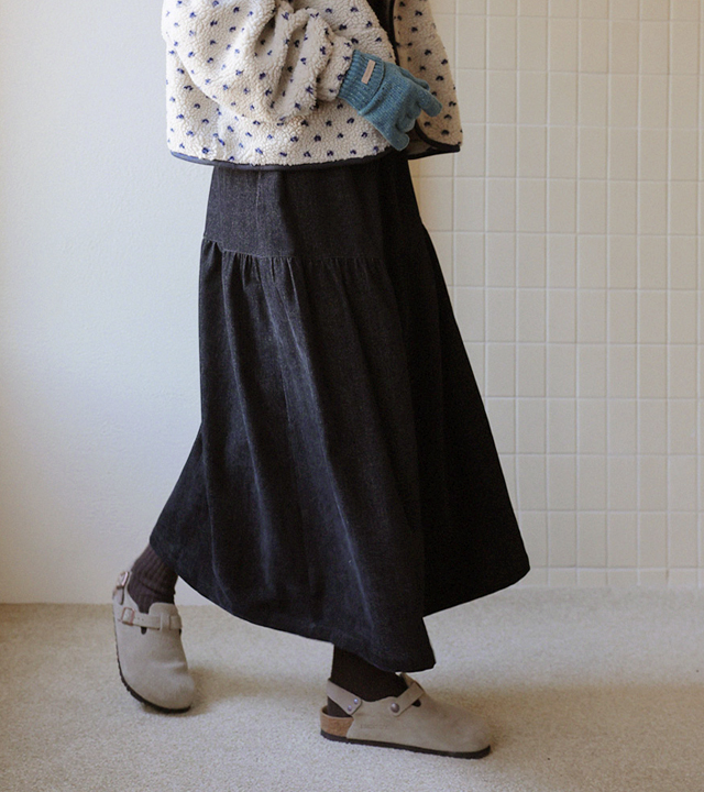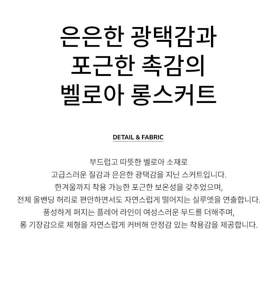 "은은한 광택감과 포근한 촉감의 벨로아 롱스커트"