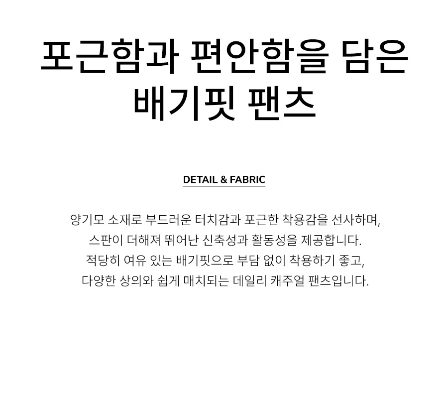 "포근함과 편안함을 담은 배기핏 팬츠"