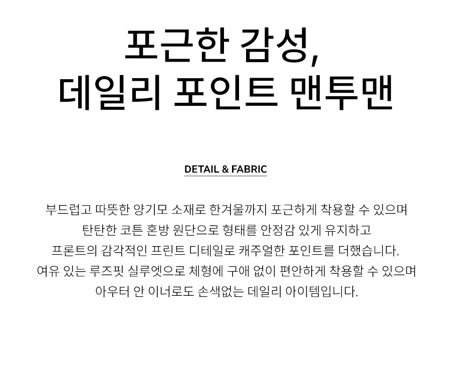 - 부드럽고 따뜻한 양기모 소재로 한겨울까지 포근한착용감