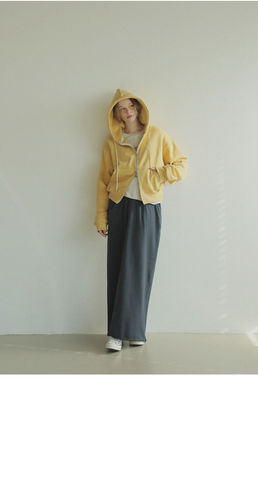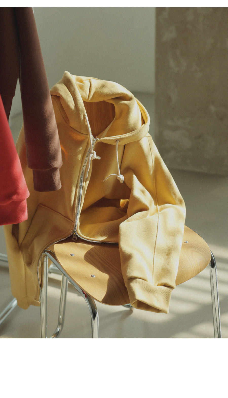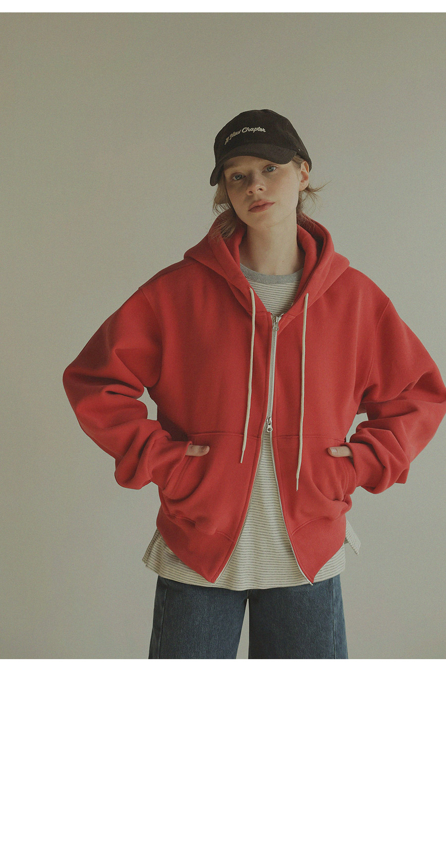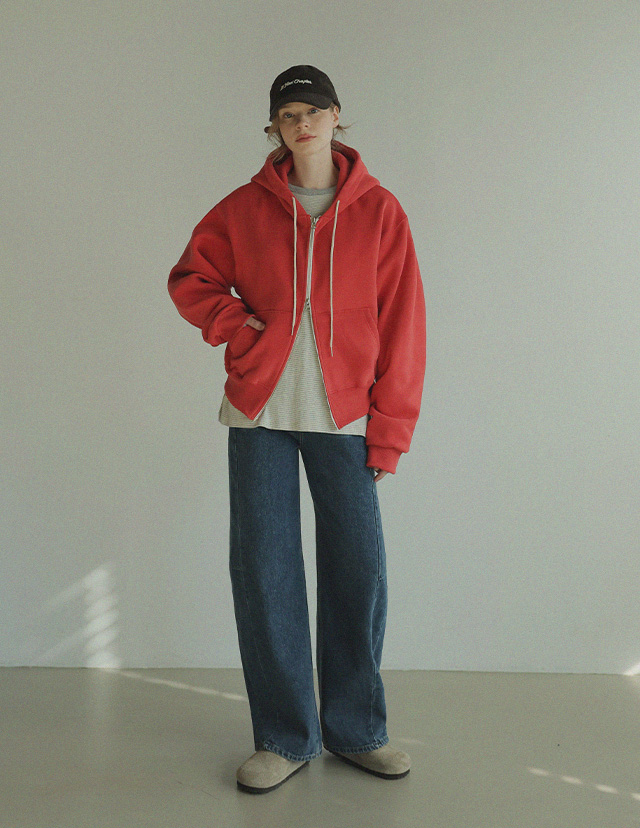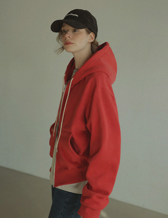 "베이직한 디자인에 포인트 컬러를 더한 데일리 후드집업"