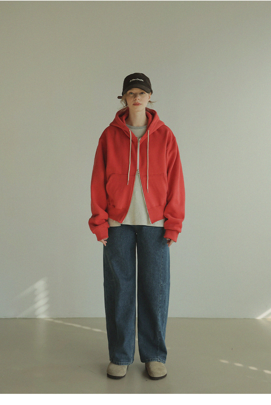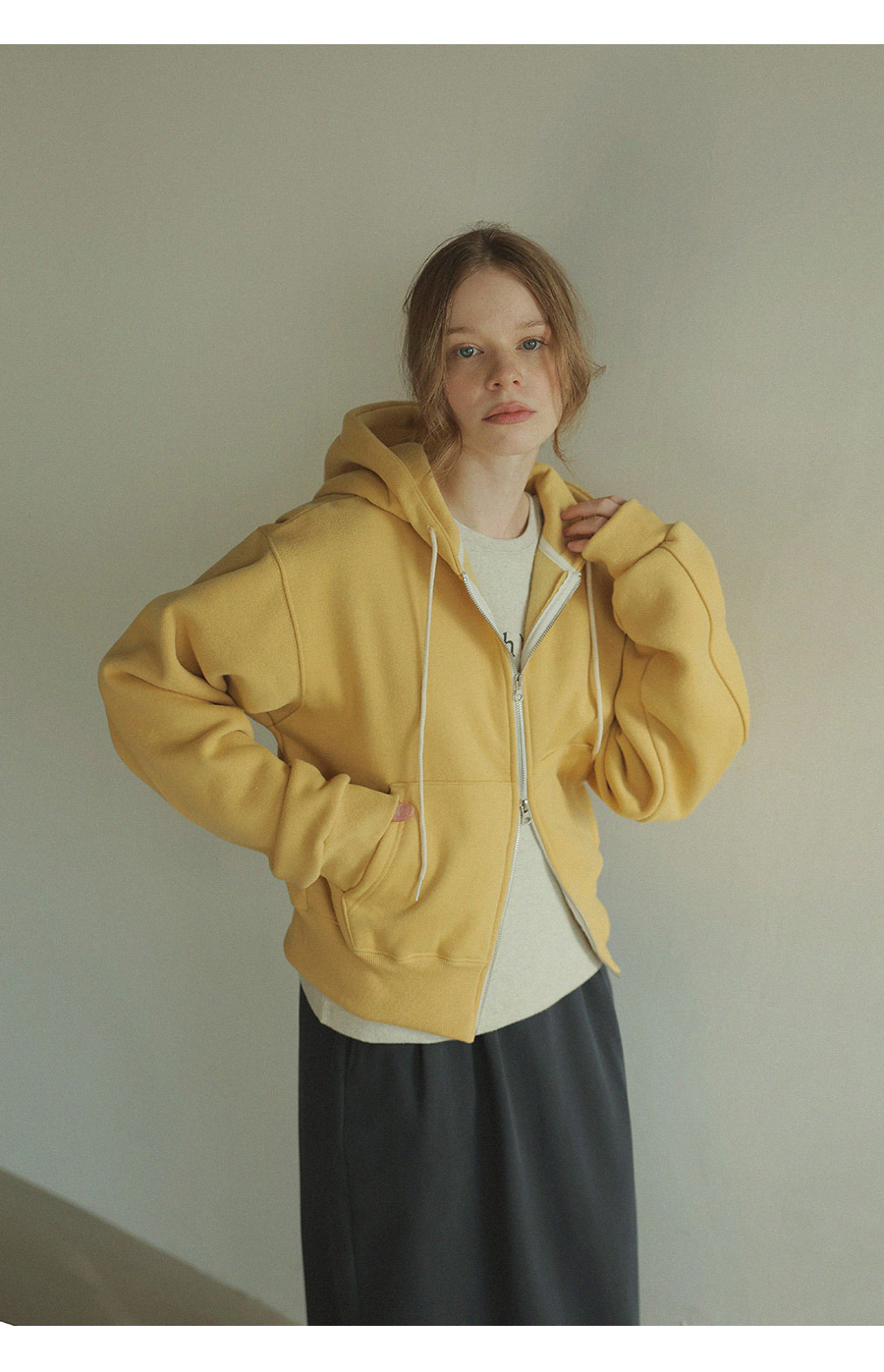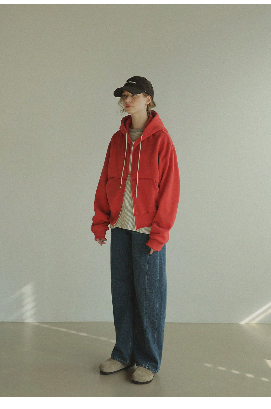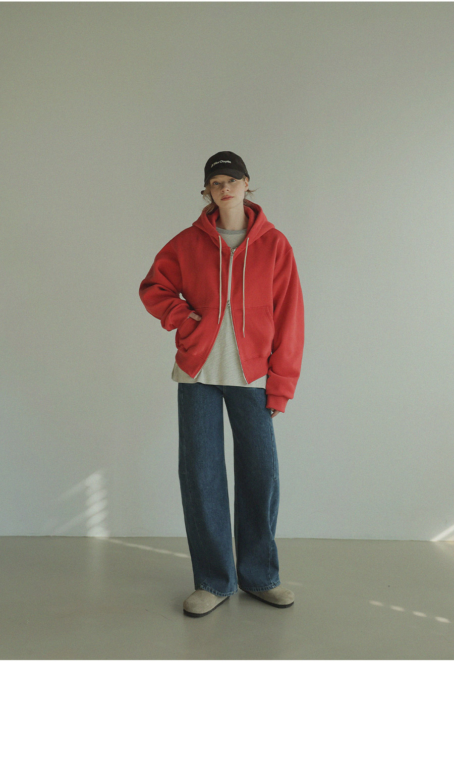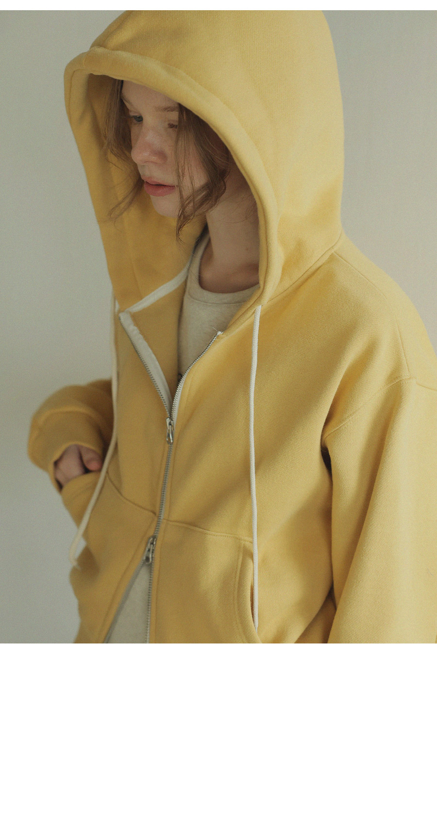 "베이직한 디자인에 포인트 컬러를 더한 데일리 후드집업"