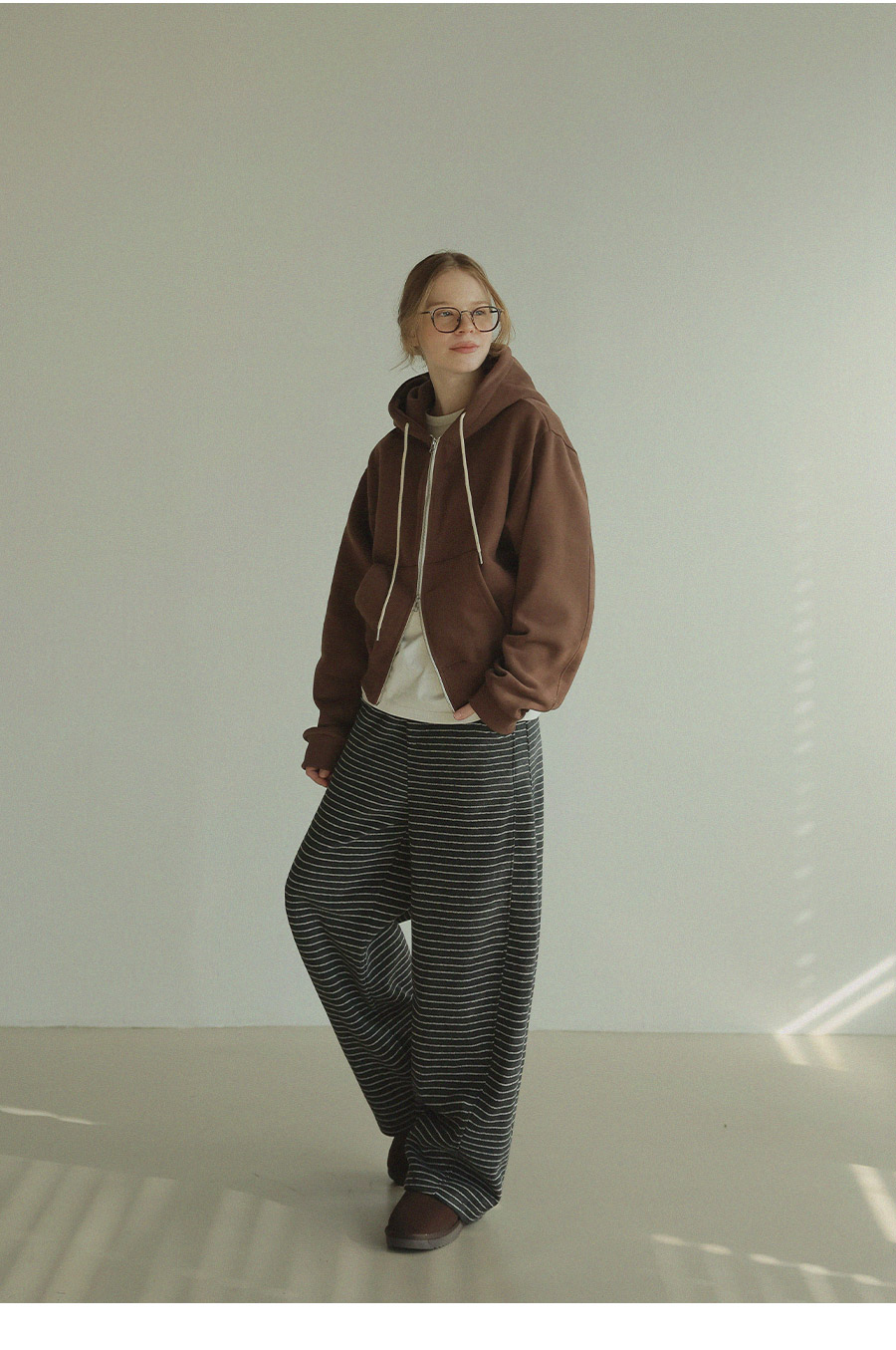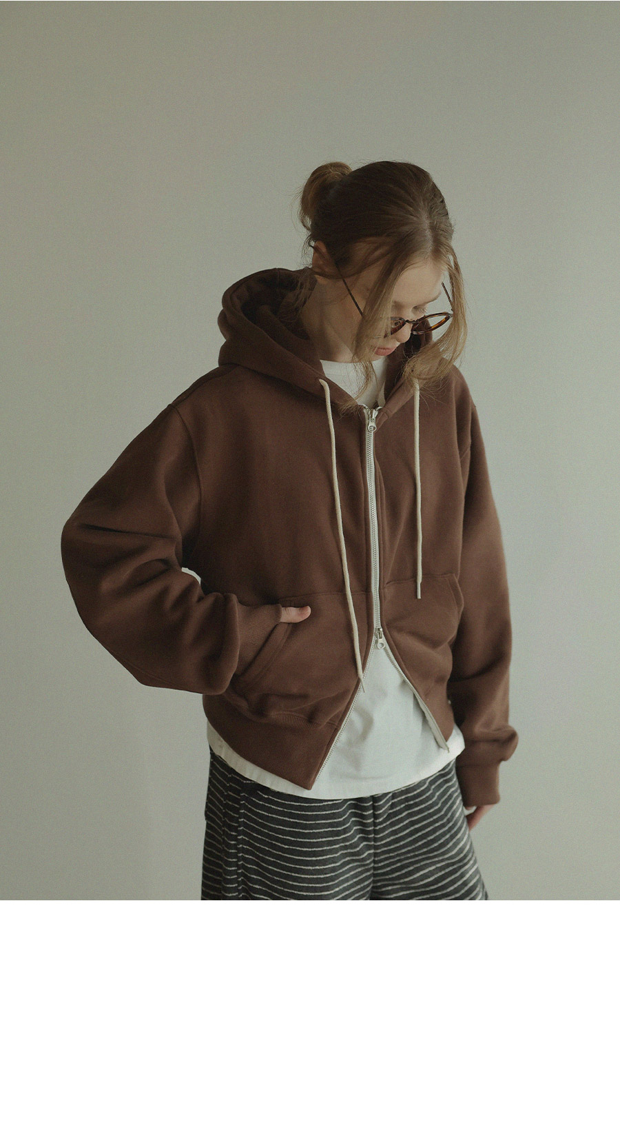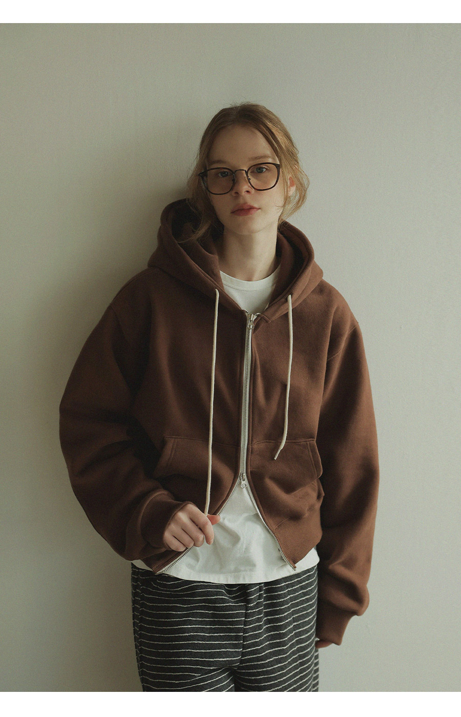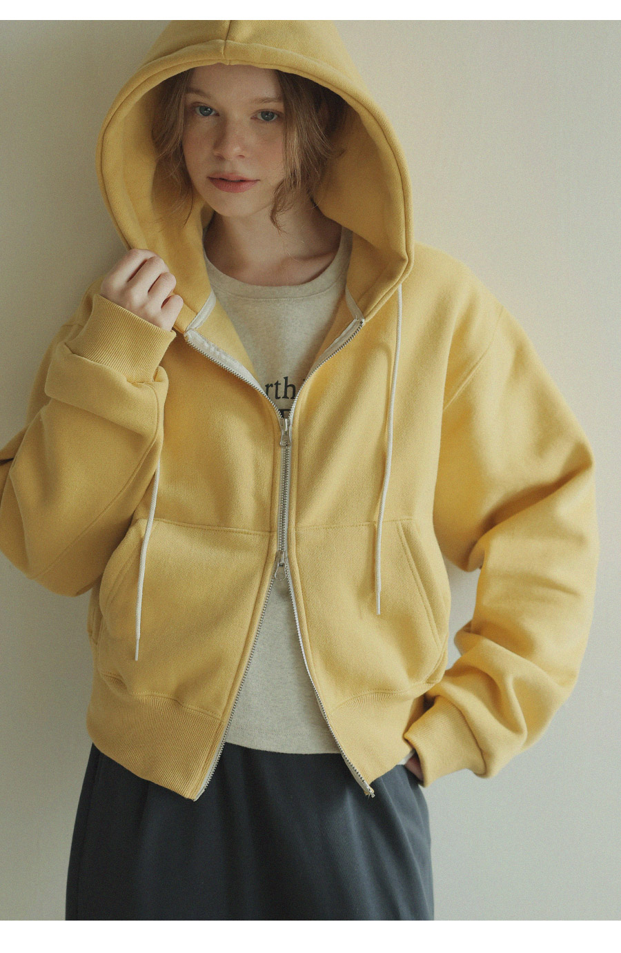 "베이직한 디자인에 포인트 컬러를 더한 데일리 후드집업"