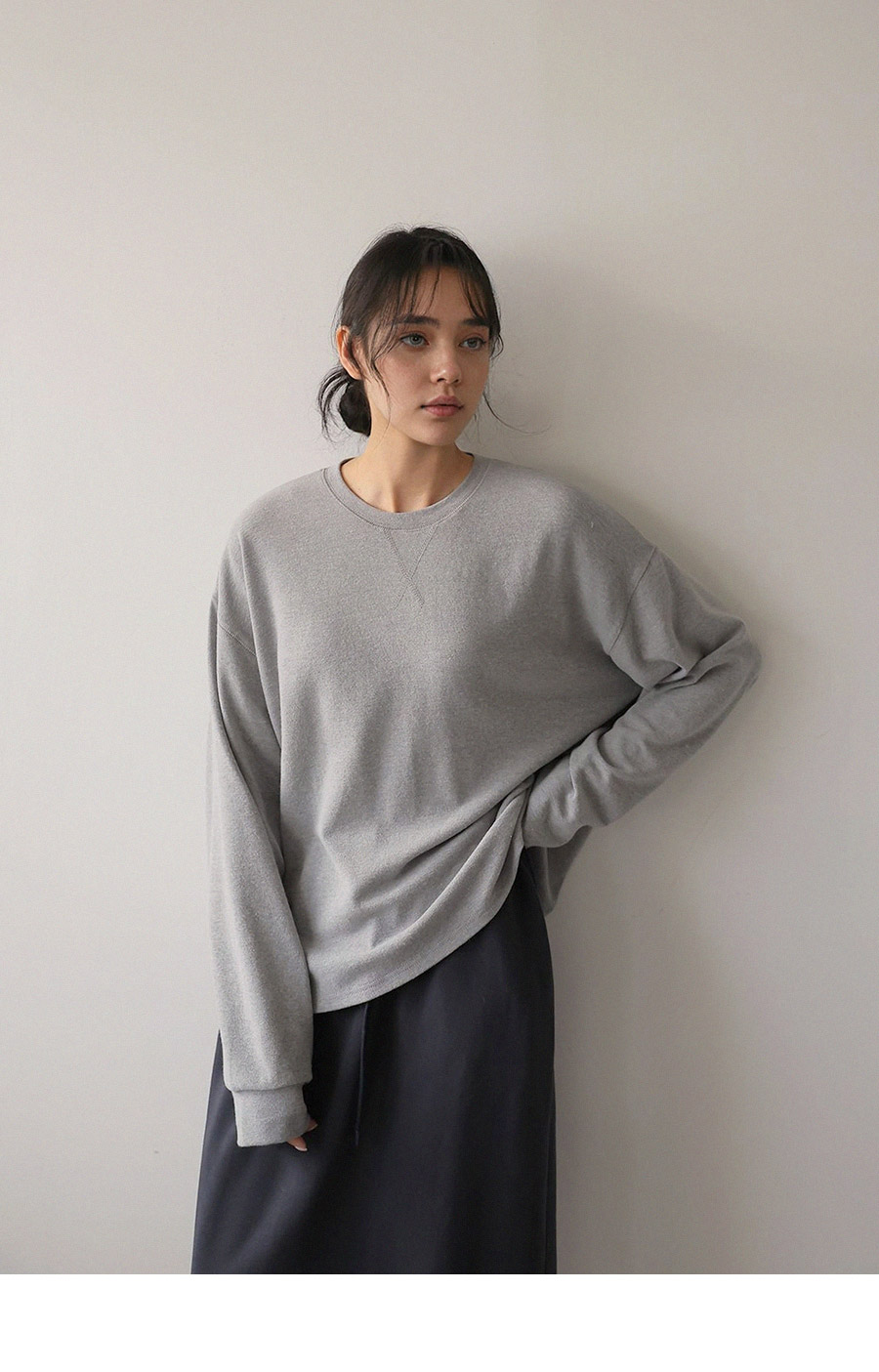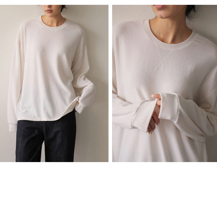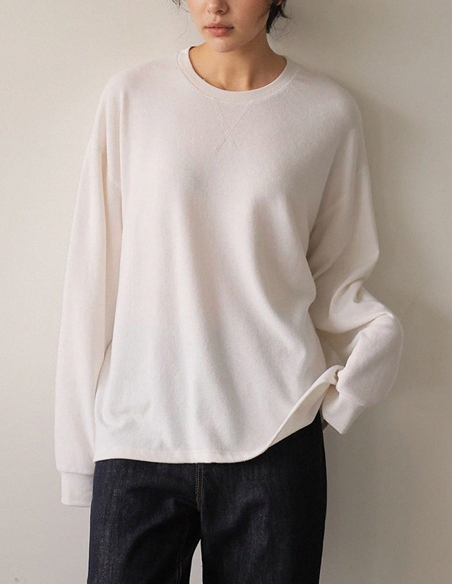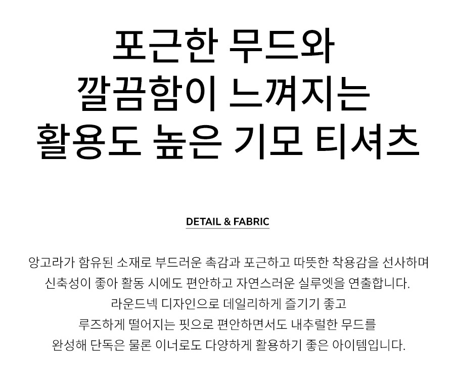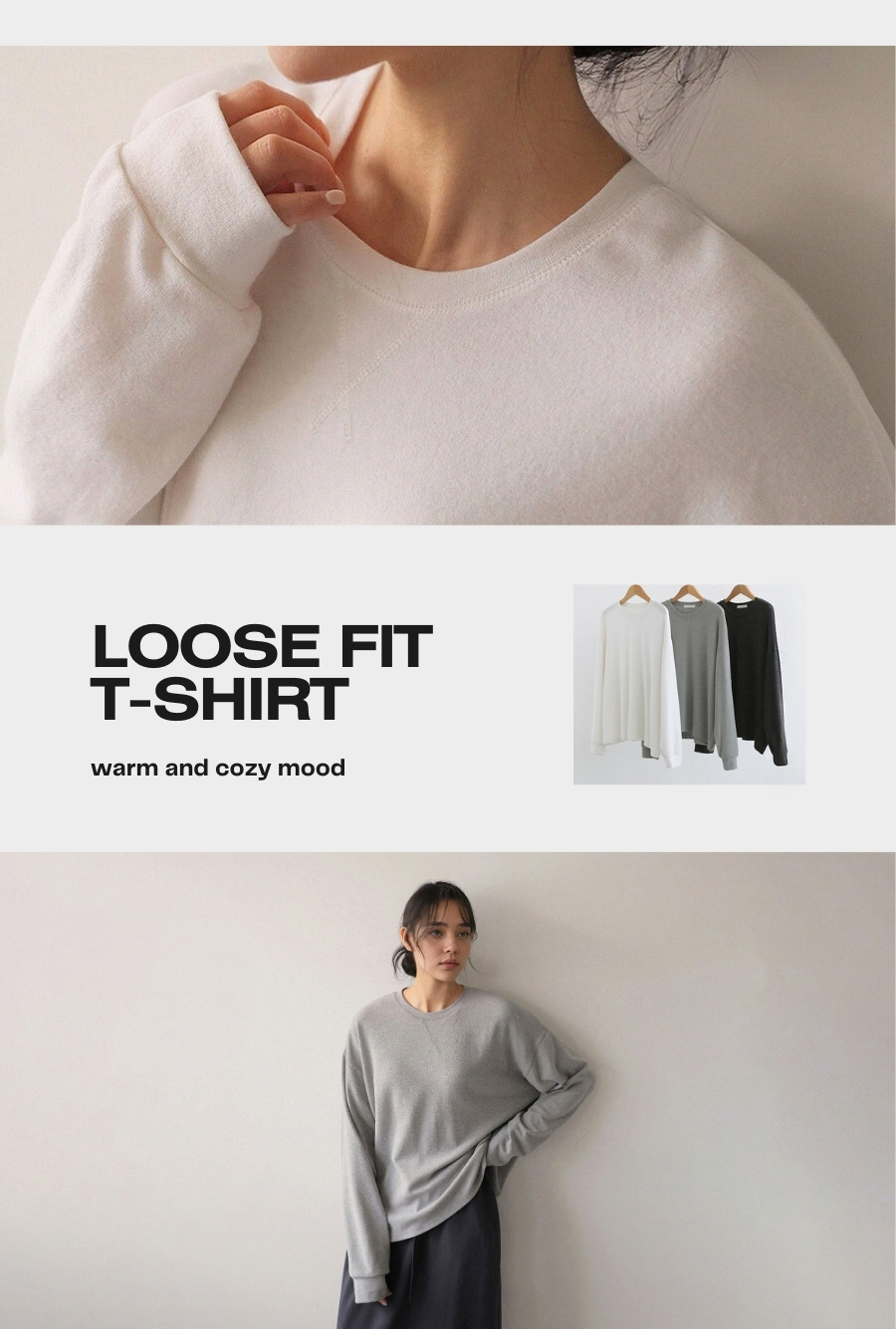 "포근한 무드와 깔끔함이 느껴지는 활용도 높은 기모 티셔츠"