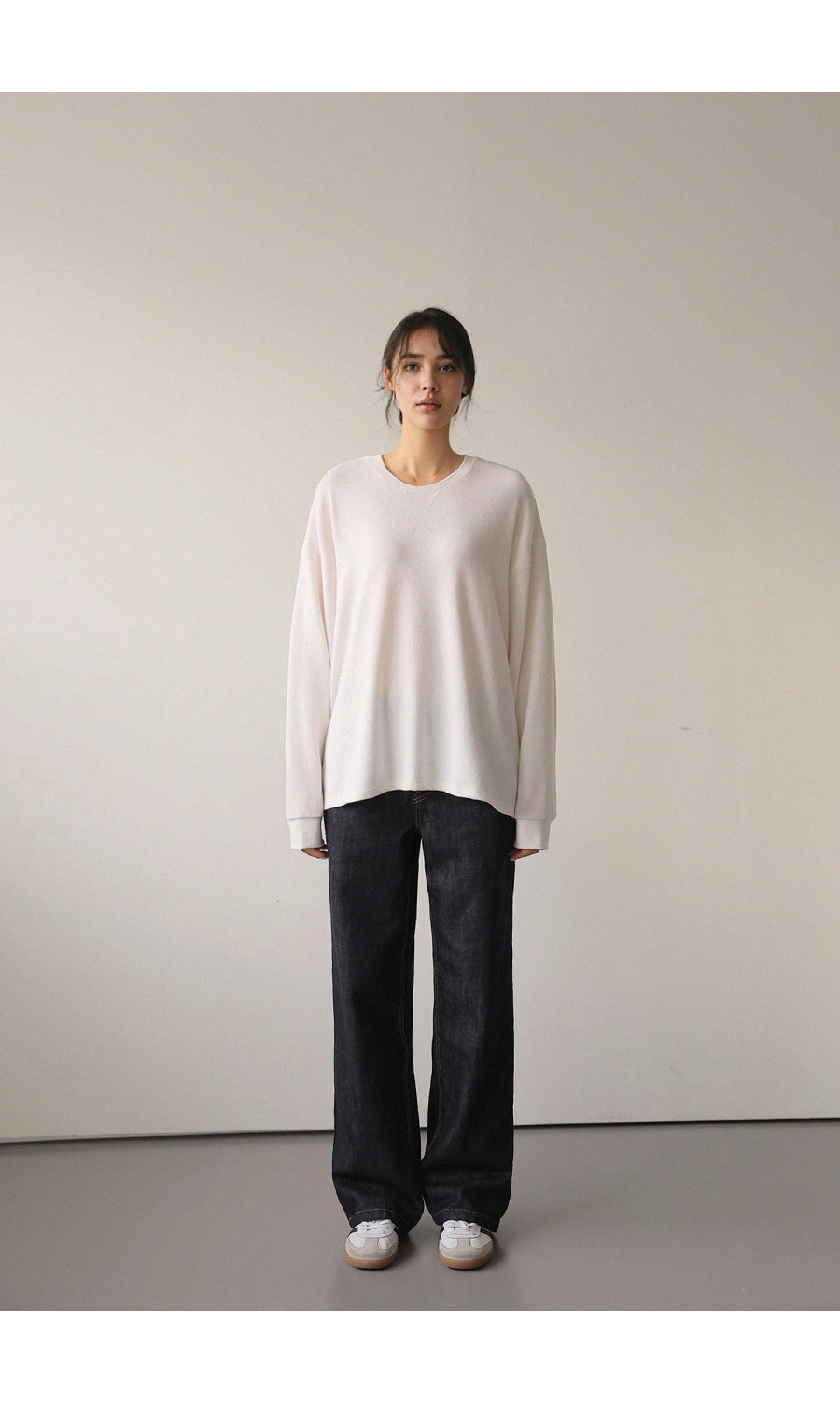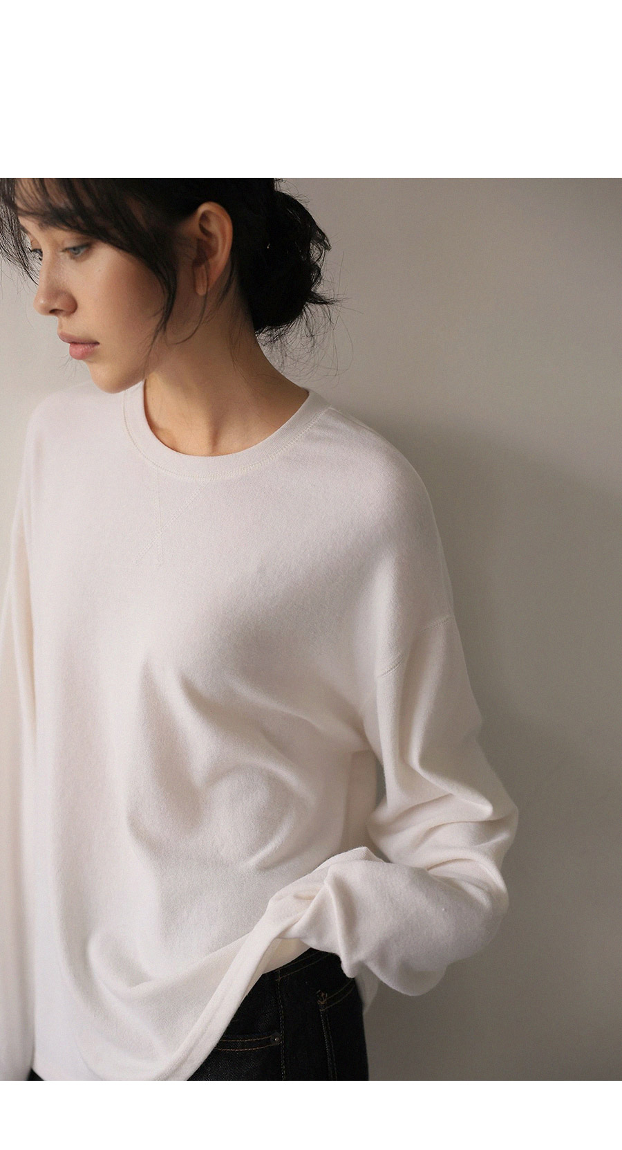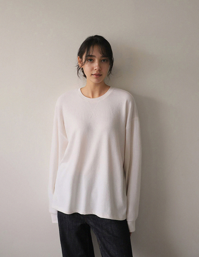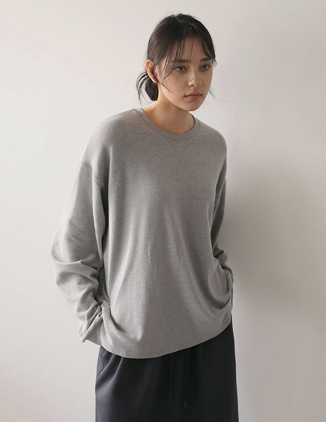 "포근한 무드와 깔끔함이 느껴지는 활용도 높은 기모 티셔츠"